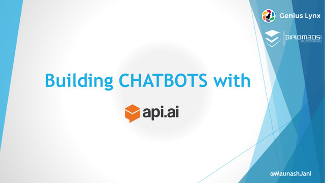 agent, you can integrate it with SDKs or use our one-click integration modules. • When your product is launched, it constantly improves with machine learning and can be updated in real-time based on user interactions. • API.AI => NLP + Machine Learning + AI + Conversation building features @MaunashJani [Source: https://api.ai]