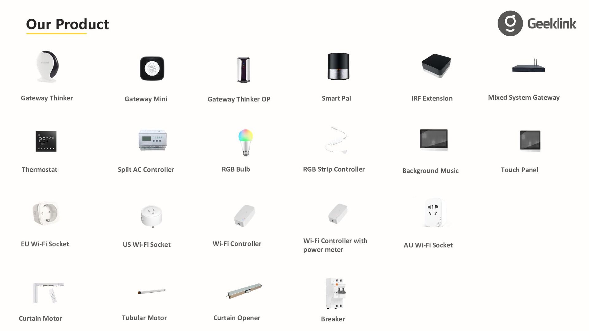Bulb Thermostat Split AC Controller Touch Panel RGB Strip Controller Background Music Curtain Opener Curtain Motor Tubular Motor IRF Extension Wi-Fi Controller EU Wi-Fi Socket US Wi-Fi Socket AU Wi-Fi Socket Wi-Fi Controller with power meter Mixed System Gateway Breaker Our Product