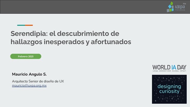 Esta presentación fue hecha en el marco del Día Mundial de la Arquitectura de Información 2021, sobre cómo usar la serindipia - el descubrimiento o un hallazgo afortunado e inesperado que se produce de manera accidental, casual, o cuando se está buscando una cosa distinta- de manera intencional para incentivar la curiosidad de los usuarios y mejorar su experiencia de usuario.