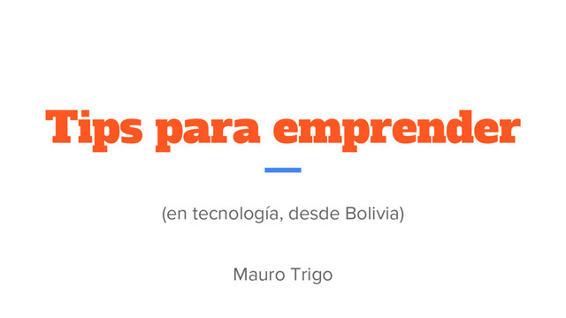Tips para emprender (en tecnología, desde Bolivia) Mauro Trigo