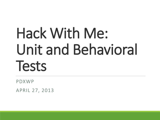 Clean up global scope ◦ Clear $_GET, $_POST, flush object cache ◦ Beware global scope – avoid constants (see multisite, ajax) ◦ Start a DB transaction tearDown ◦ Rollback the DB transaction Correlates @ticket annotation to Trac tickets and skips tests for known issues ◦ Works for Core, Unit Tests, and Plugin tickets
