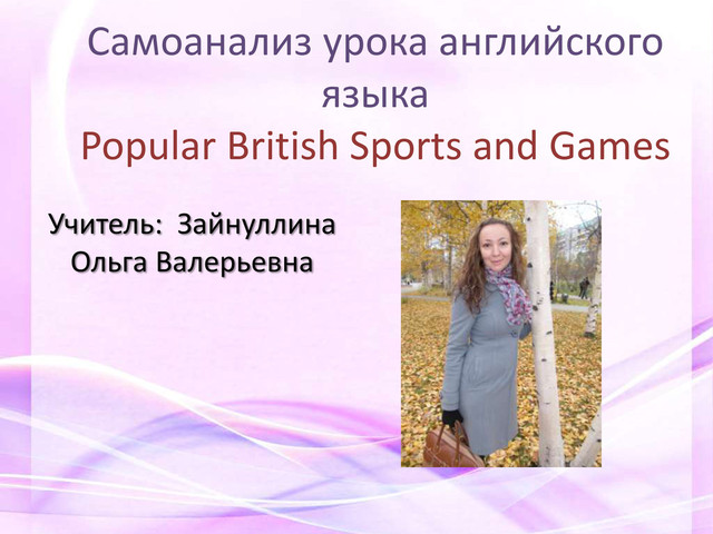 современным и привлекательным для учащихся, я применяла различные виды деятельности, задания и упражнения. Неотъемлемой частью урока является презентация, выполненная с помощью программы Power Point, тест он-лайн, видео- и аудио фрагменты, а также разработанные мной электронные наглядные пособия. Все это дало достаточно возможностей для формирования информационной компетенции, позволило рационально использовать время на уроке, сделать процесс обучения более логичным, интересным и убедительным. • Я считаю, что место и роль урока были определены правильно, урок связан с предыдущей темой «Здоровье» и последующими уроками, посвященными спорту. Все этапы урока соблюдены. • В начале урока я пыталась создать атмосферу англоязычного общения, чтобы учащиеся могли сосредоточиться на теме урока и активировать навыки общения. Урок носил соревновательный характер, что вызывает большой интерес среди детей этого возраста (ребятам было сказано, что за определенные задания они смогут получить определенное количество баллов).