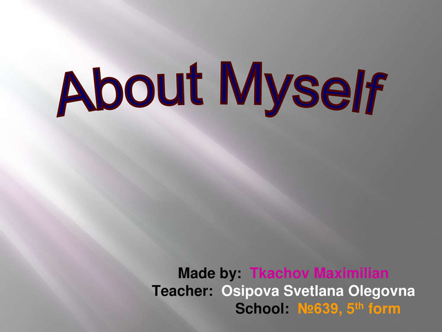 born in Riga, Latvia. Now I live in Moscow. I live in a ordinary family.- mother, father and younger brother. I am eleven years old and I am a pupil at school № 639. (six hundred thirty nine). I have twenty friends.