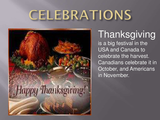 to celebrate the harvest. Canadians celebrate it in October, and Americans in November.