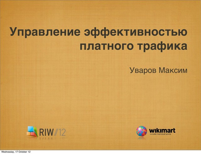 Презентация: Управление эффективностью платного трафика, Максим Уваров, Riw, 2012