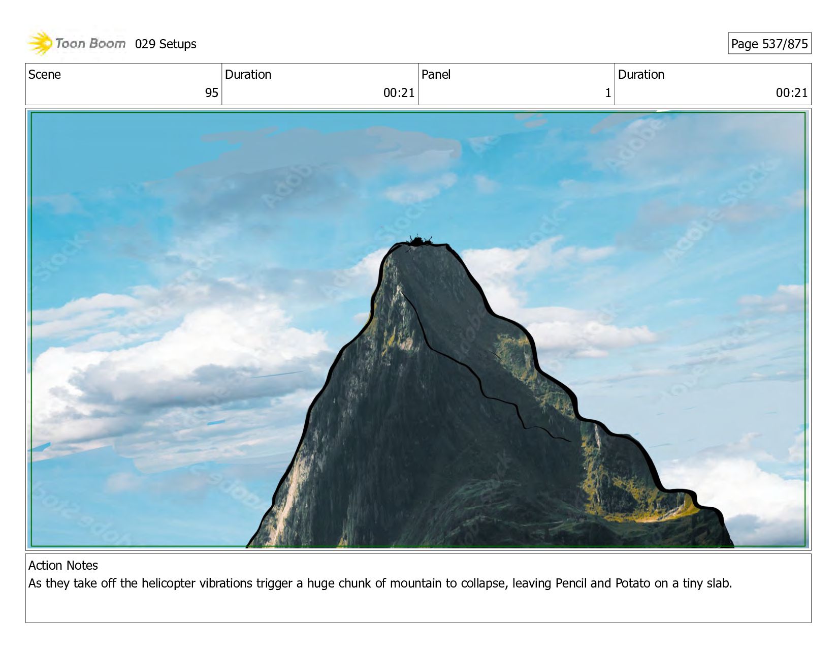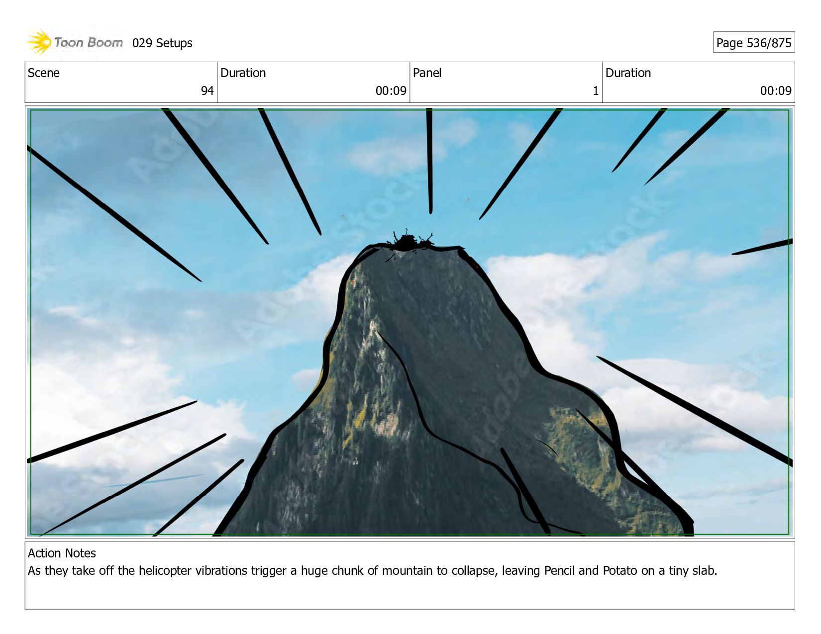 As they take off the helicopter vibrations trigger a huge chunk of mountain to collapse, leaving Pencil and Potato on a tiny slab. 029 Setups Page 537/875