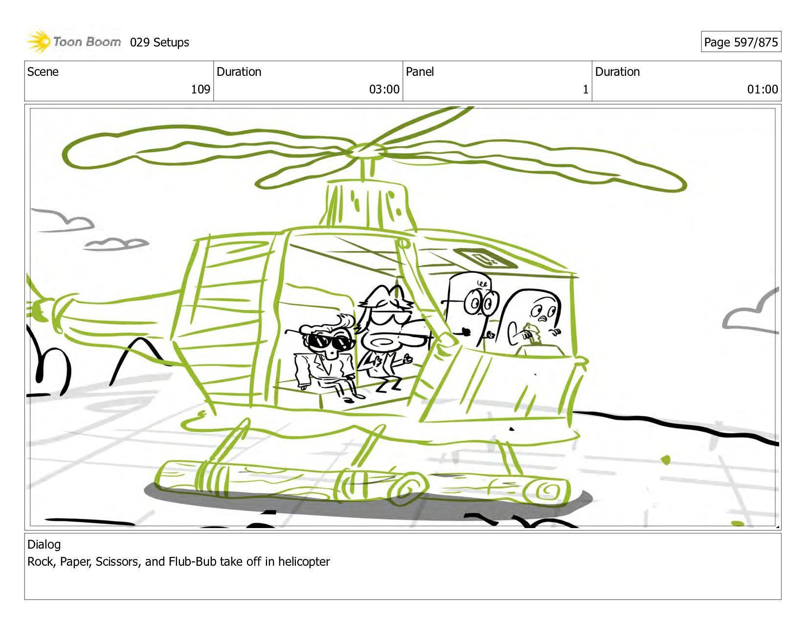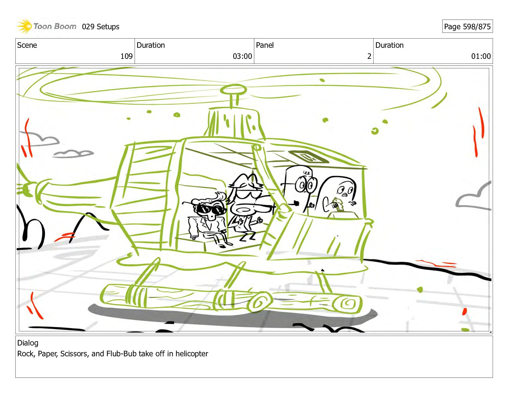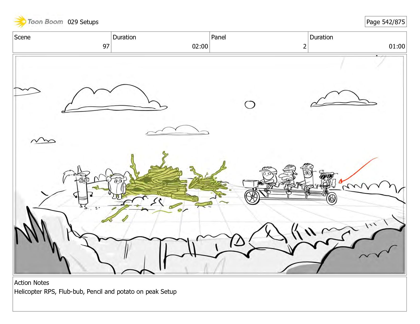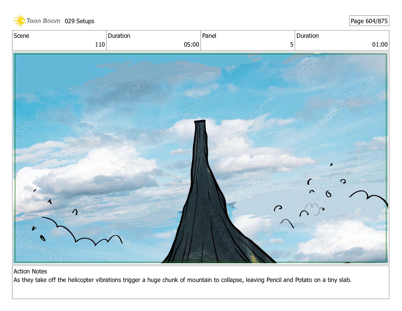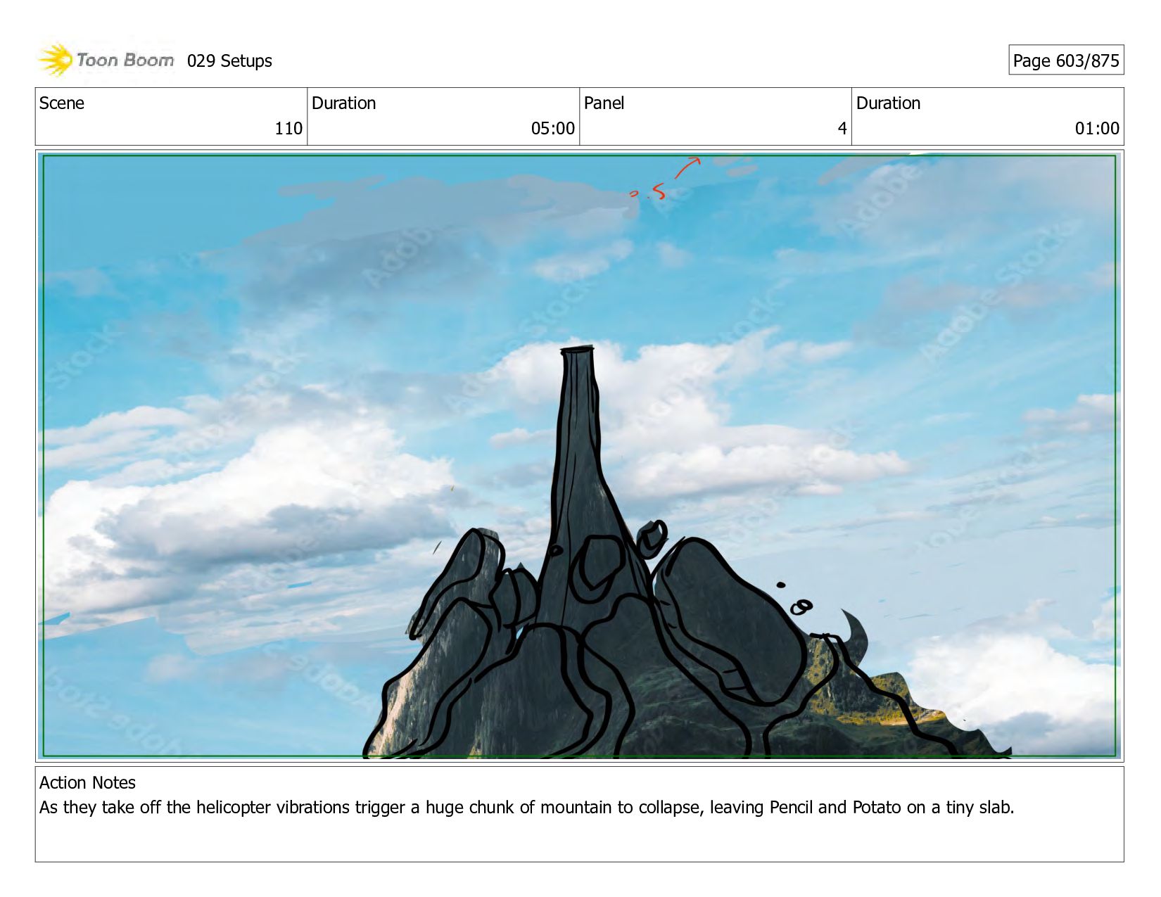 As they take off the helicopter vibrations trigger a huge chunk of mountain to collapse, leaving Pencil and Potato on a tiny slab. 029 Setups Page 600/875