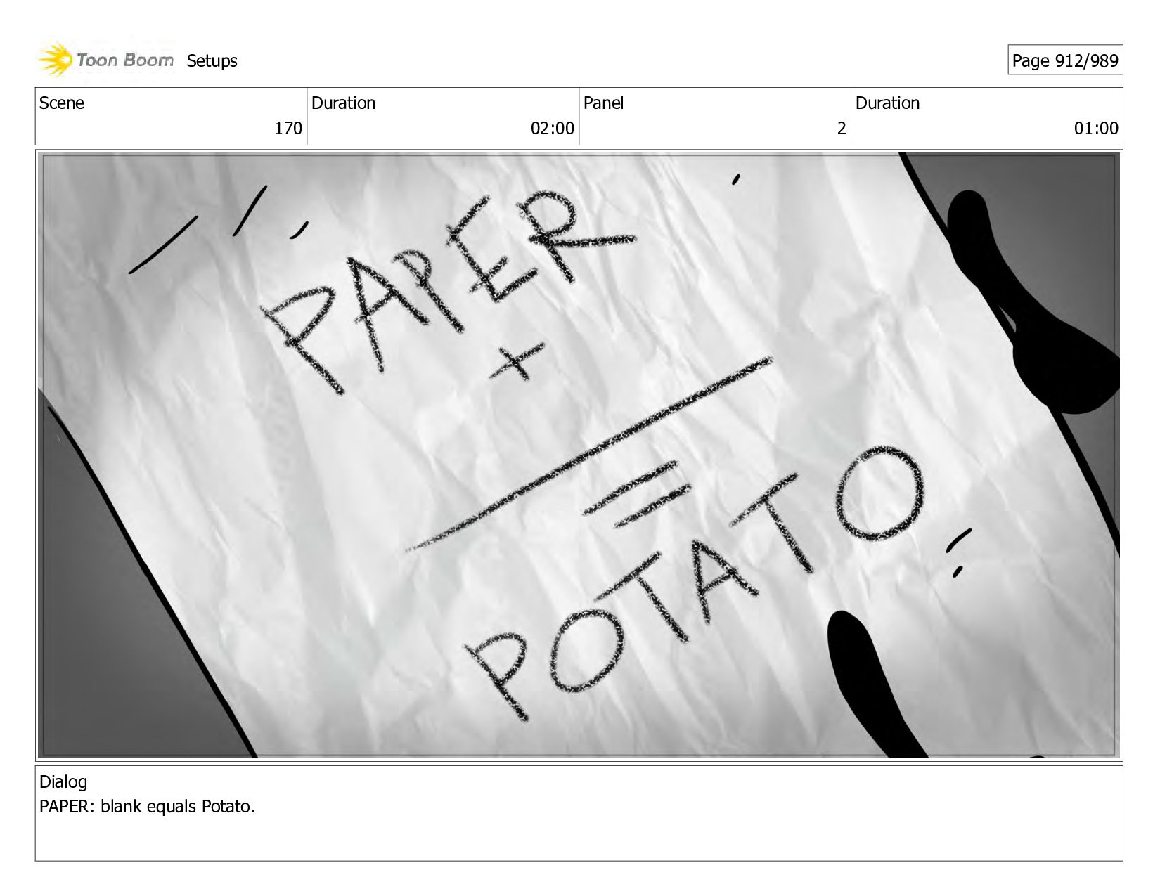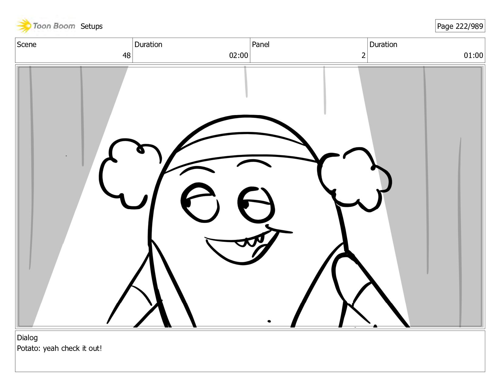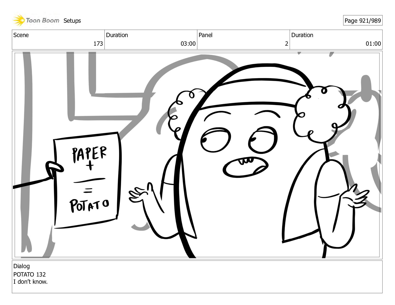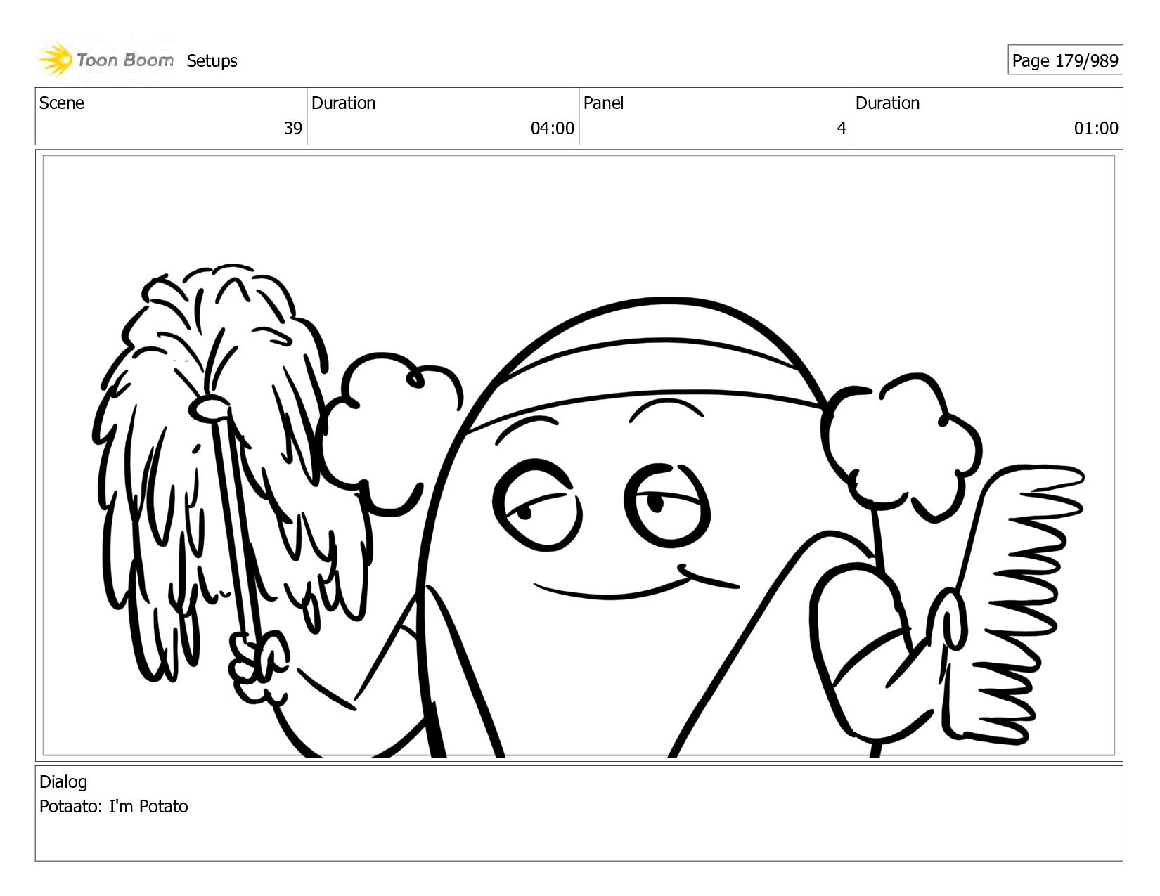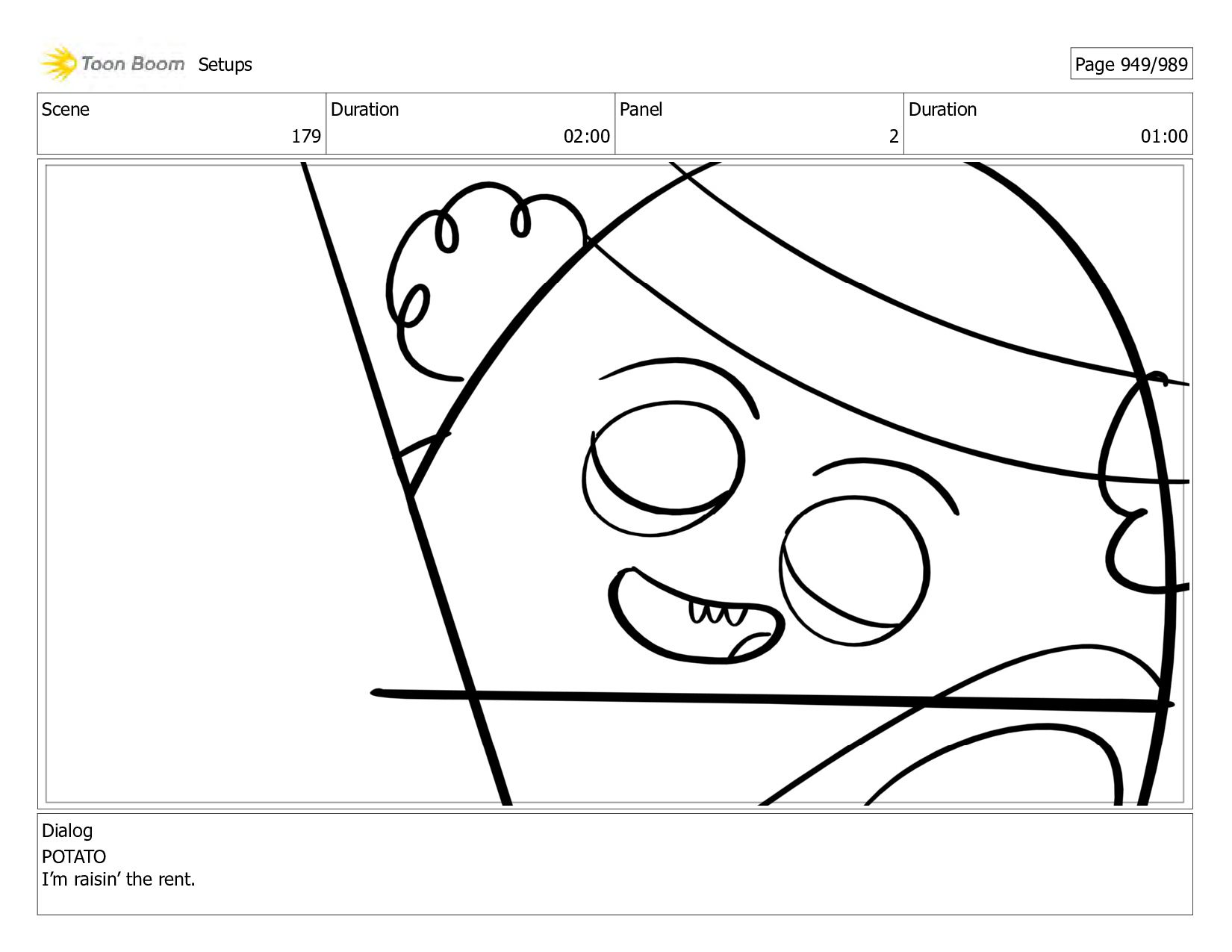 Scene 179 Duration 02:00 Panel 2 Duration 01:00 Dialog POTATO