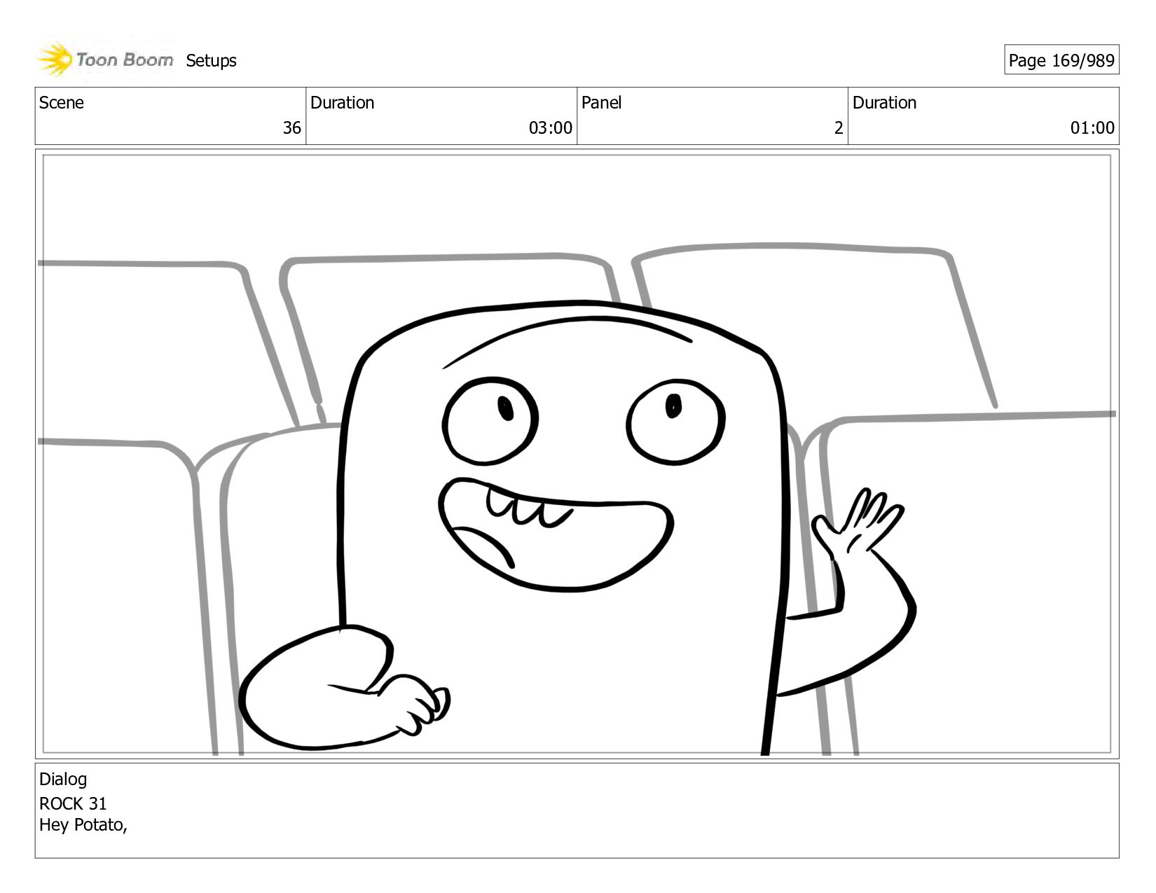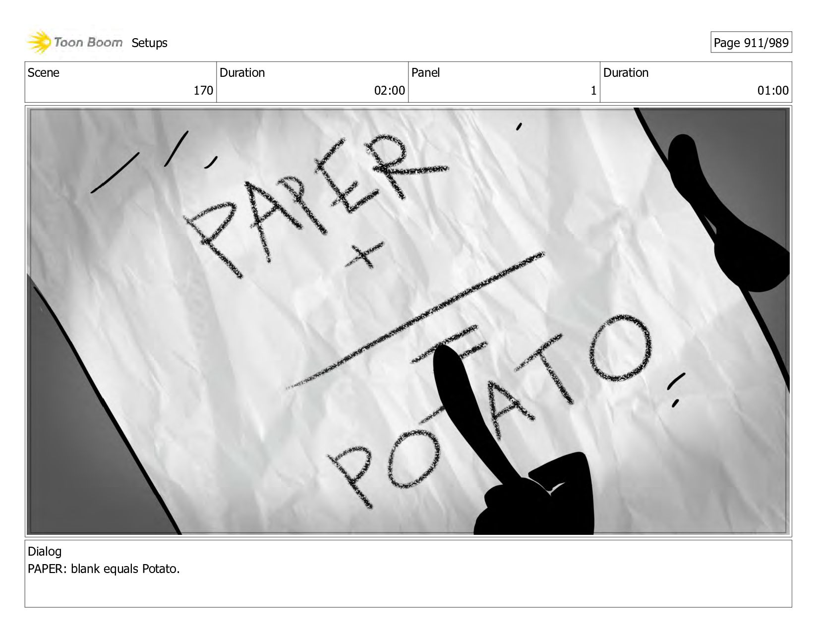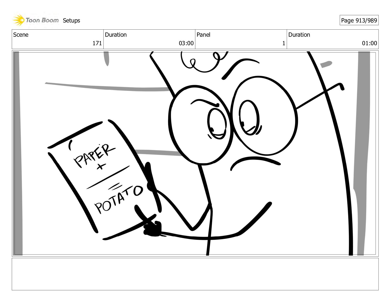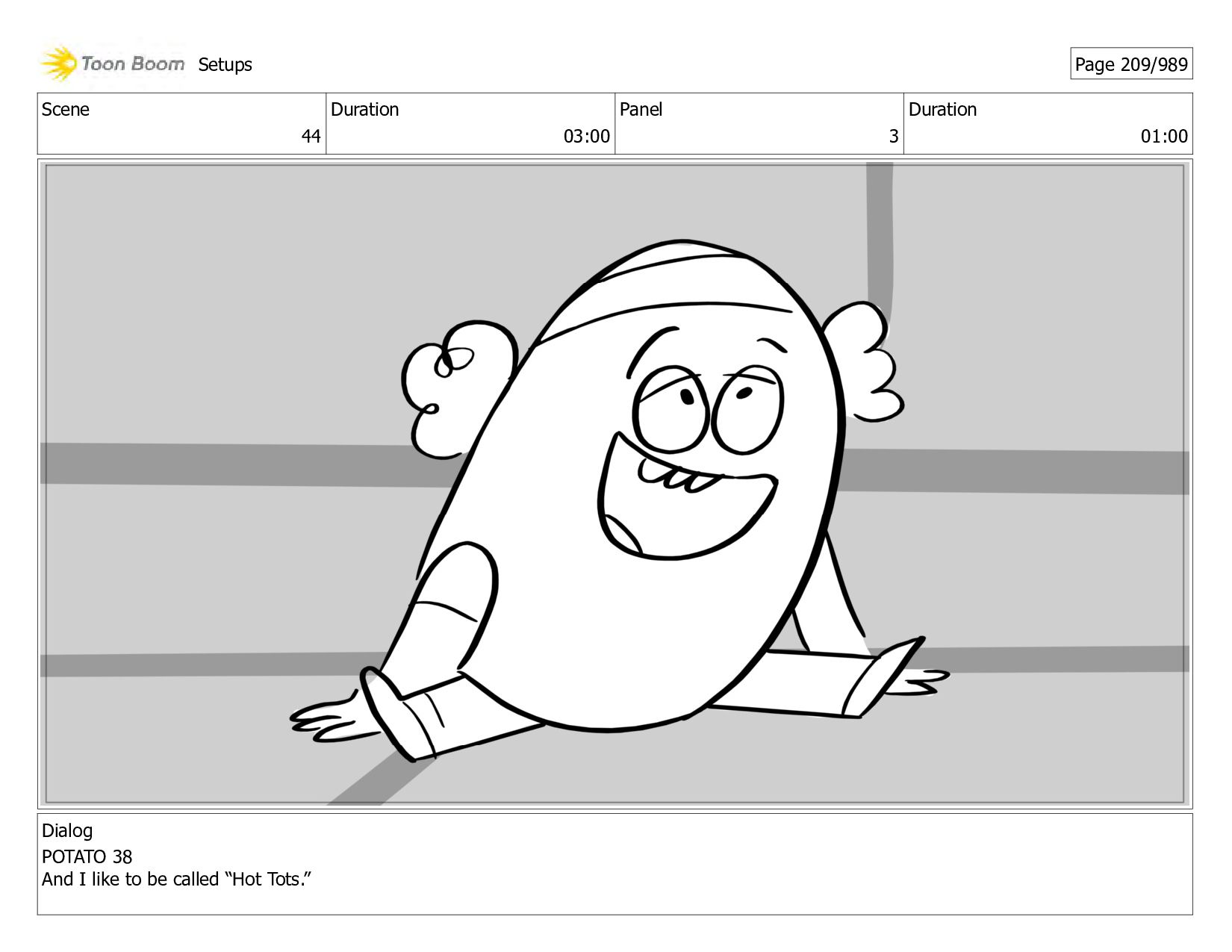 Scene 179 Duration 02:00 Panel 2 Duration 01:00 Dialog POTATO