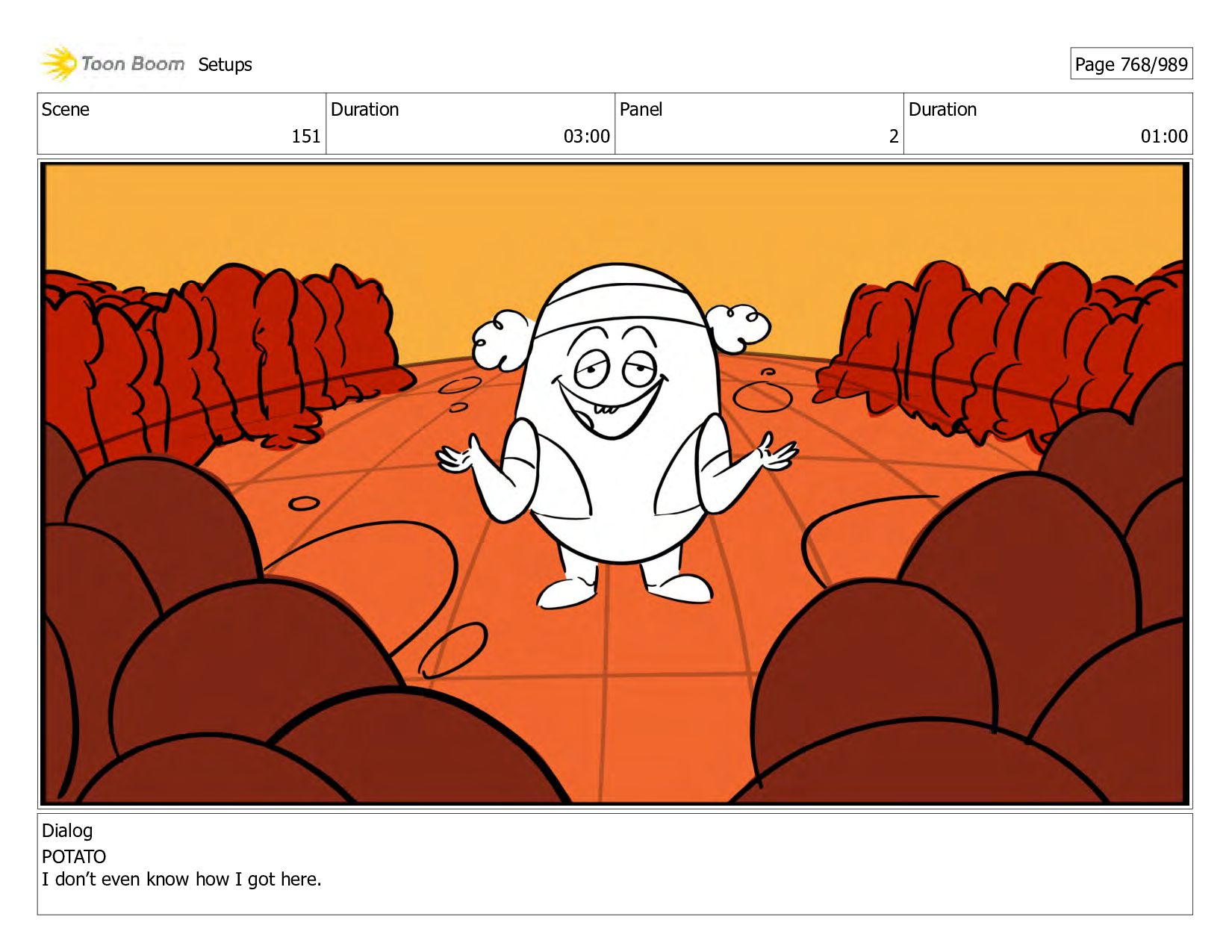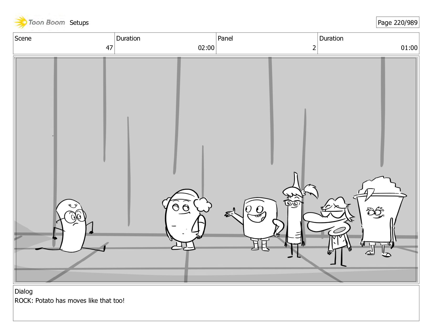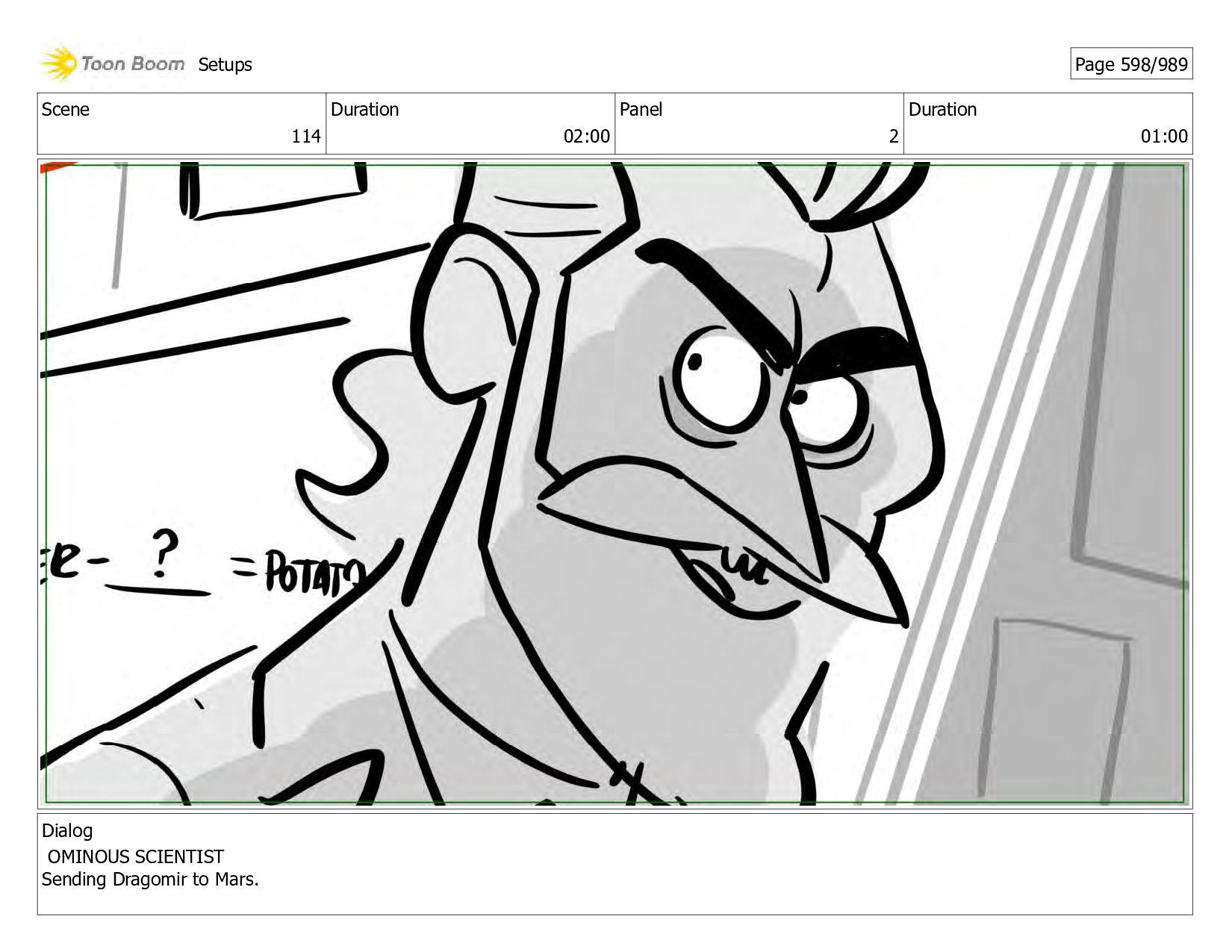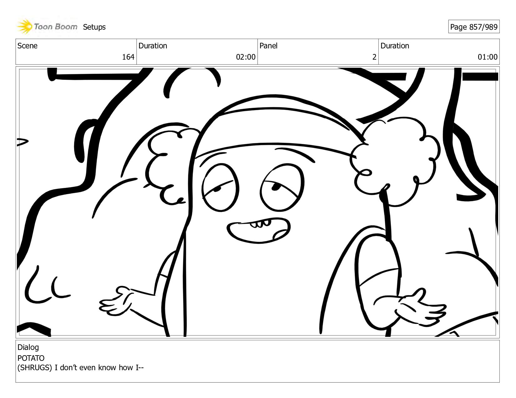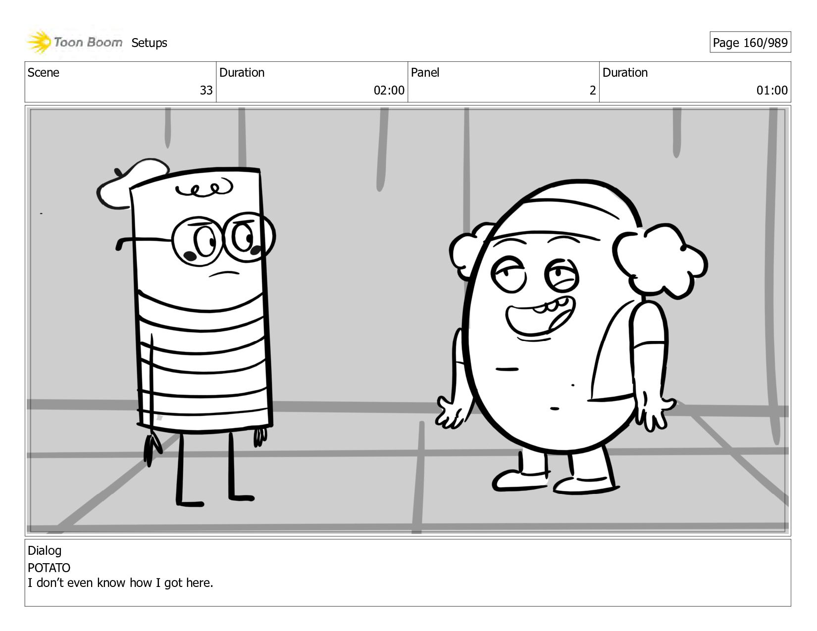 Scene 179 Duration 02:00 Panel 2 Duration 01:00 Dialog POTATO