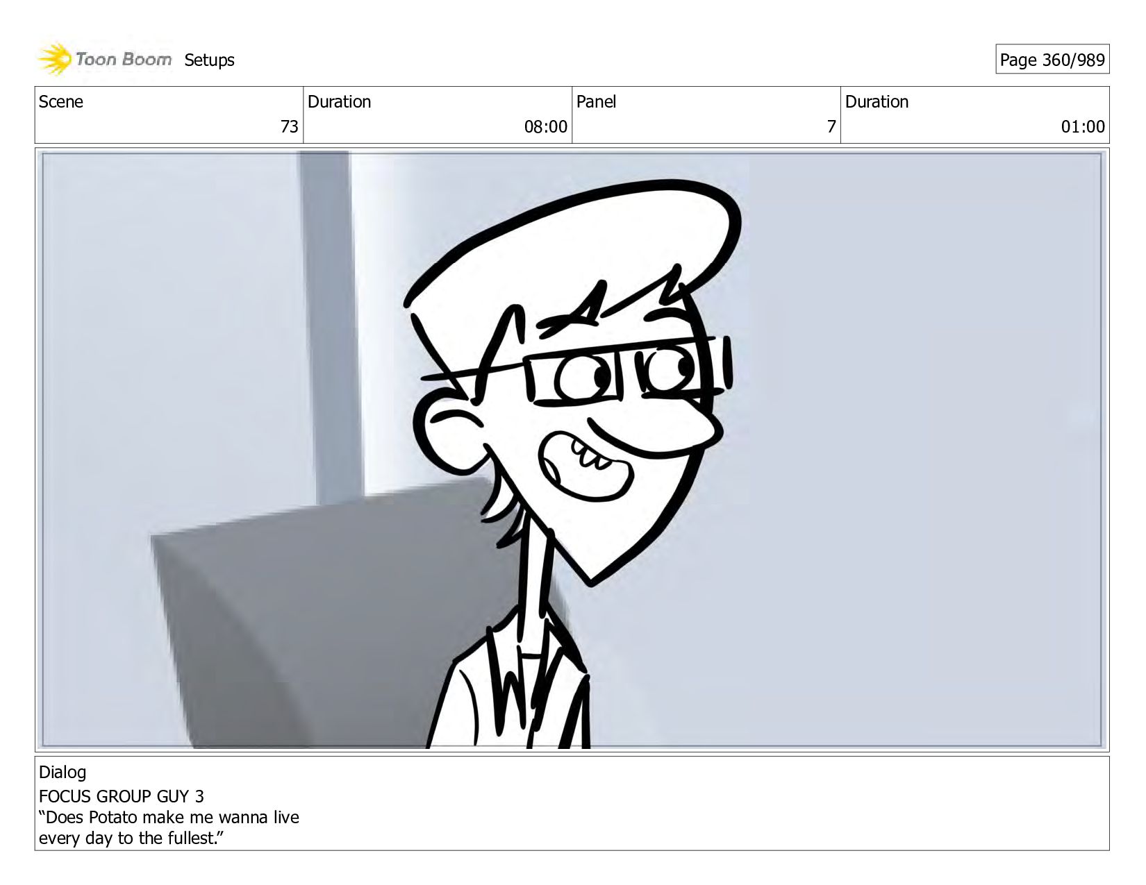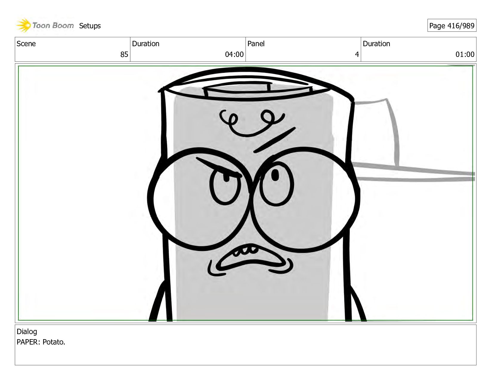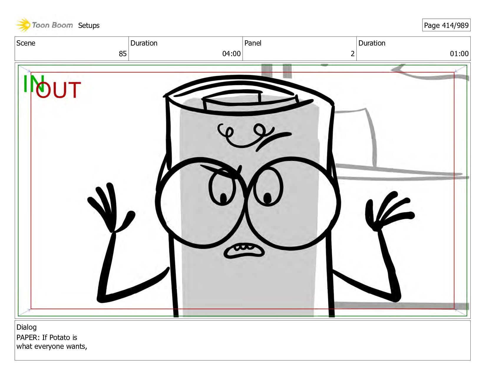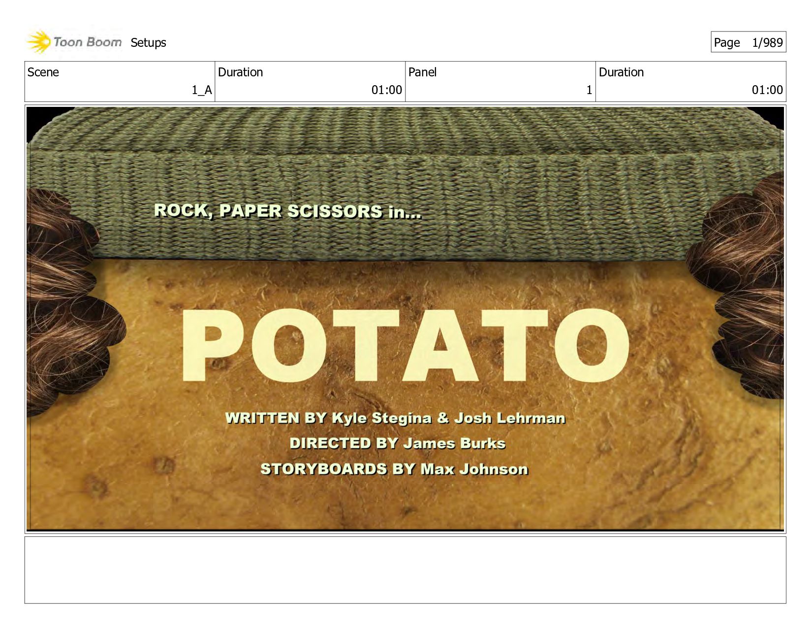Scene 179 Duration 02:00 Panel 2 Duration 01:00 Dialog POTATO