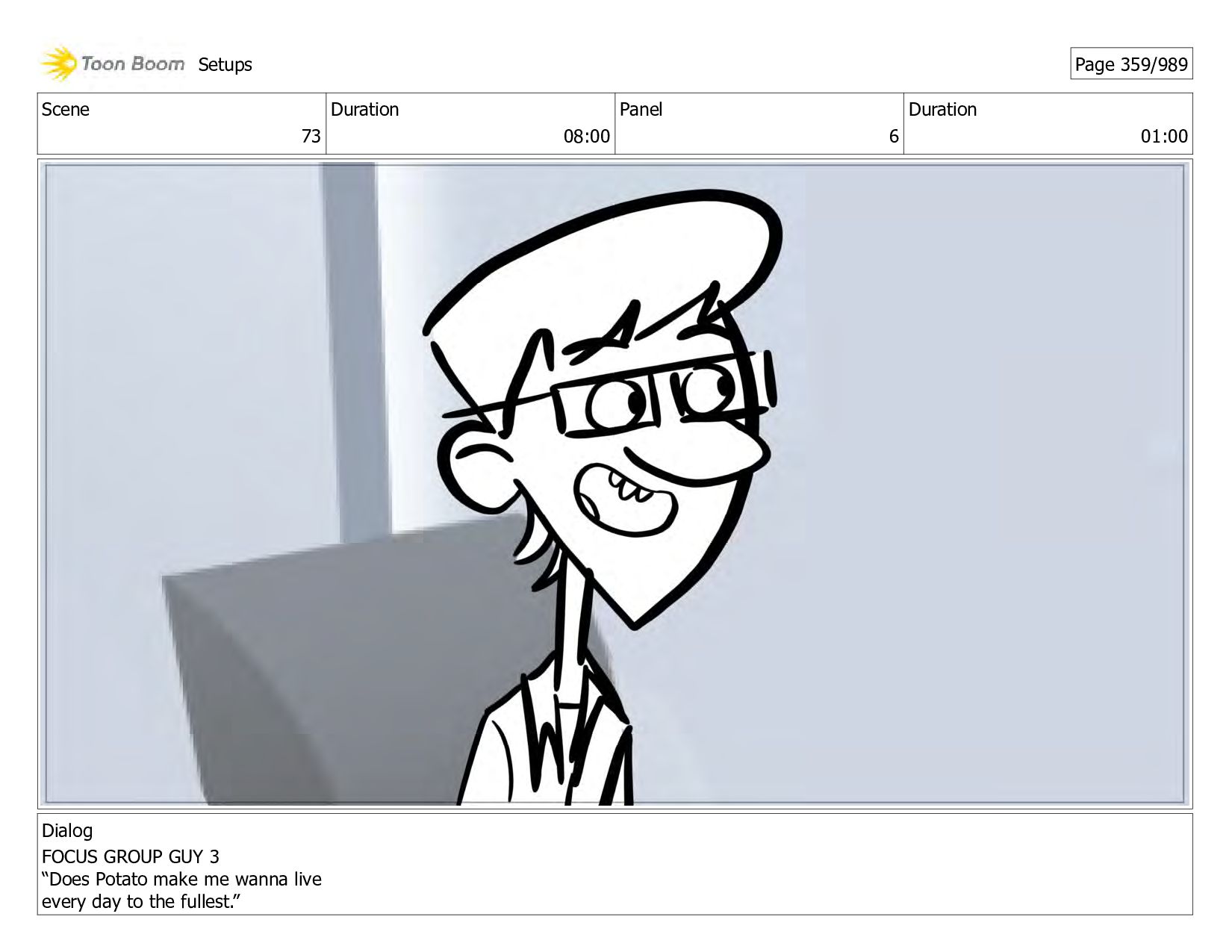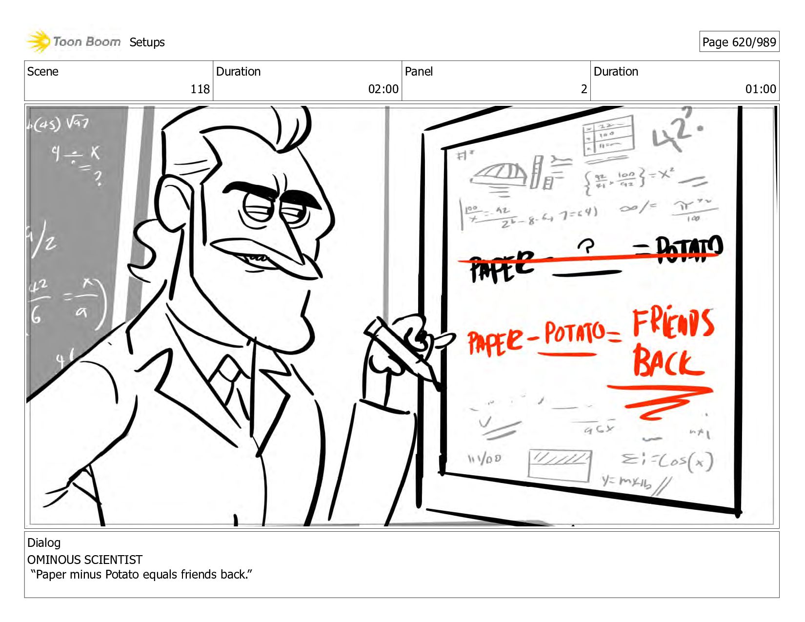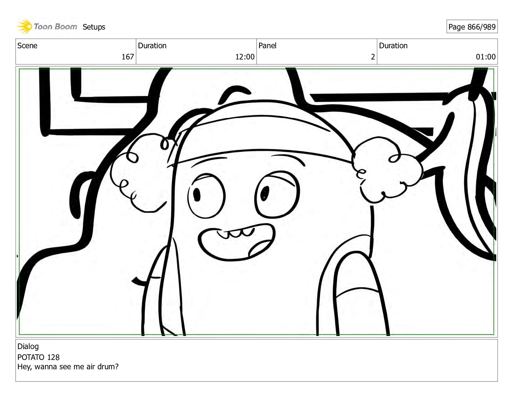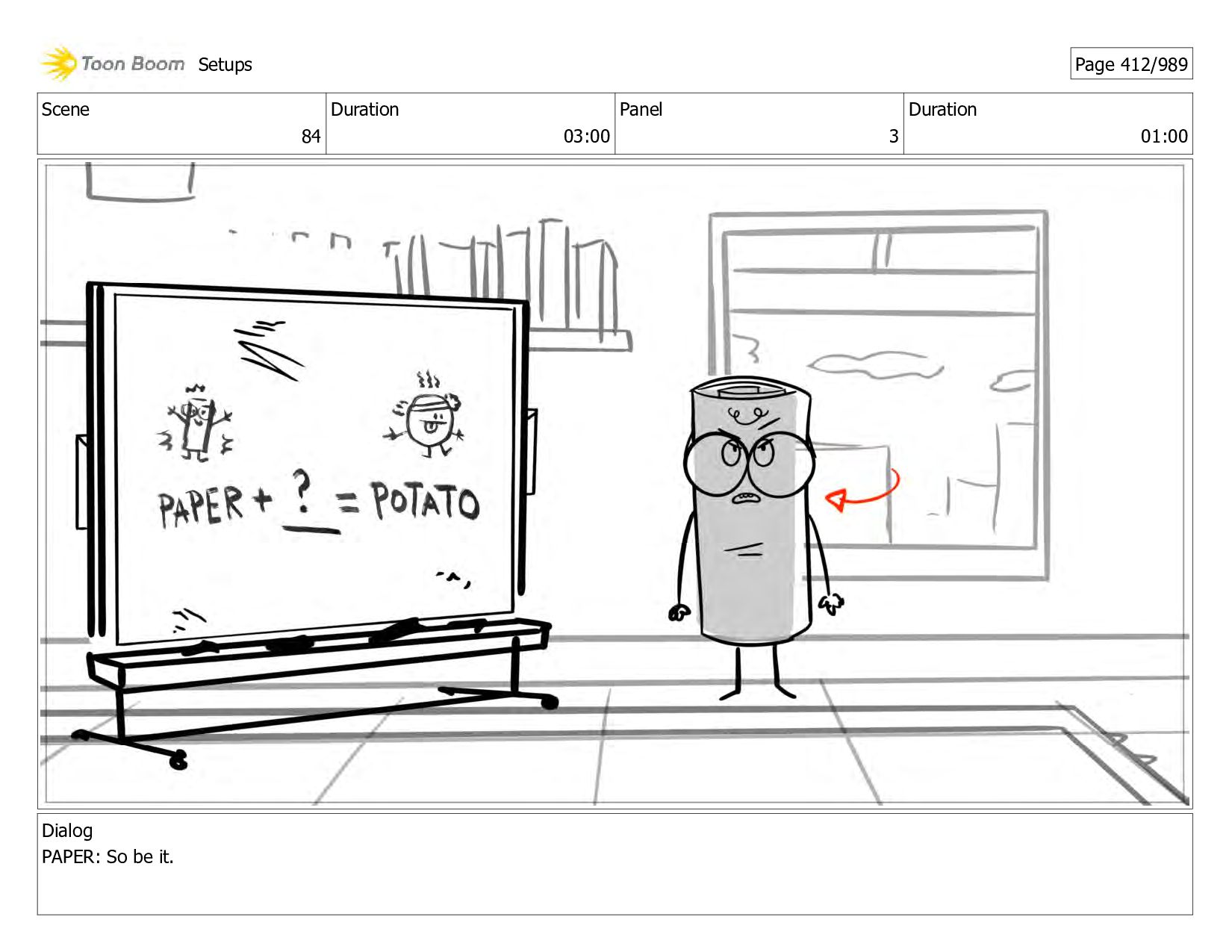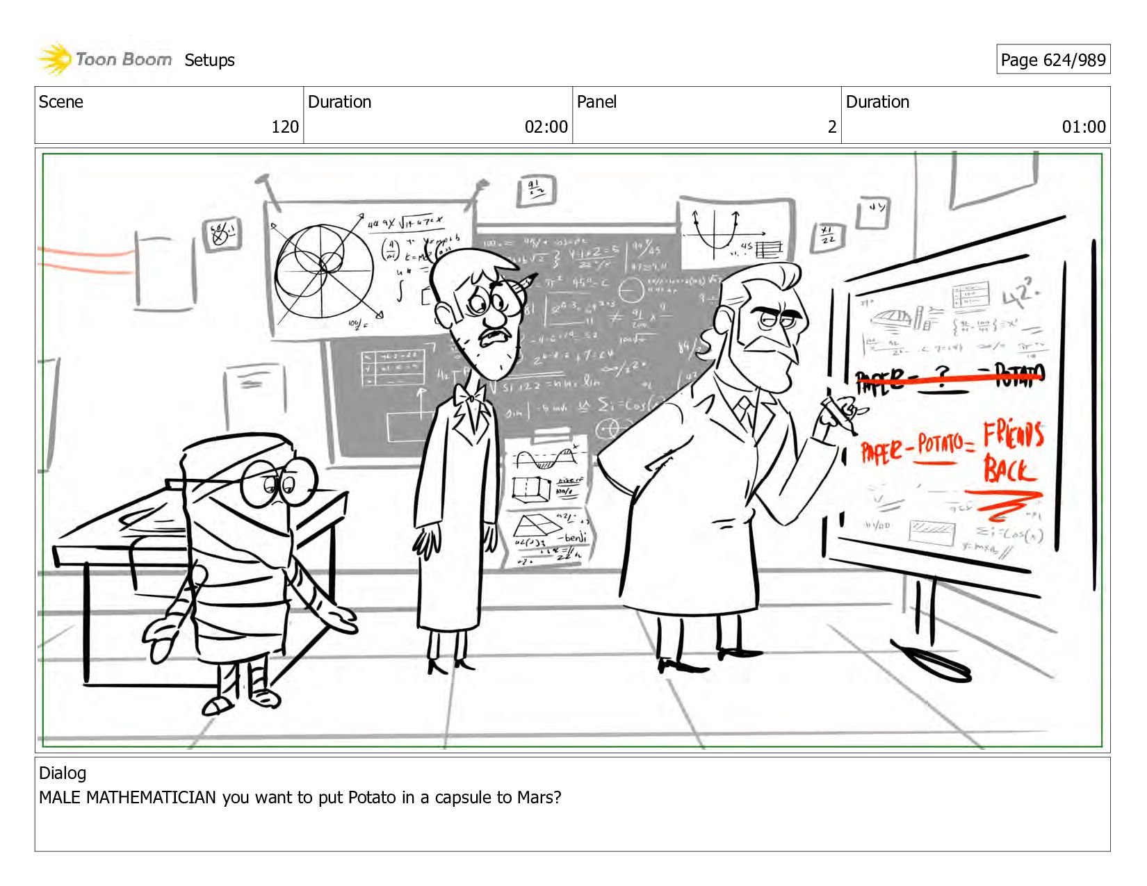 Scene 179 Duration 02:00 Panel 2 Duration 01:00 Dialog POTATO