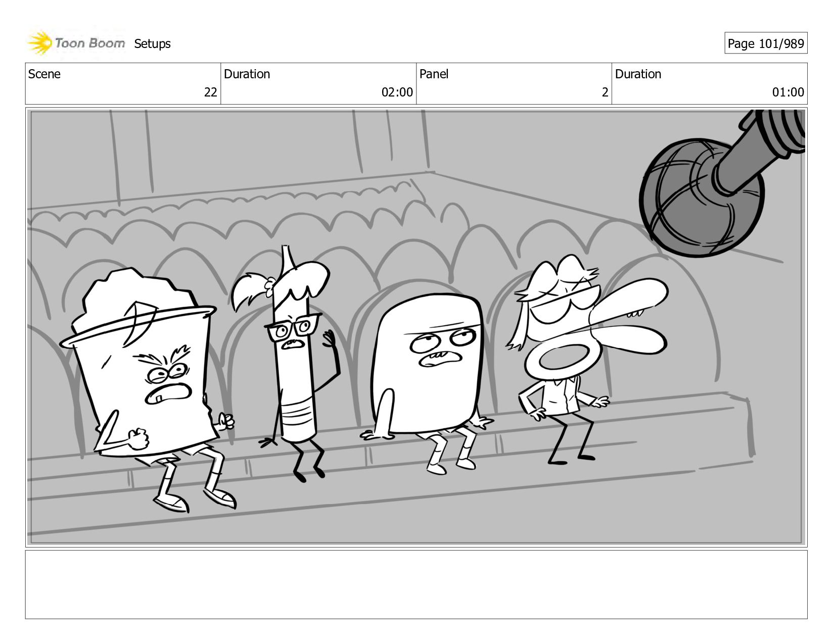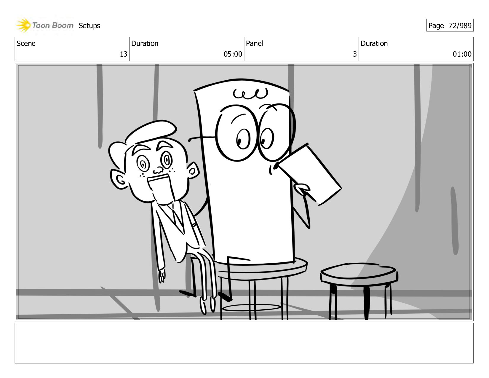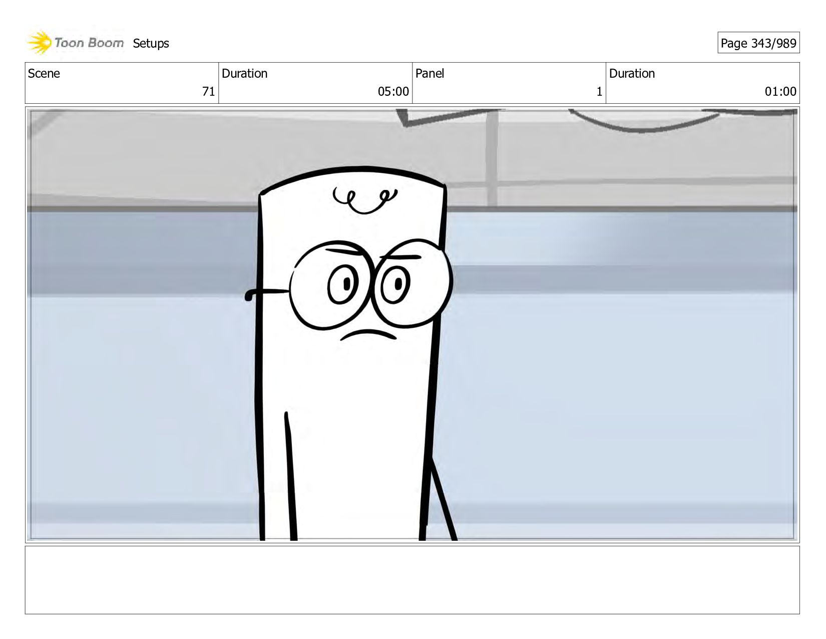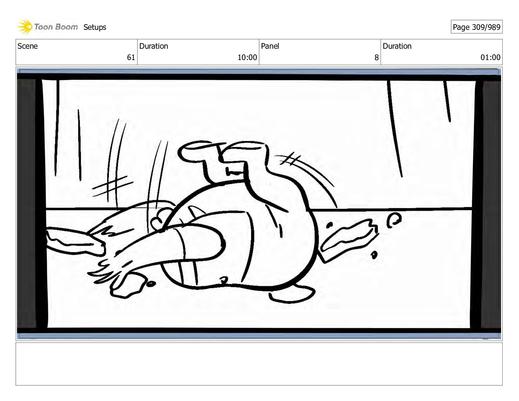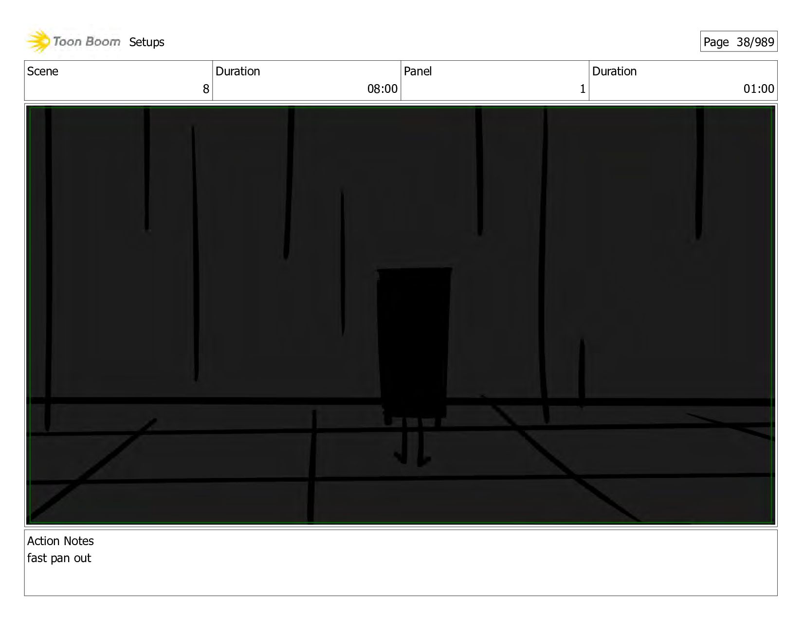 Scene 3 Duration 08:00 Panel 1 Duration 01:00 Setups Page