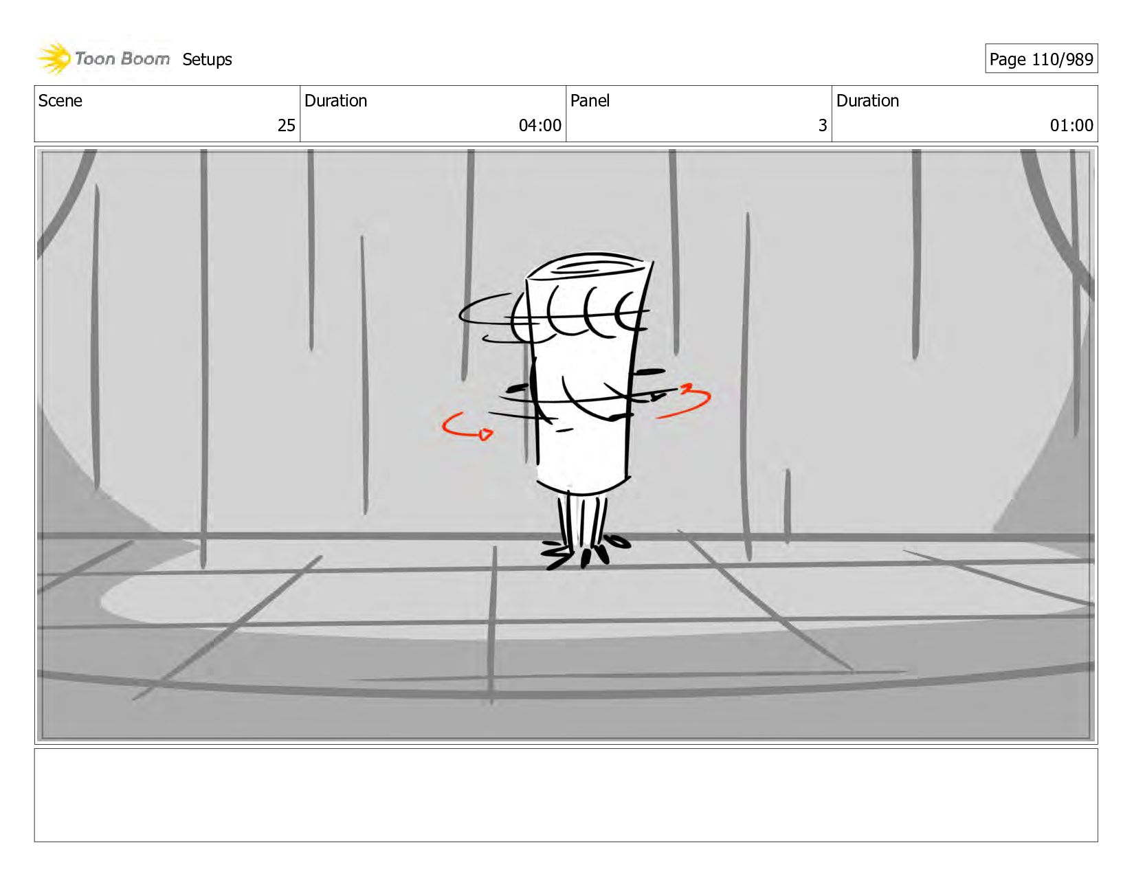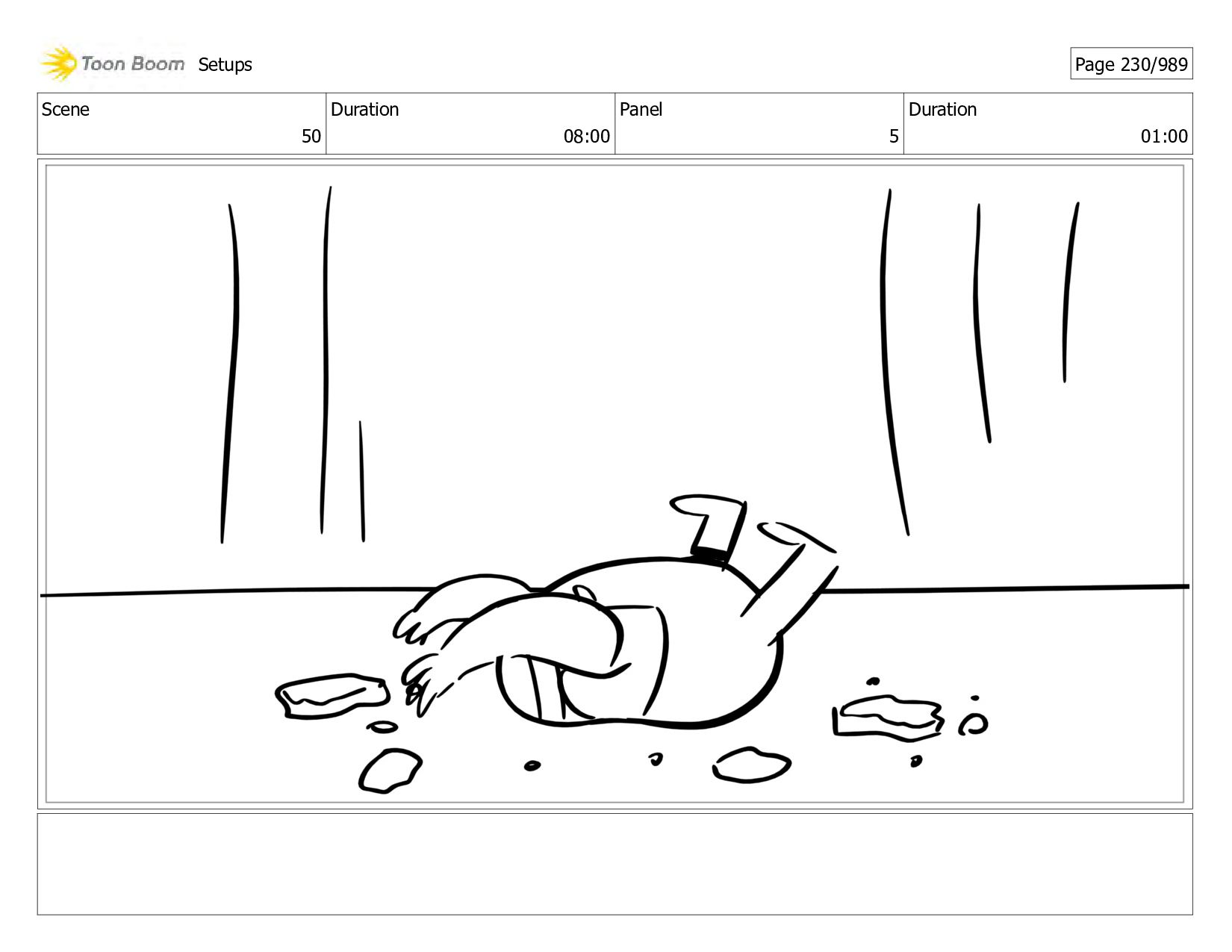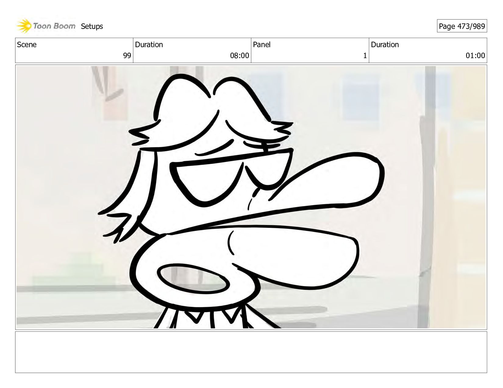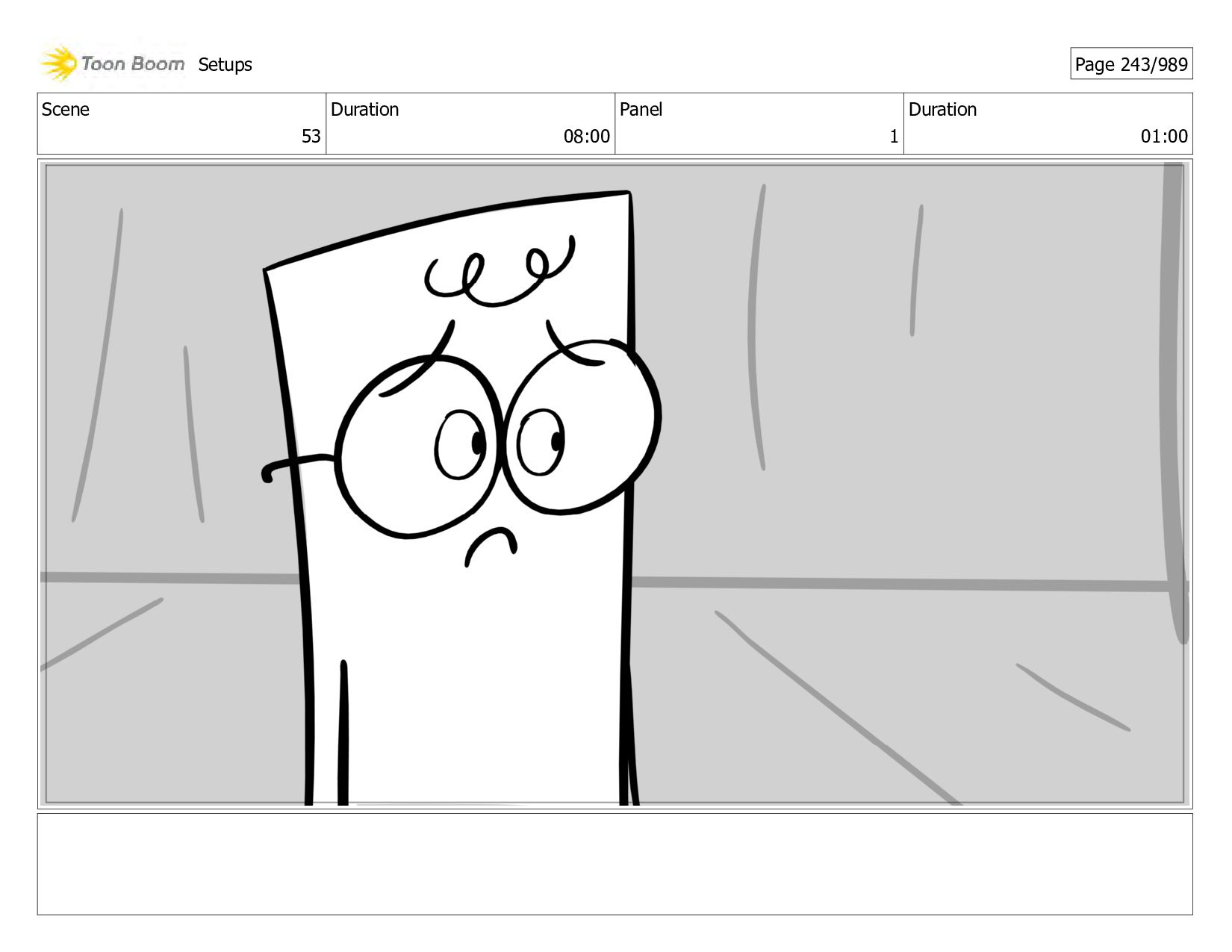 Scene 3 Duration 08:00 Panel 1 Duration 01:00 Setups Page
