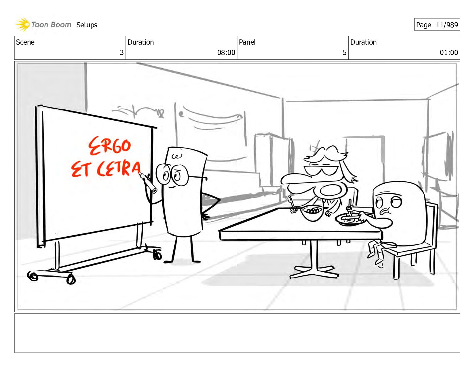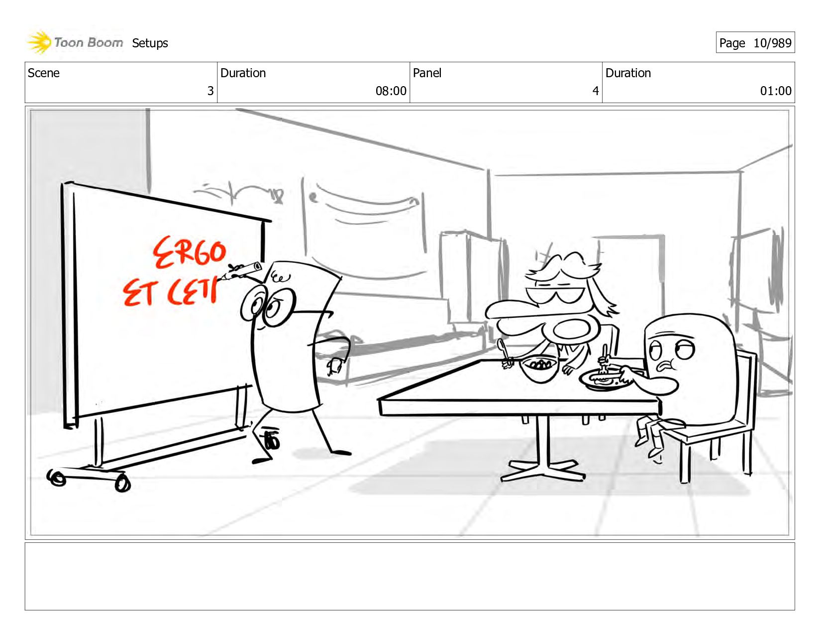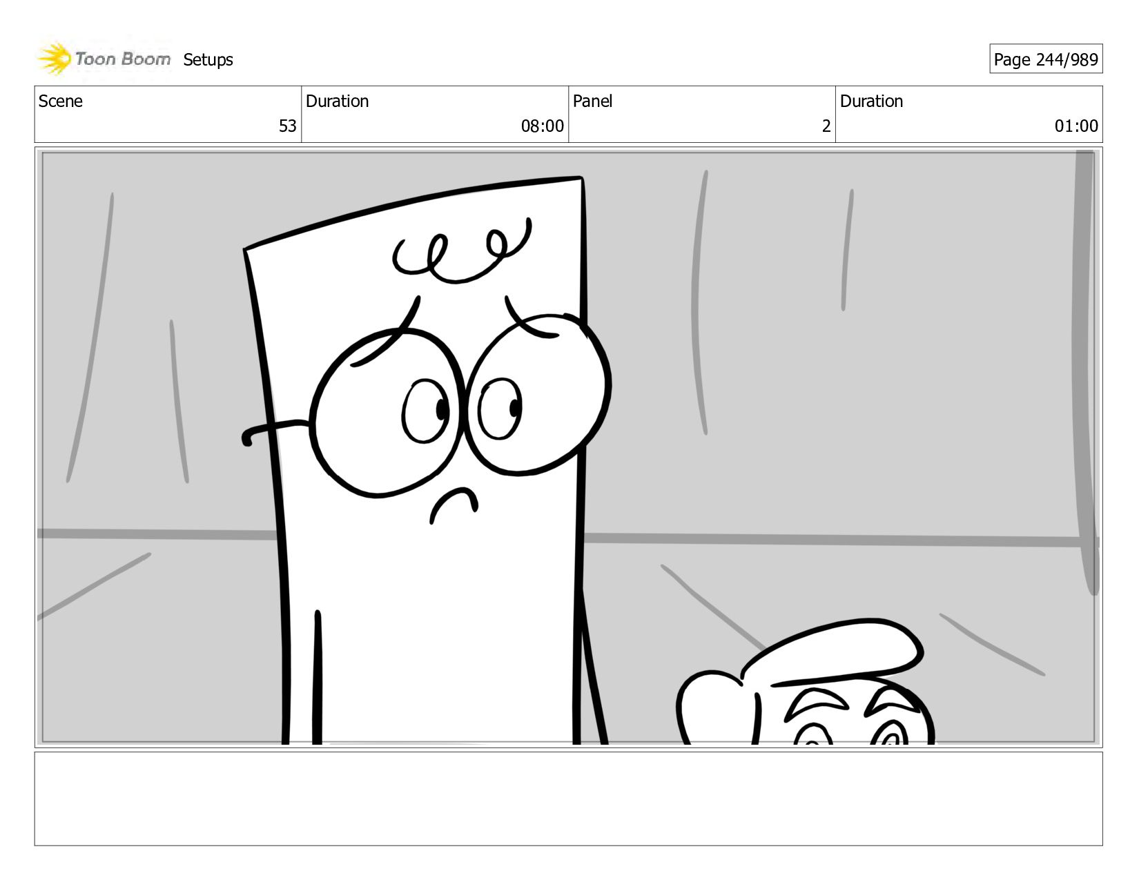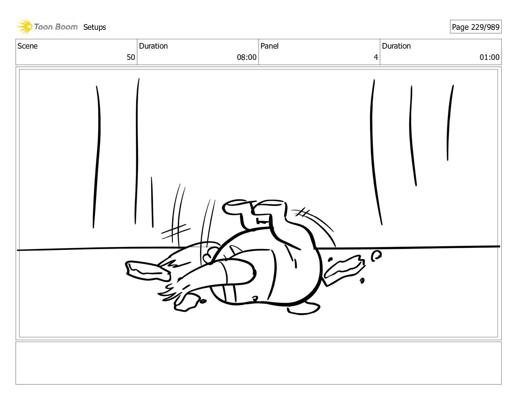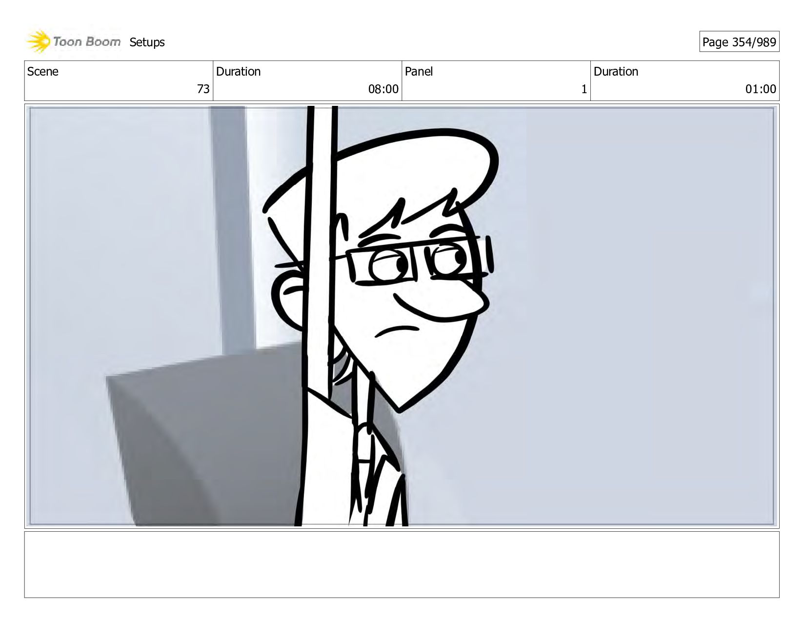 Scene 3 Duration 08:00 Panel 1 Duration 01:00 Setups Page