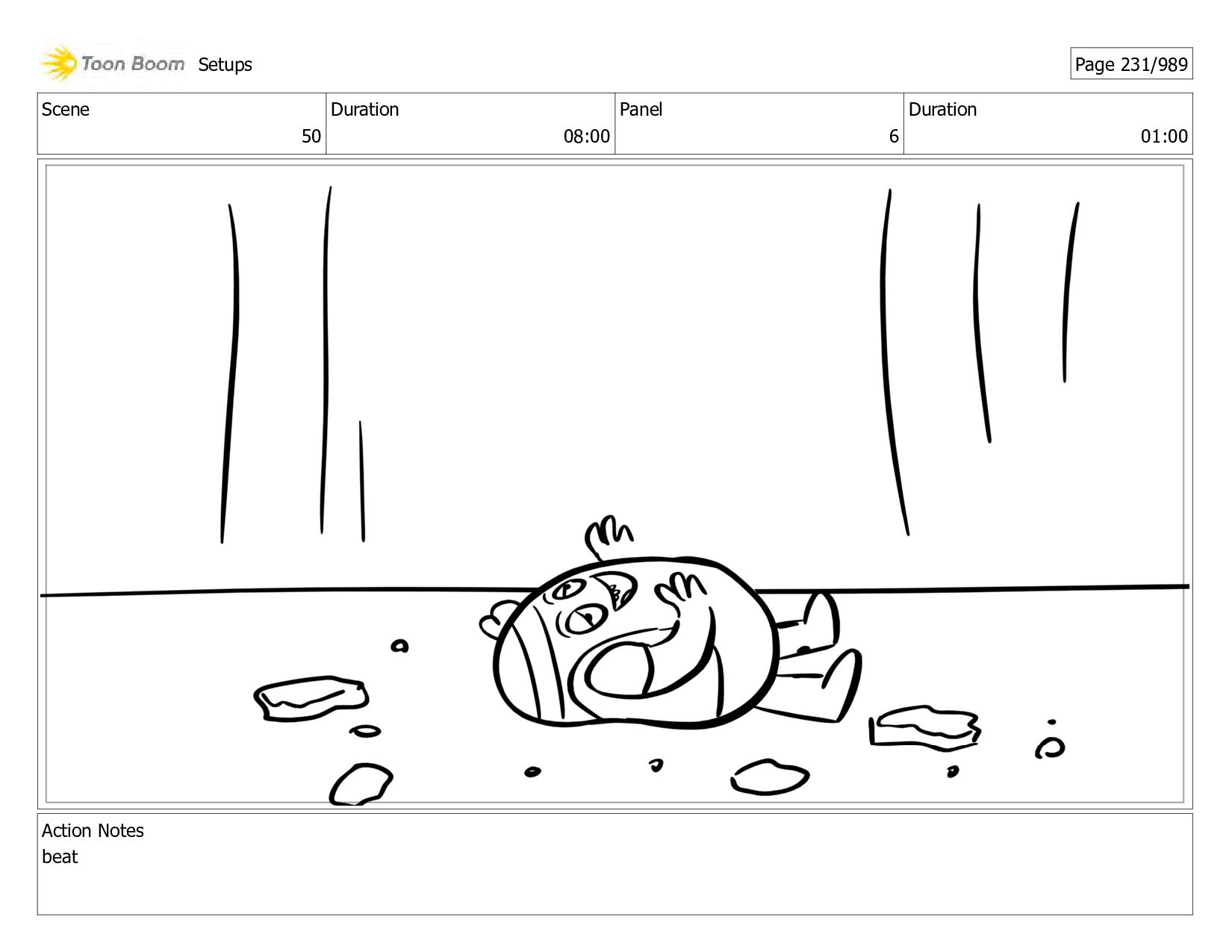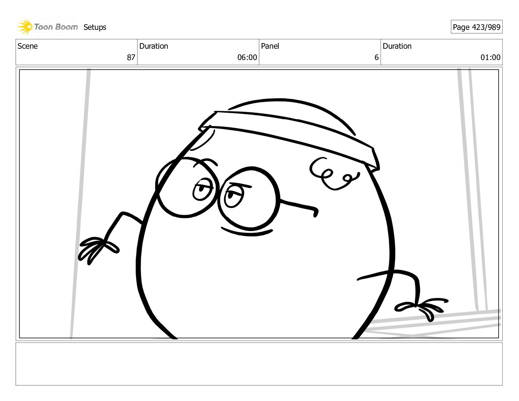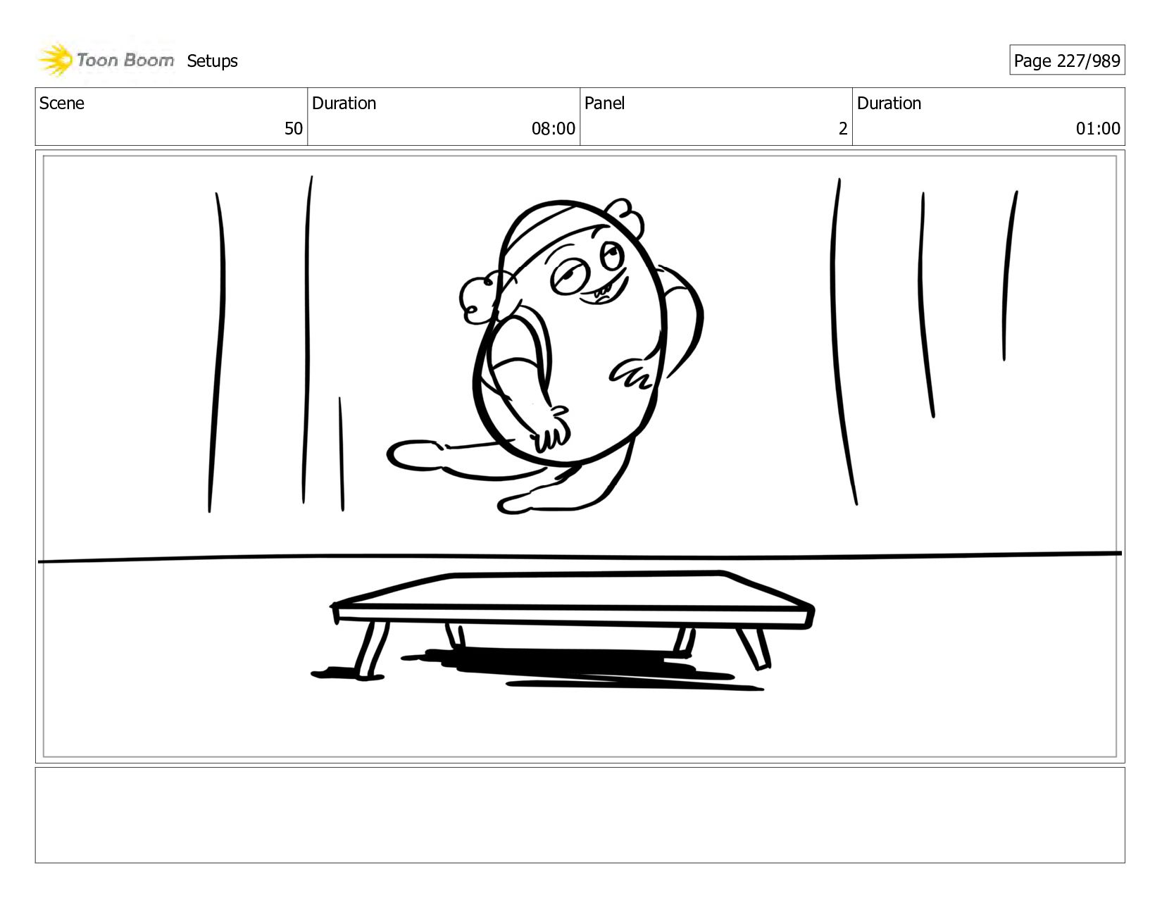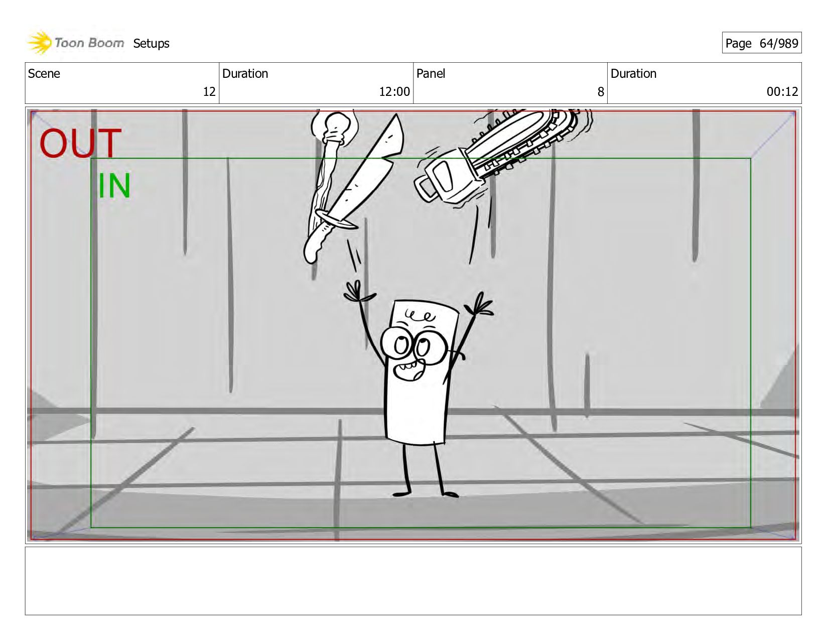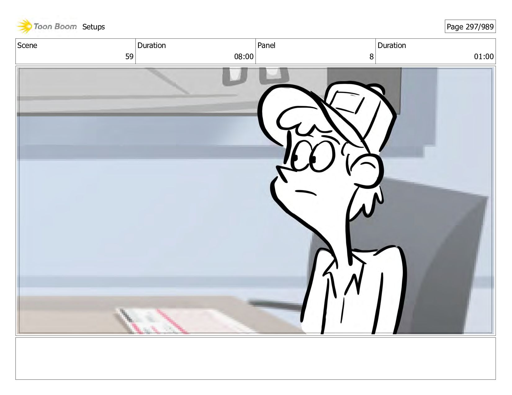 Scene 3 Duration 08:00 Panel 1 Duration 01:00 Setups Page