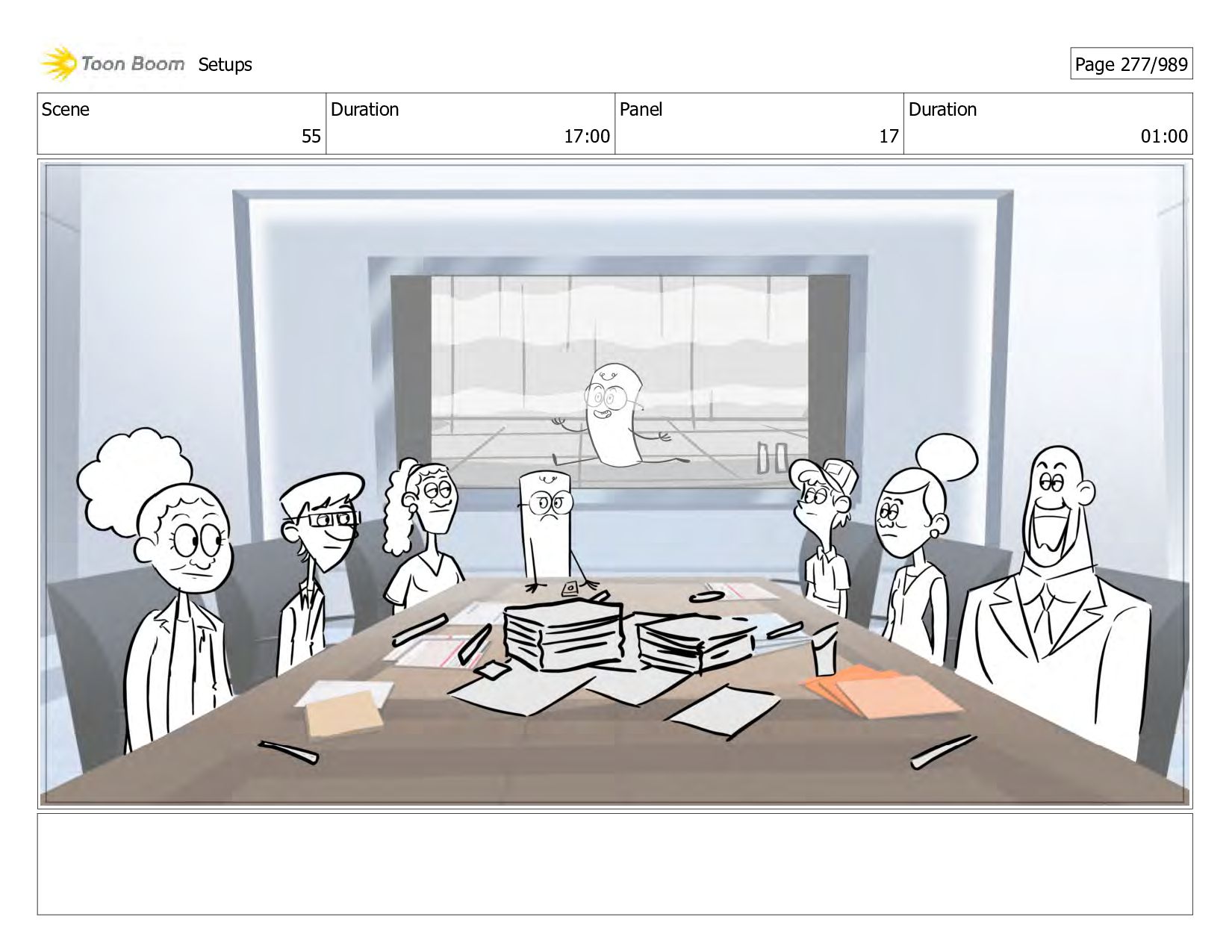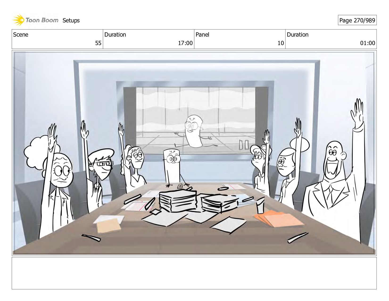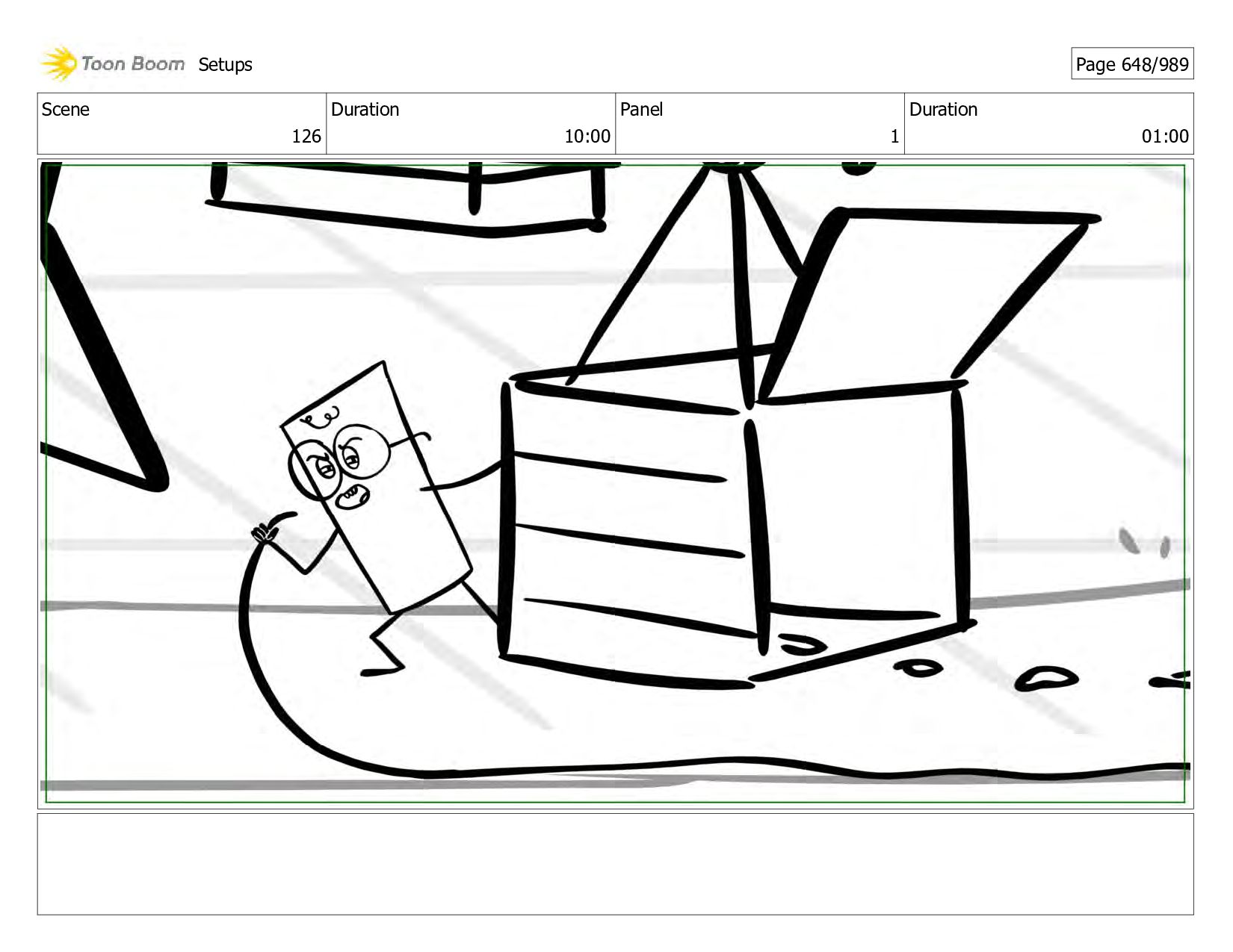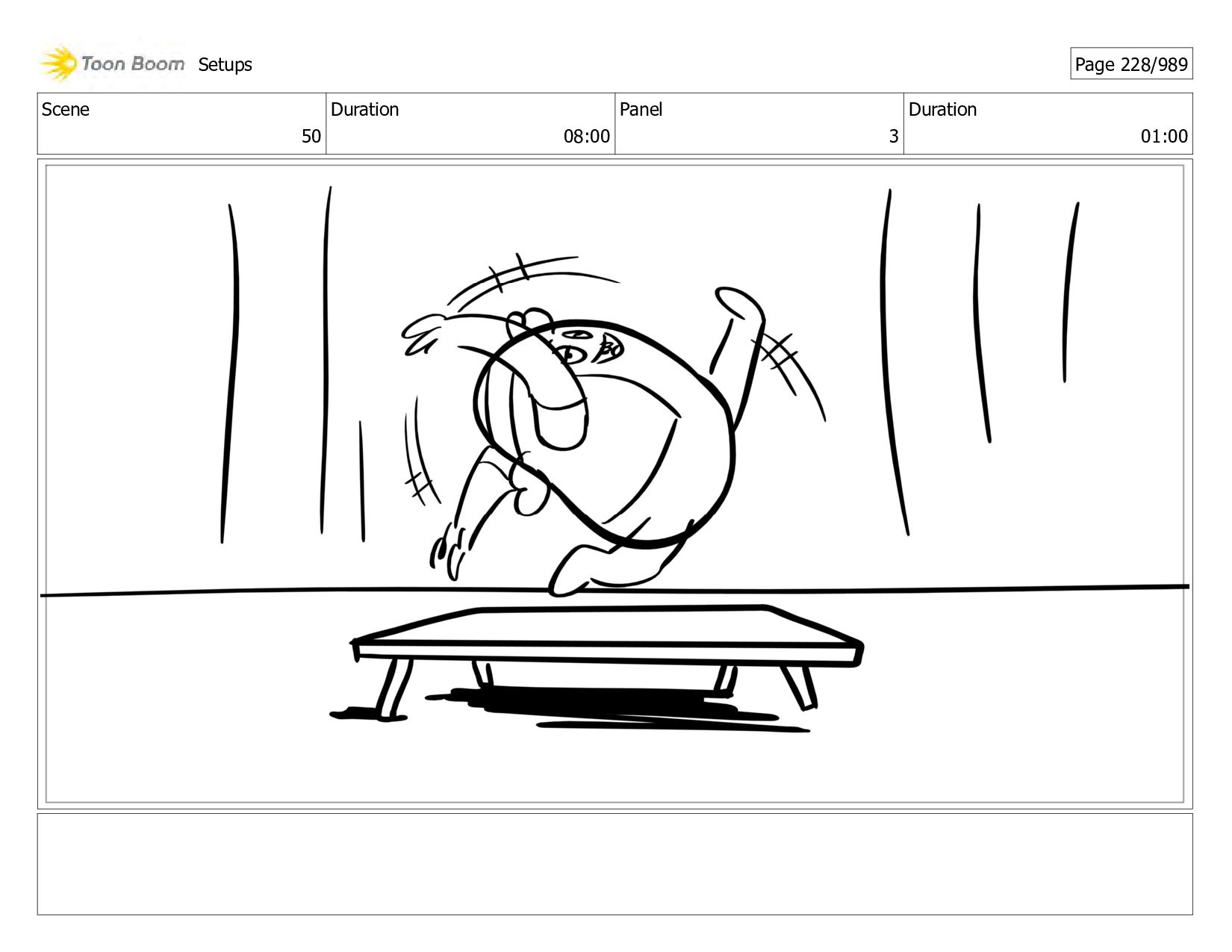 Scene 3 Duration 08:00 Panel 1 Duration 01:00 Setups Page