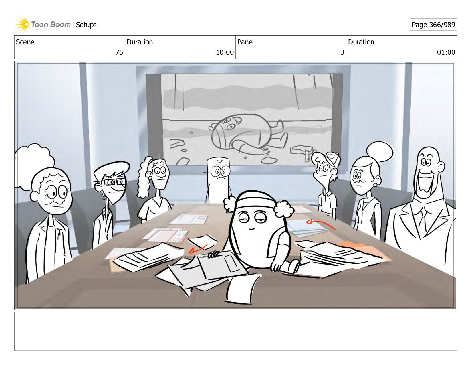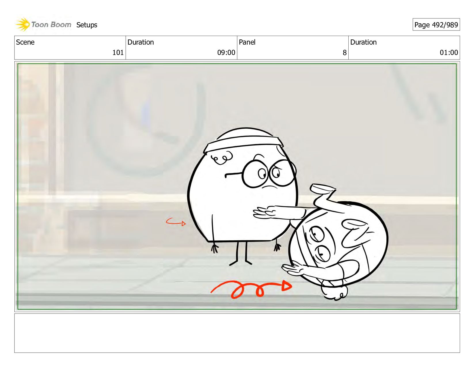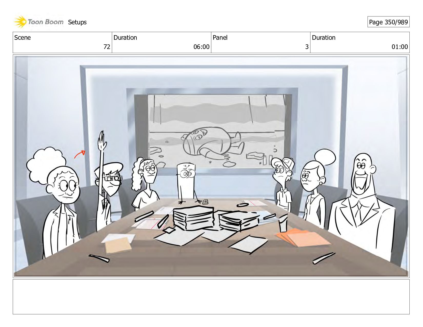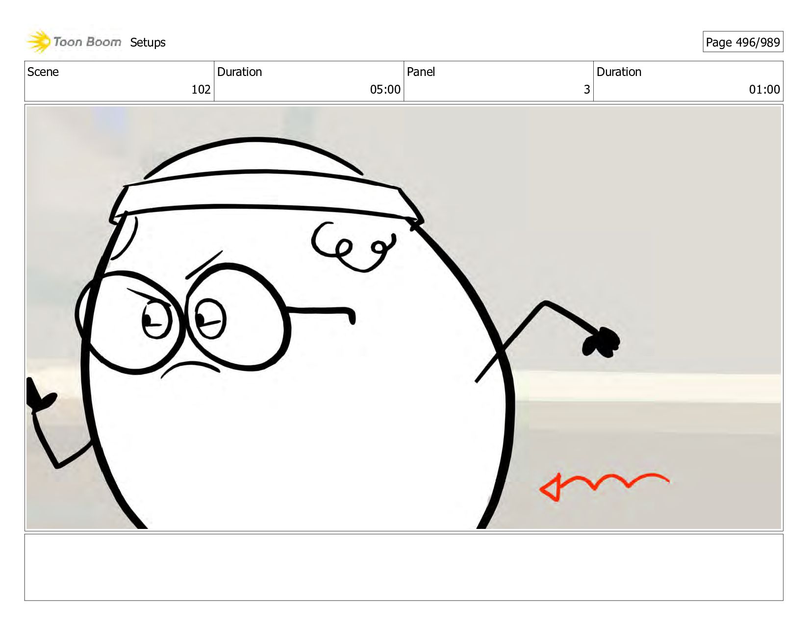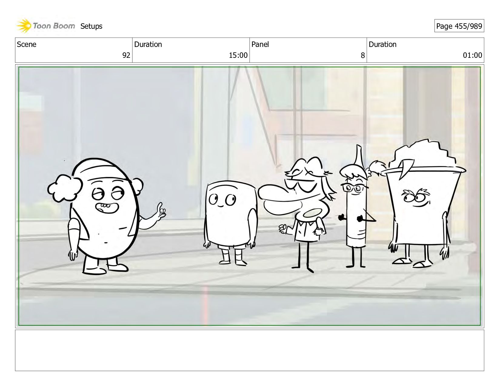 Scene 3 Duration 08:00 Panel 1 Duration 01:00 Setups Page