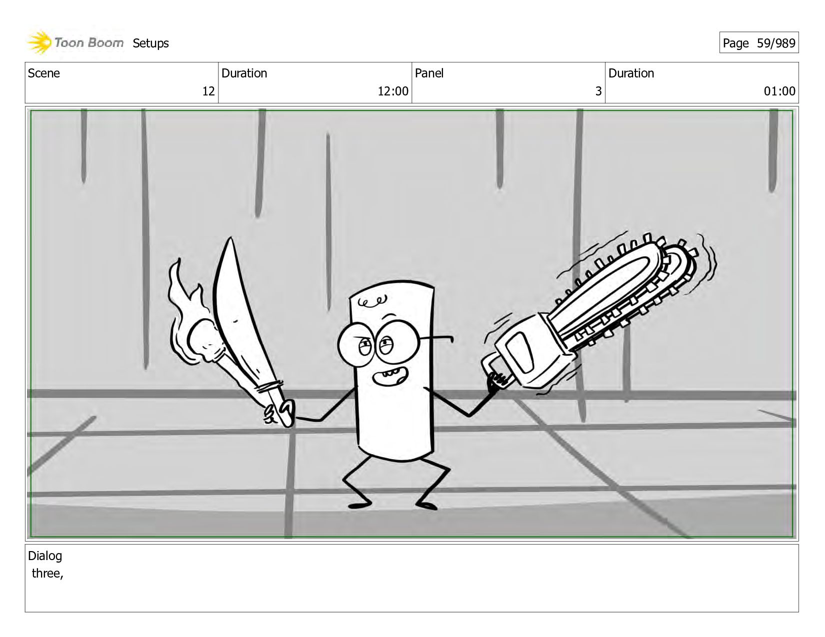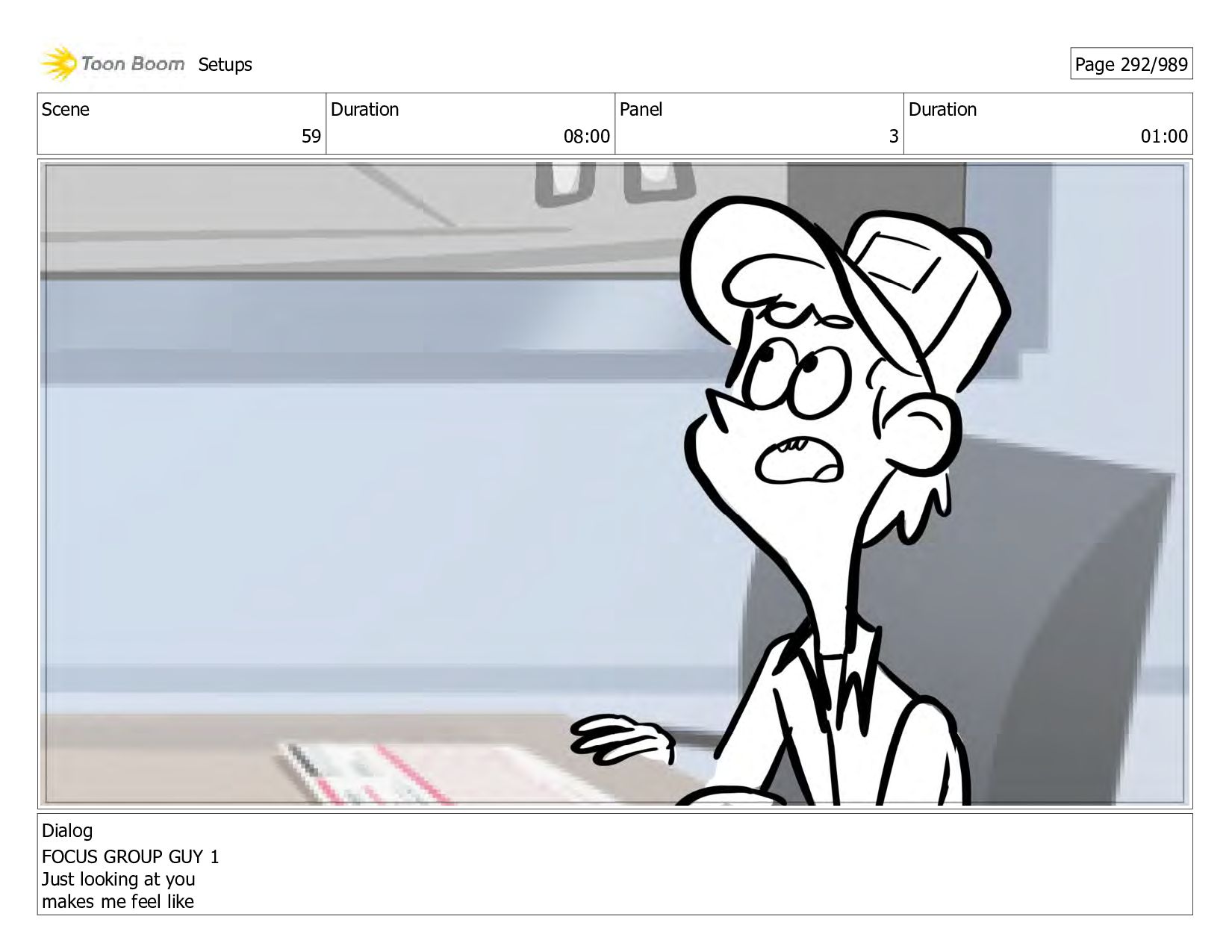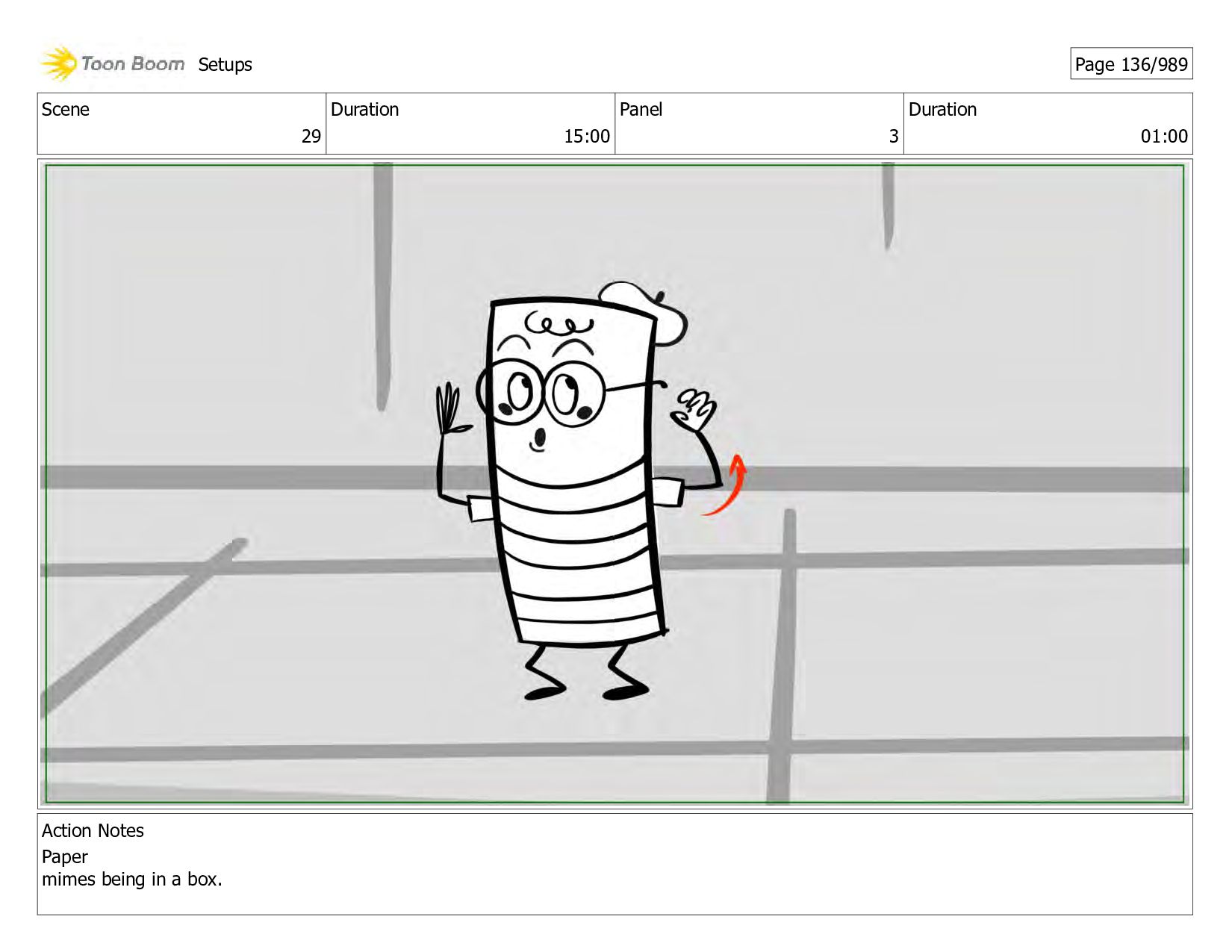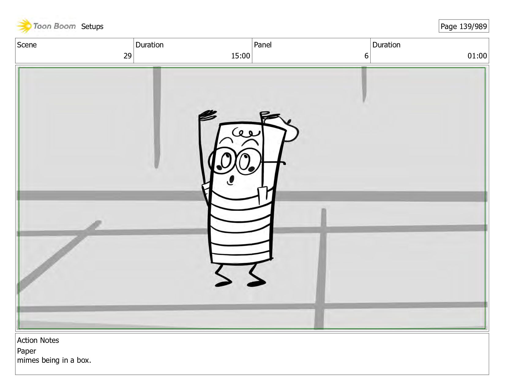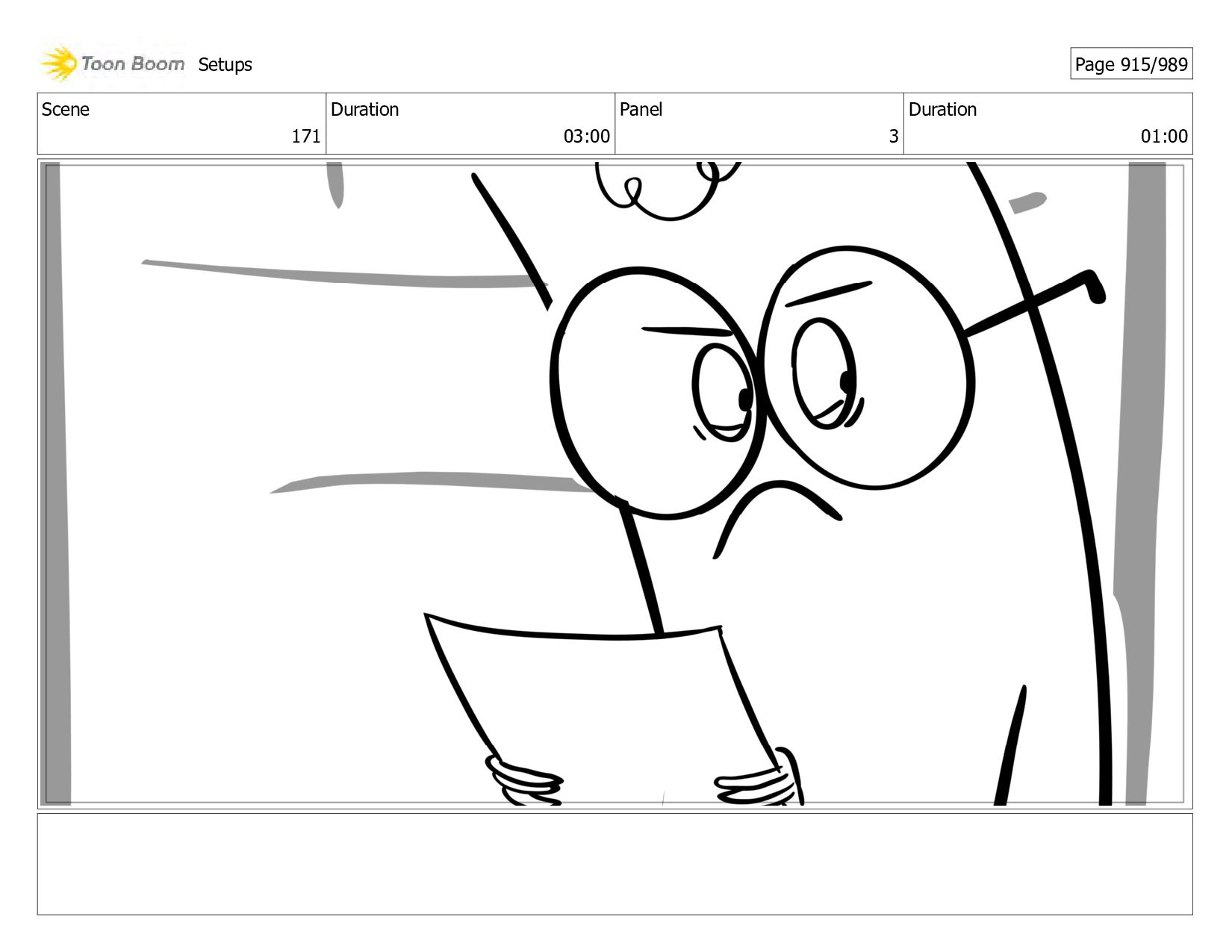 Scene 189 Duration 03:00 Panel 3 Duration 01:00 Setups Page
