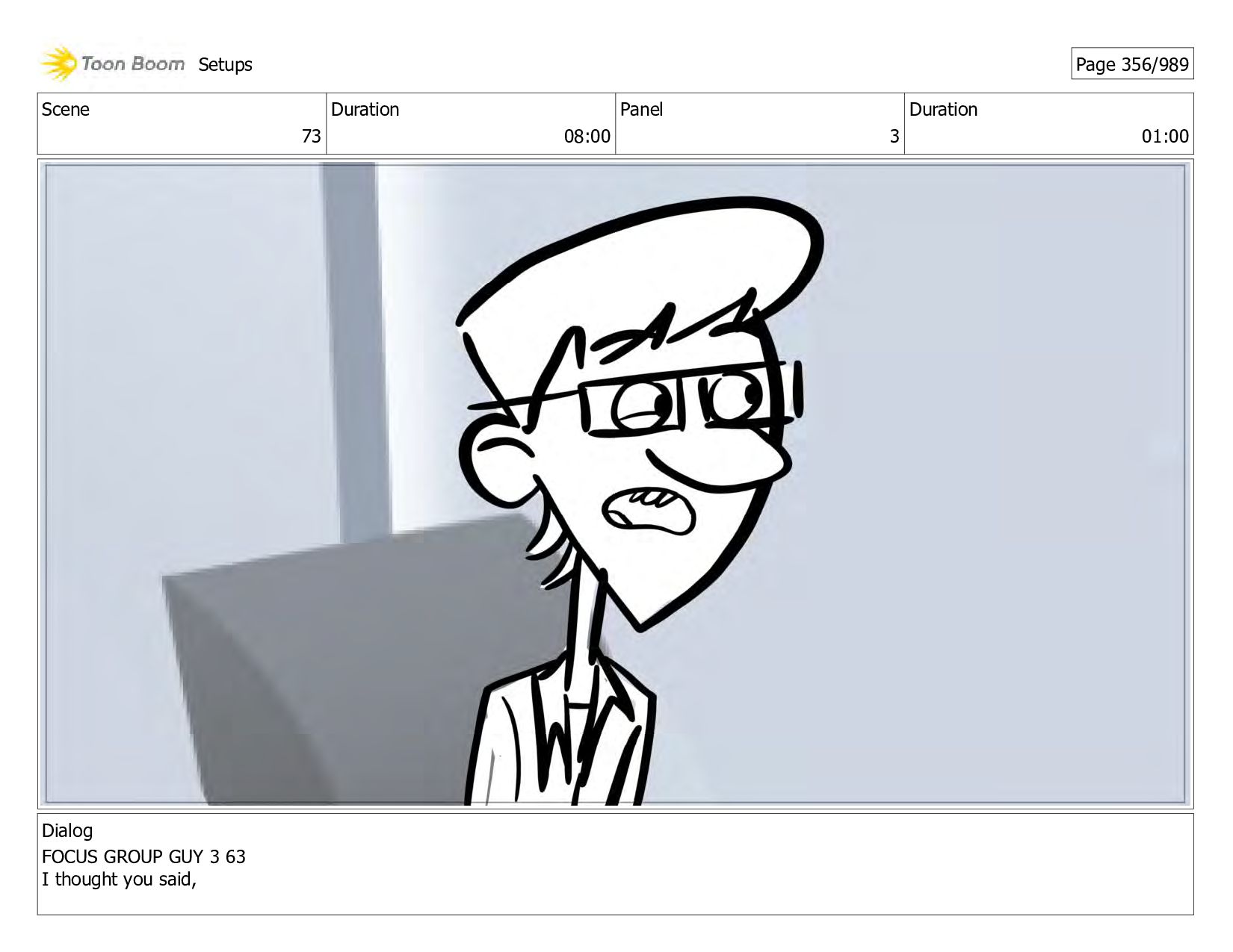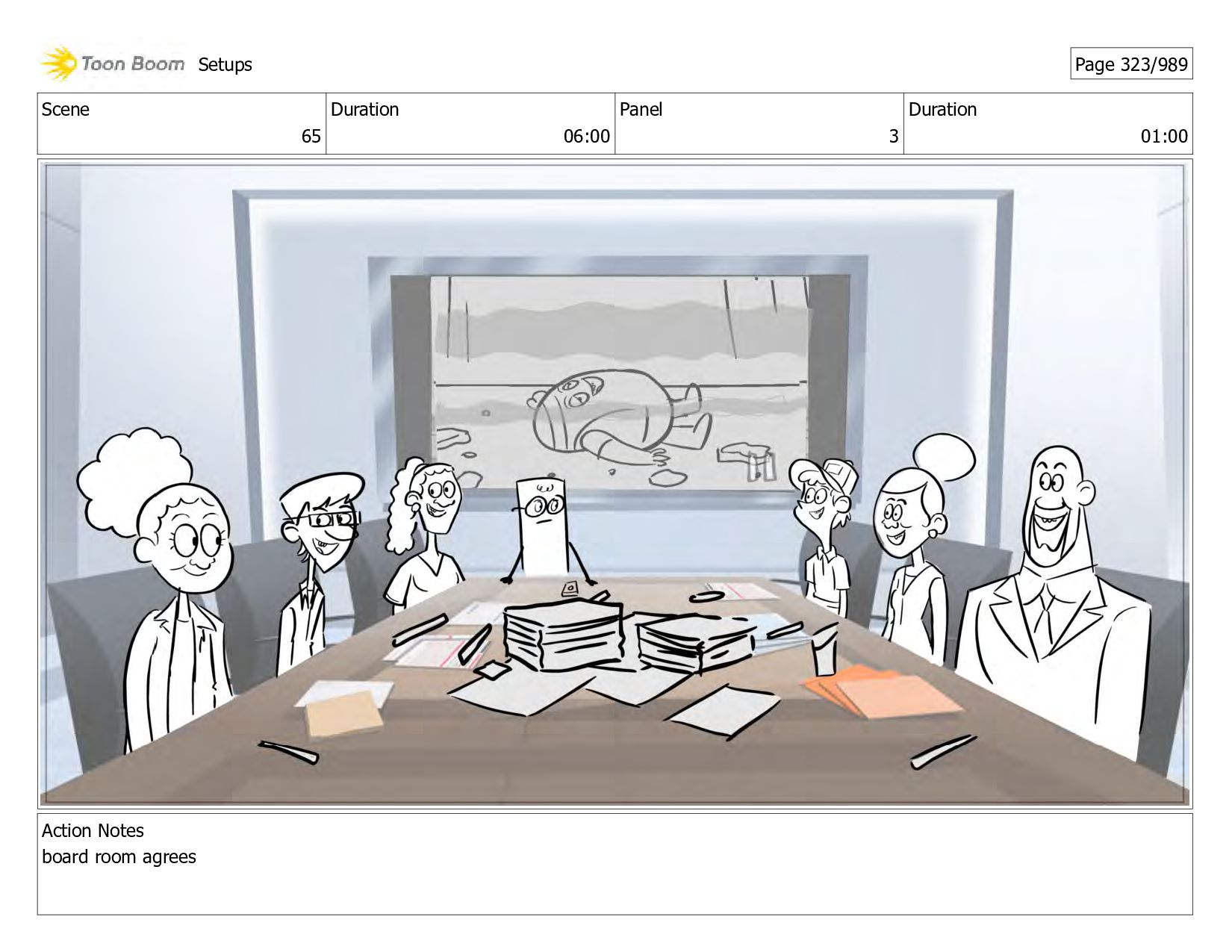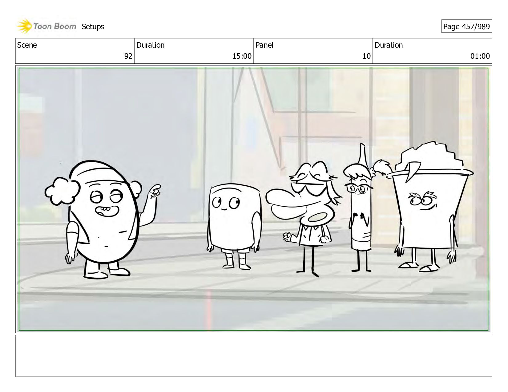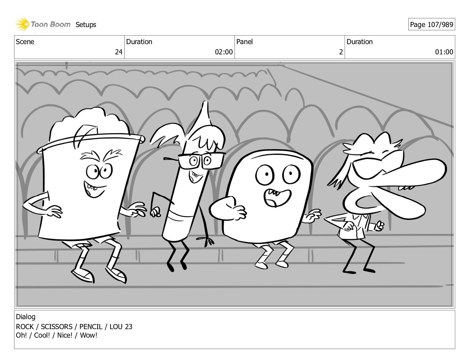 Scene 189 Duration 03:00 Panel 3 Duration 01:00 Setups Page