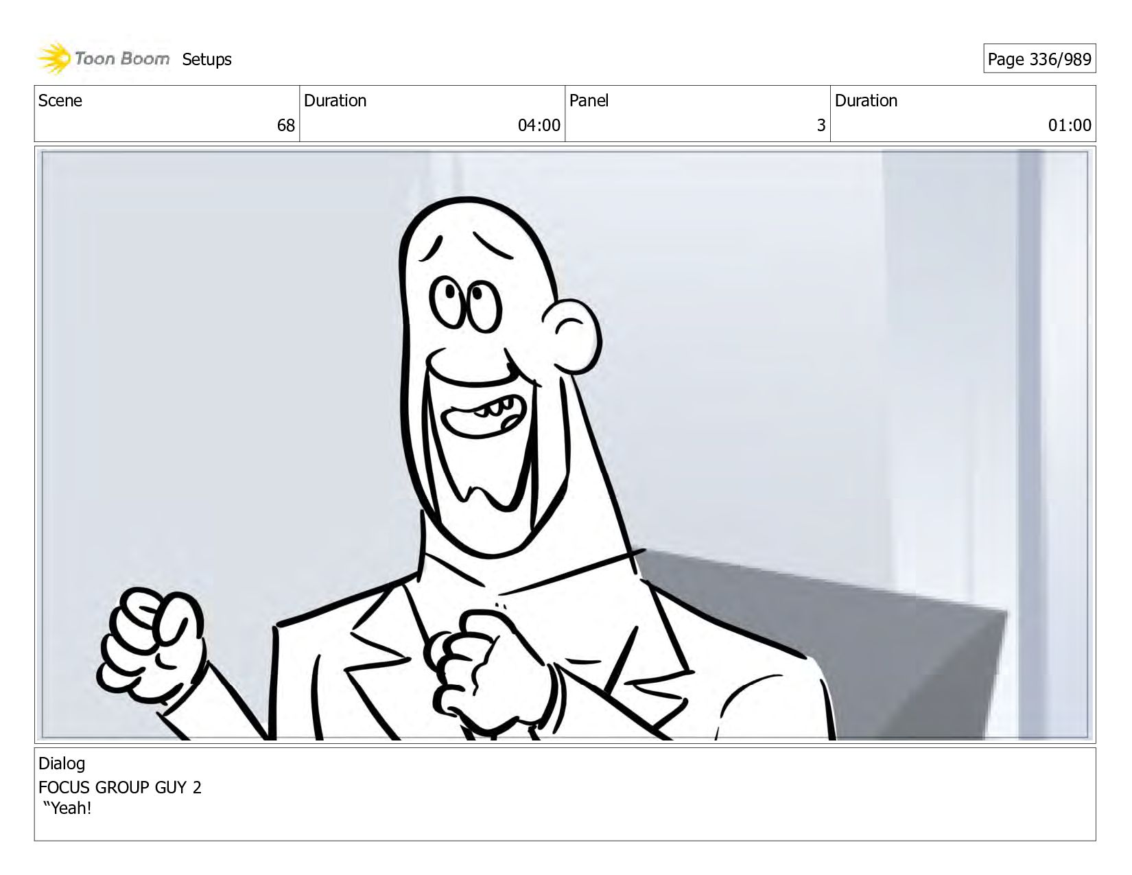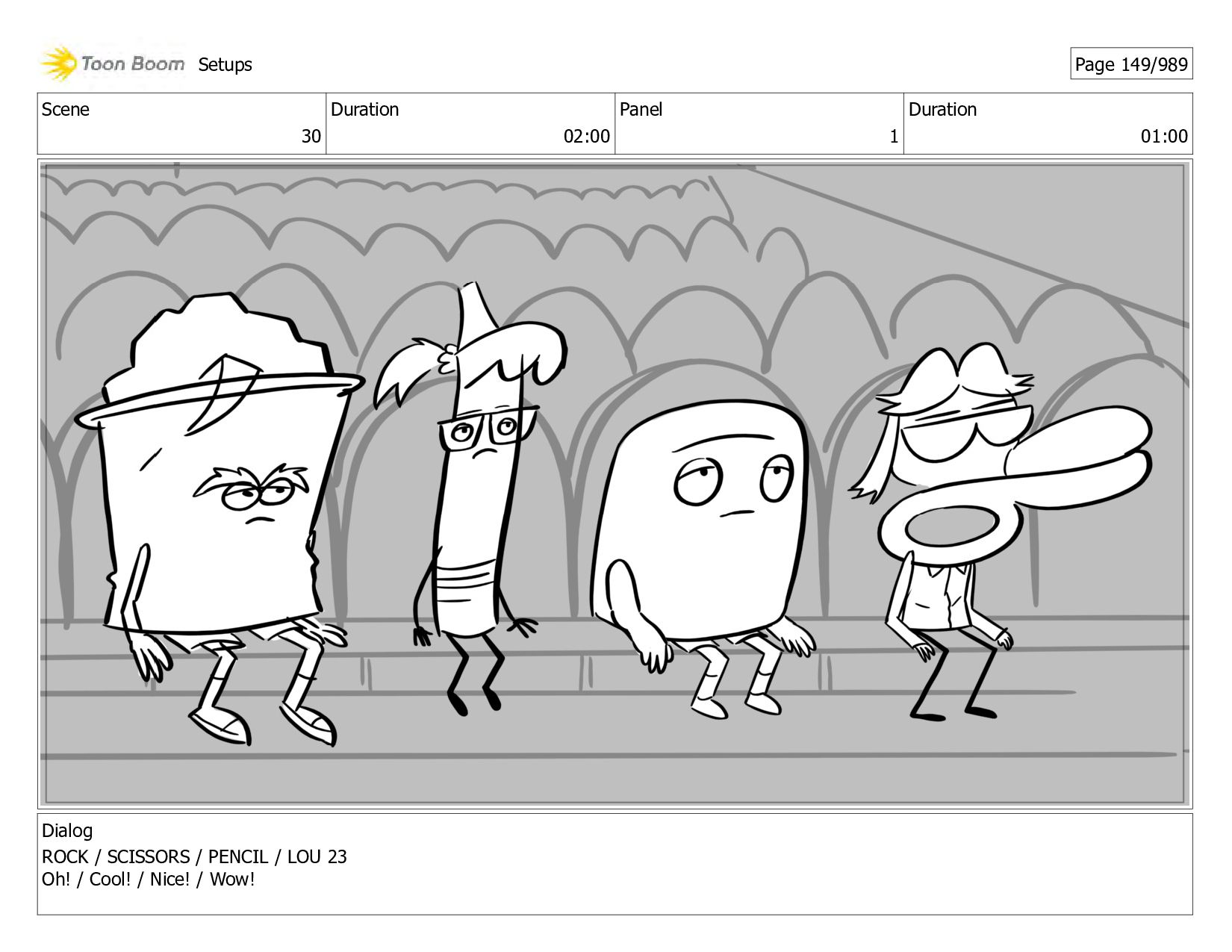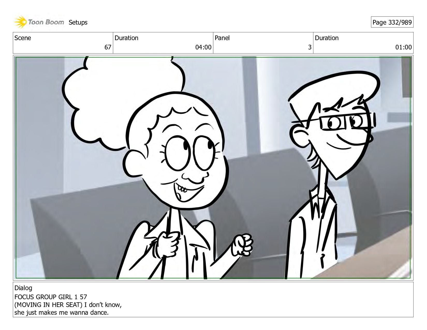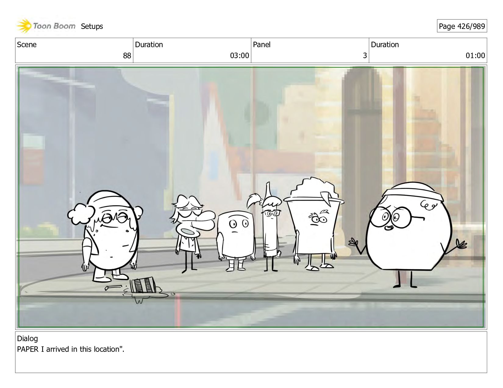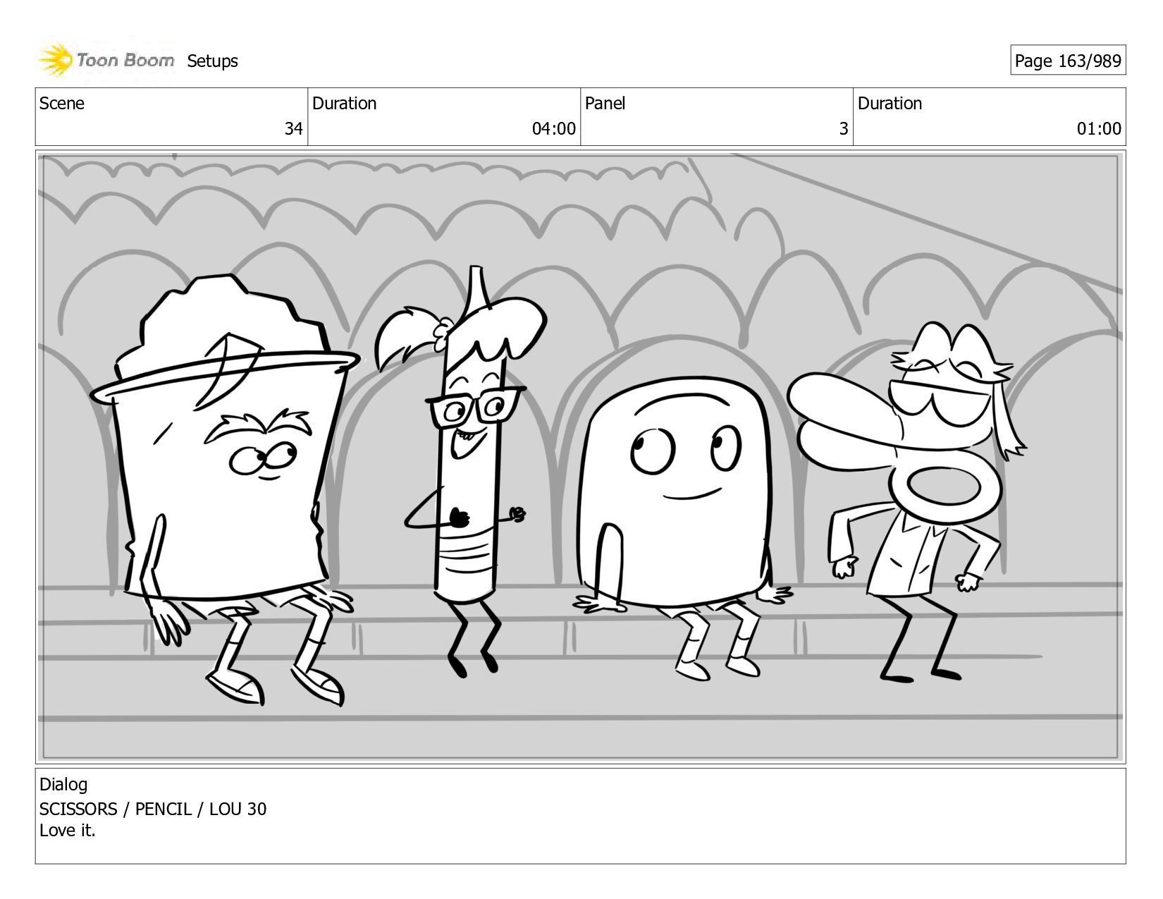 Scene 189 Duration 03:00 Panel 3 Duration 01:00 Setups Page