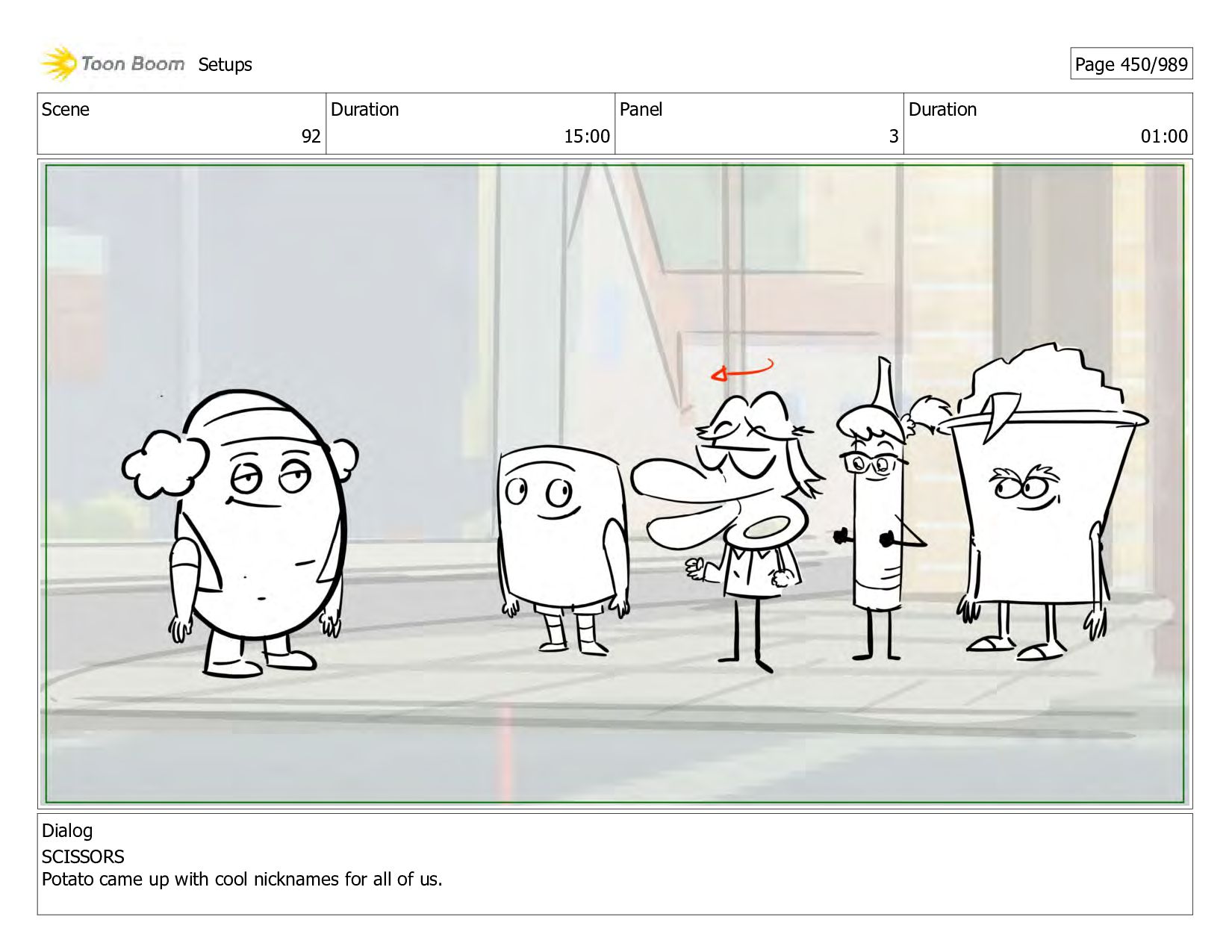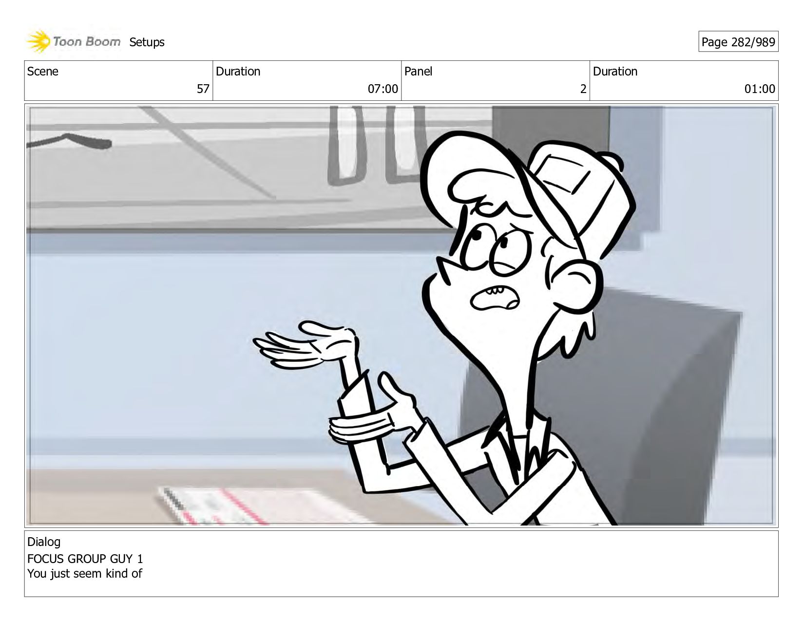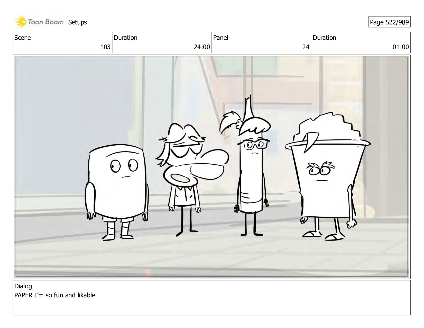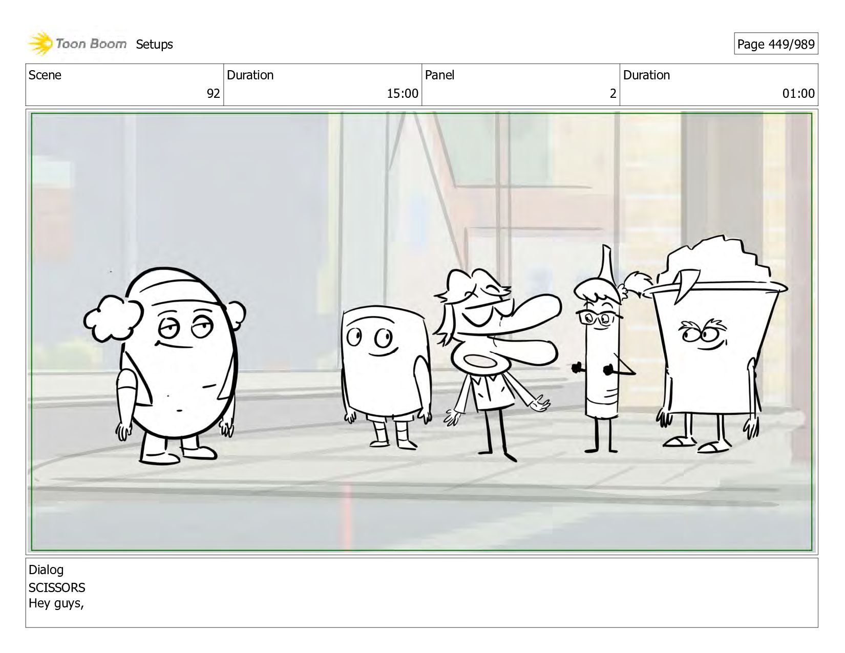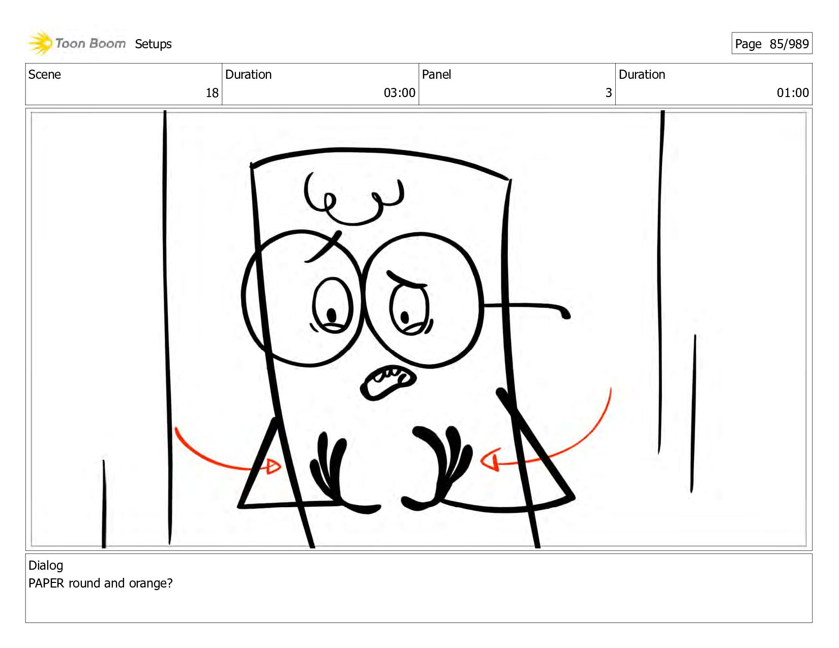 Scene 189 Duration 03:00 Panel 3 Duration 01:00 Setups Page