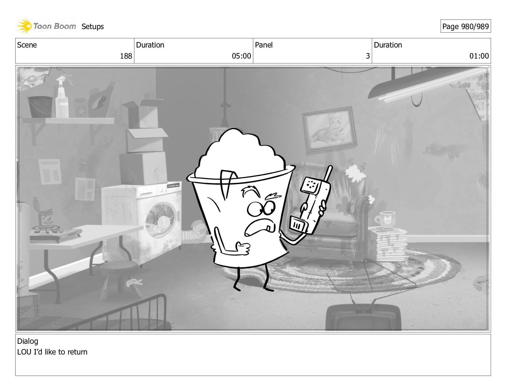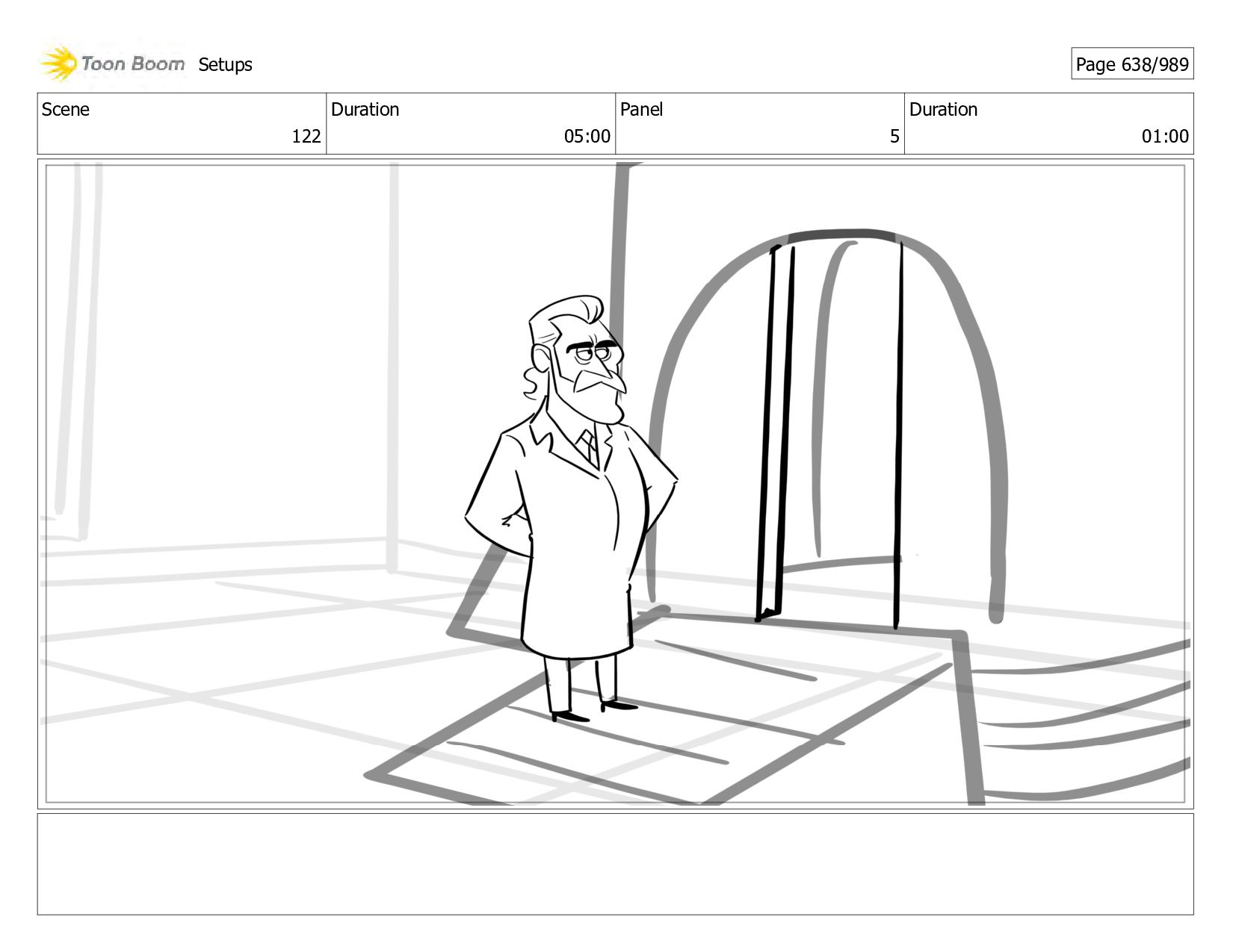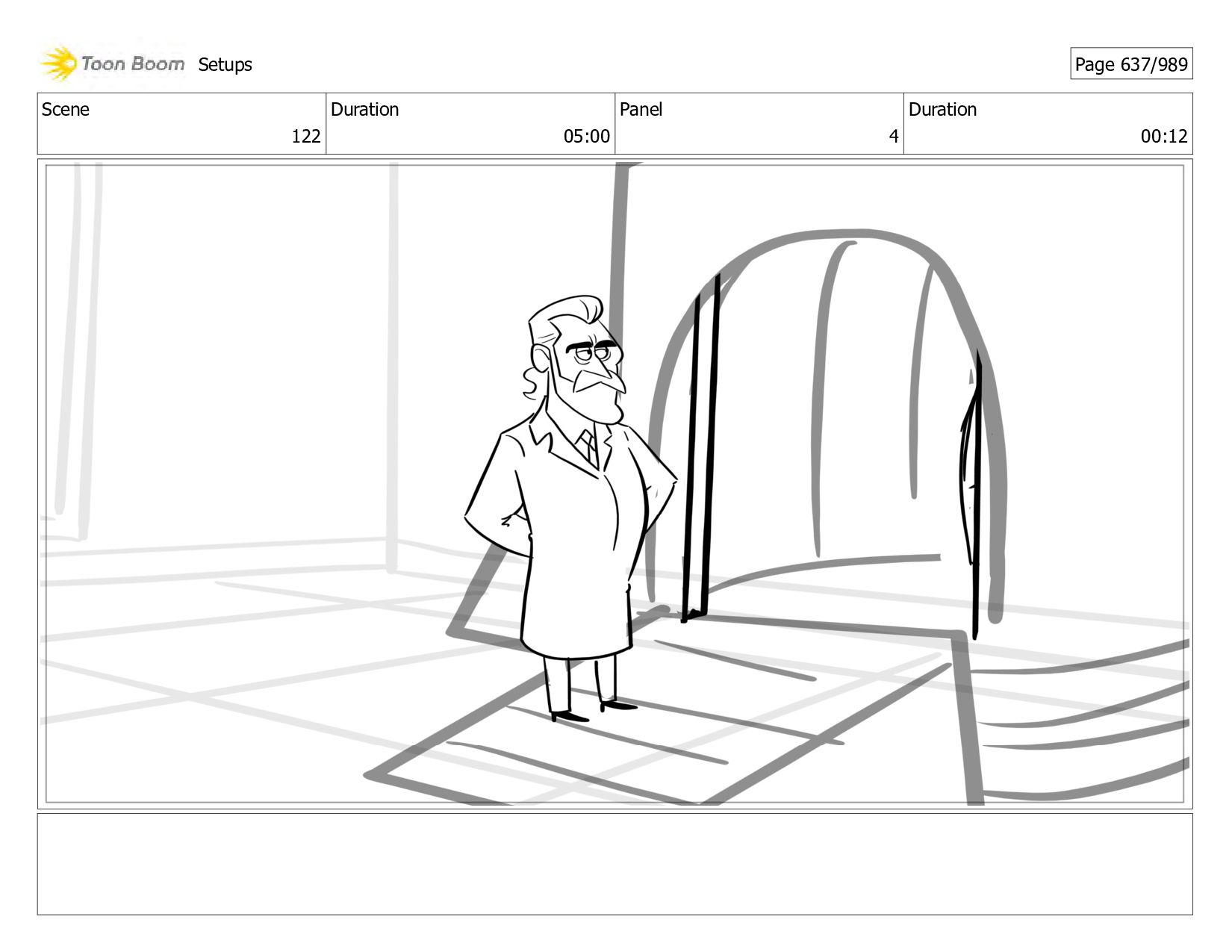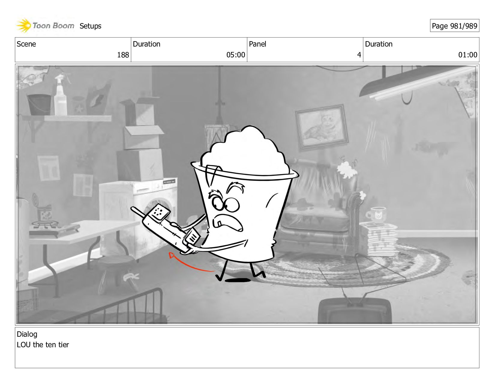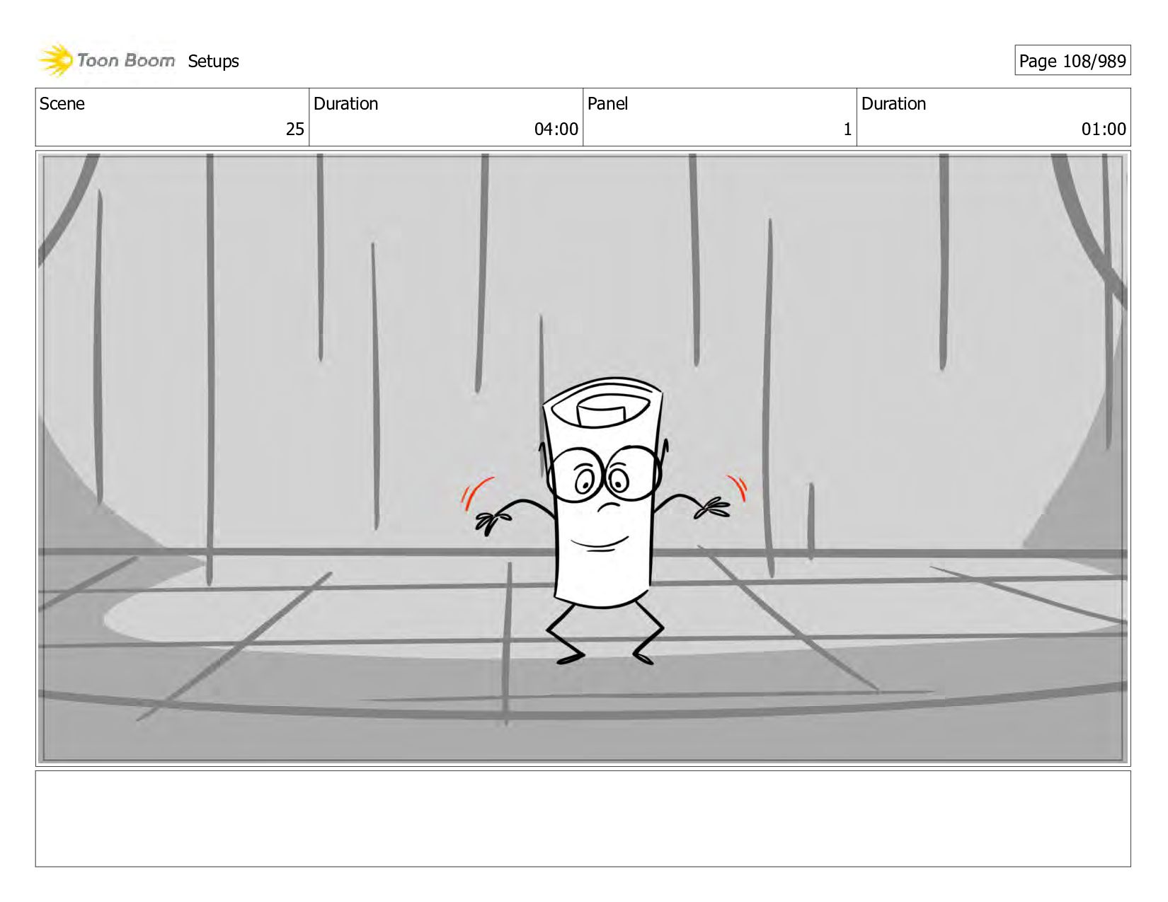 Scene 188 Duration 05:00 Panel 1 Duration 01:00 Setups Page