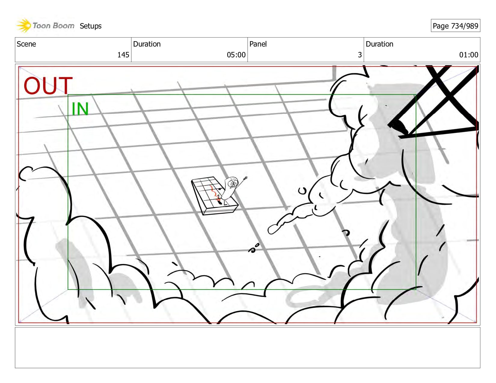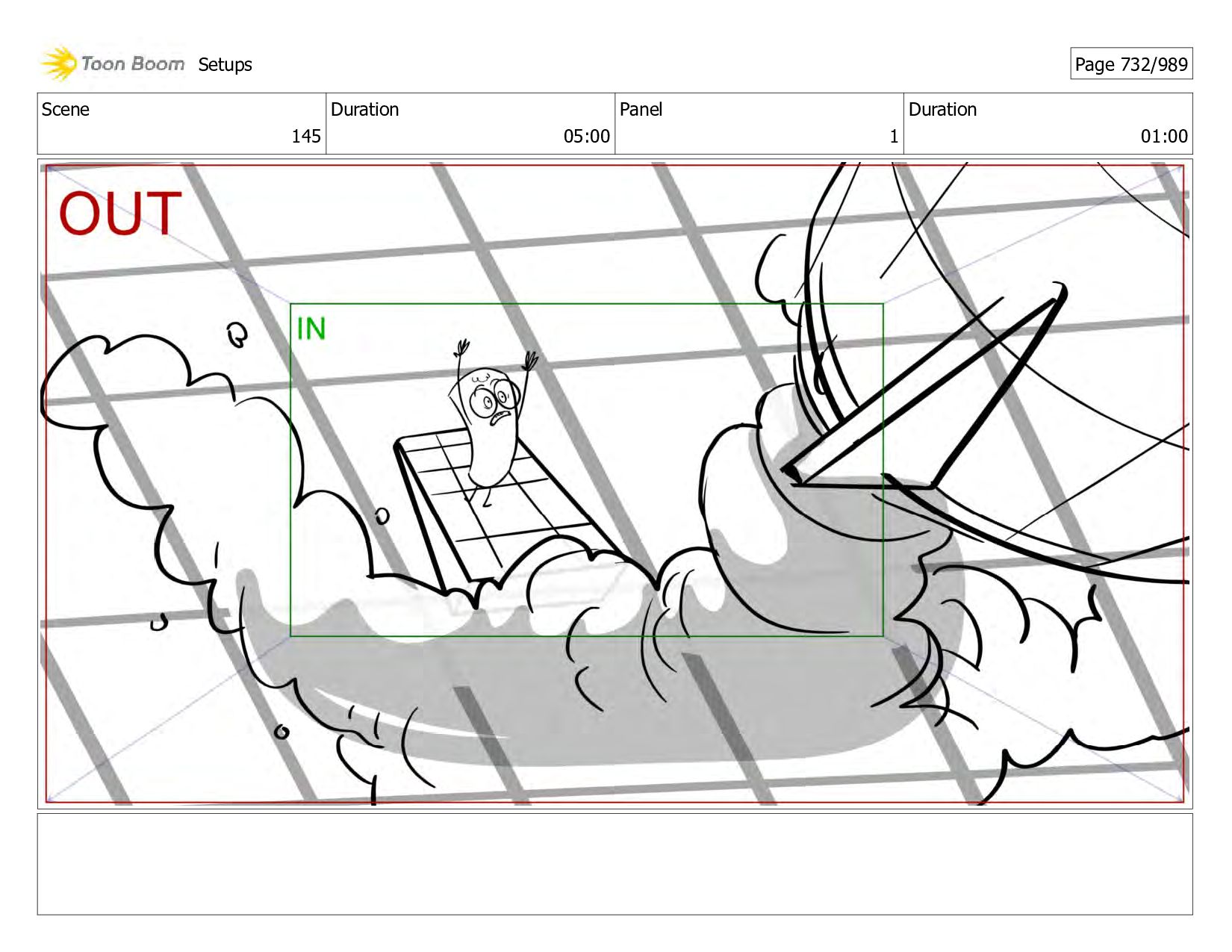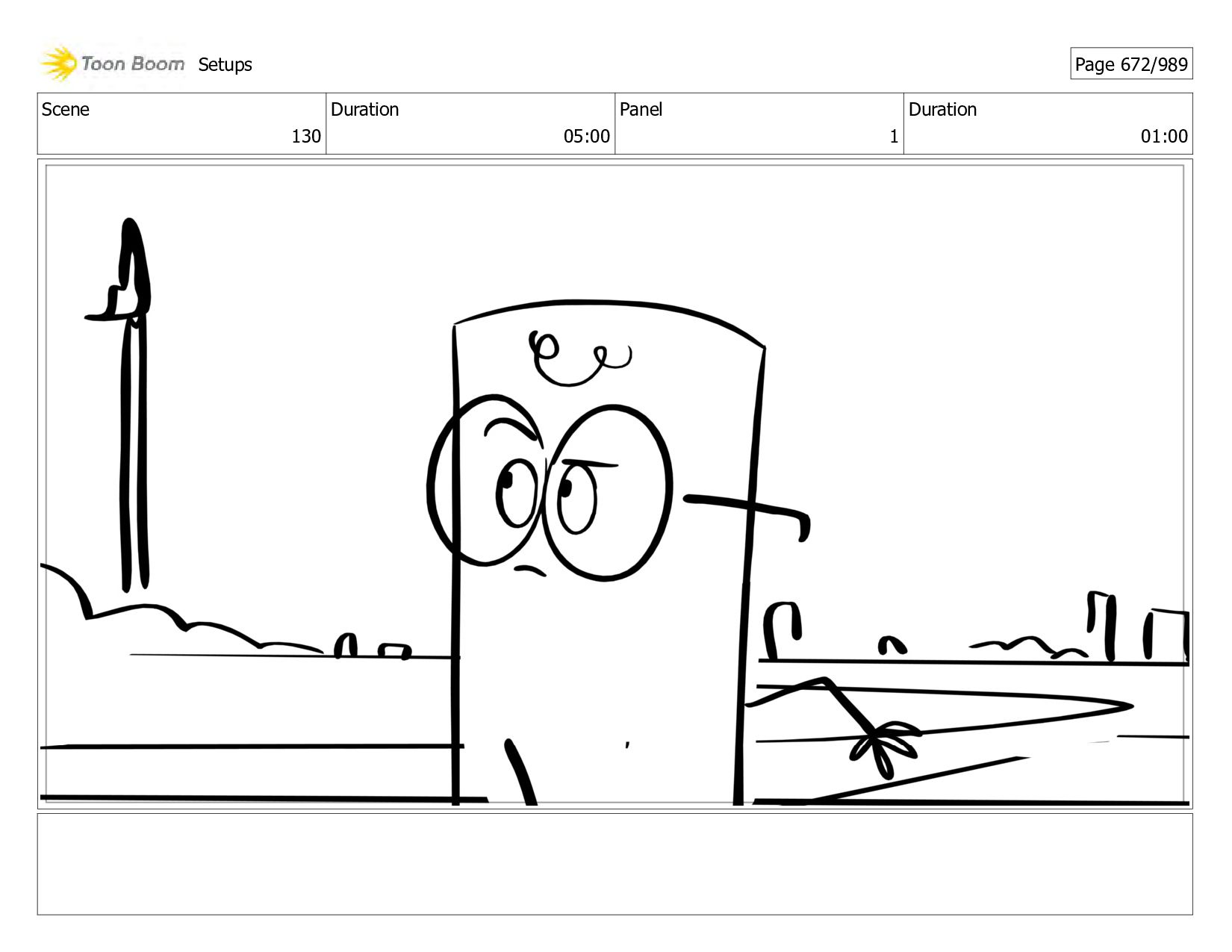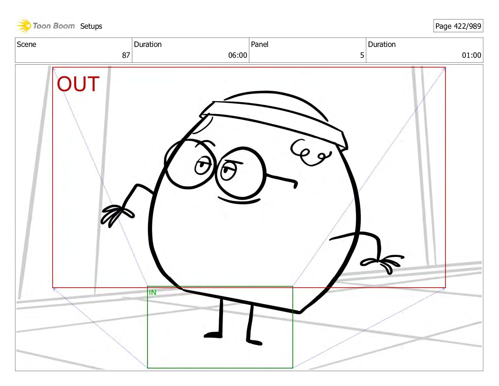 Scene 188 Duration 05:00 Panel 1 Duration 01:00 Setups Page