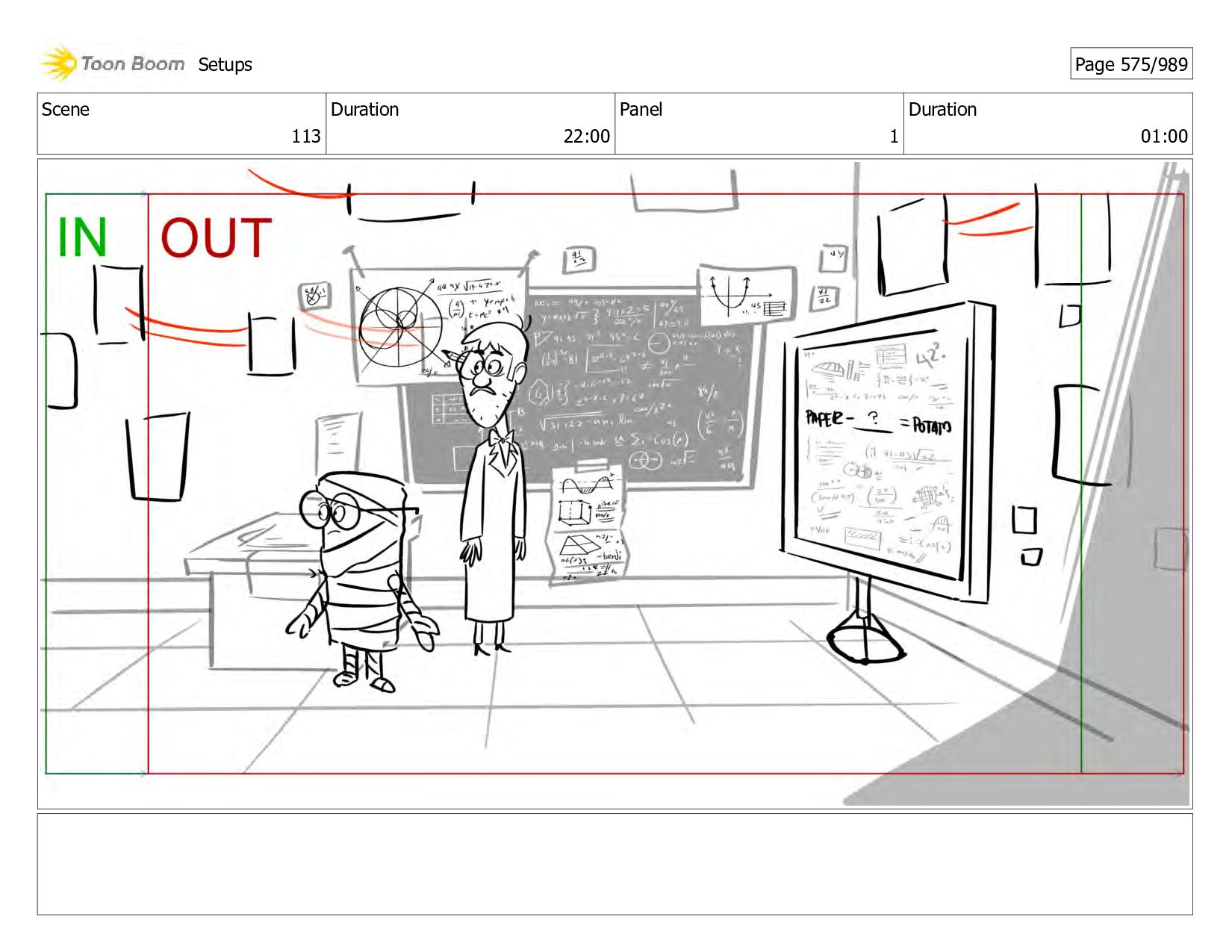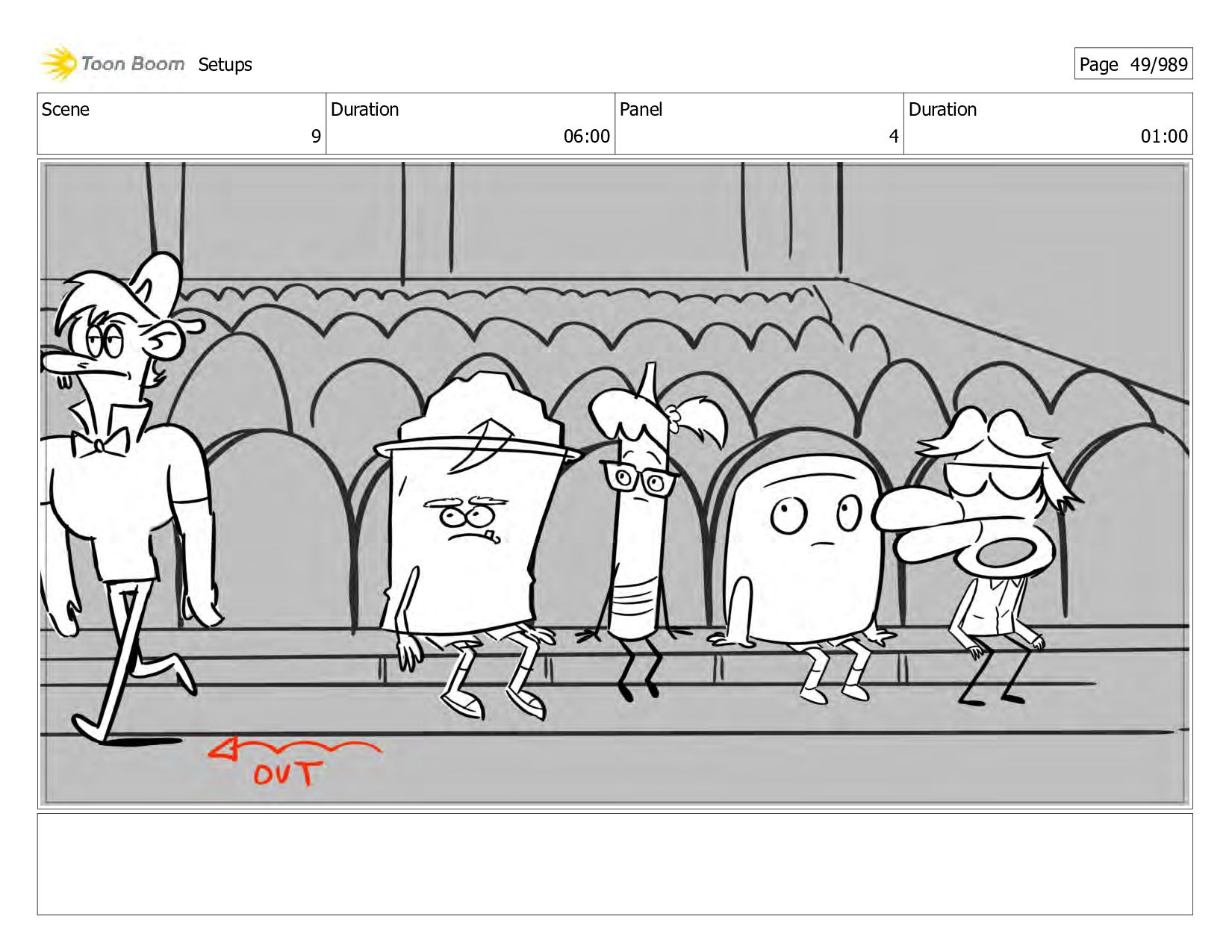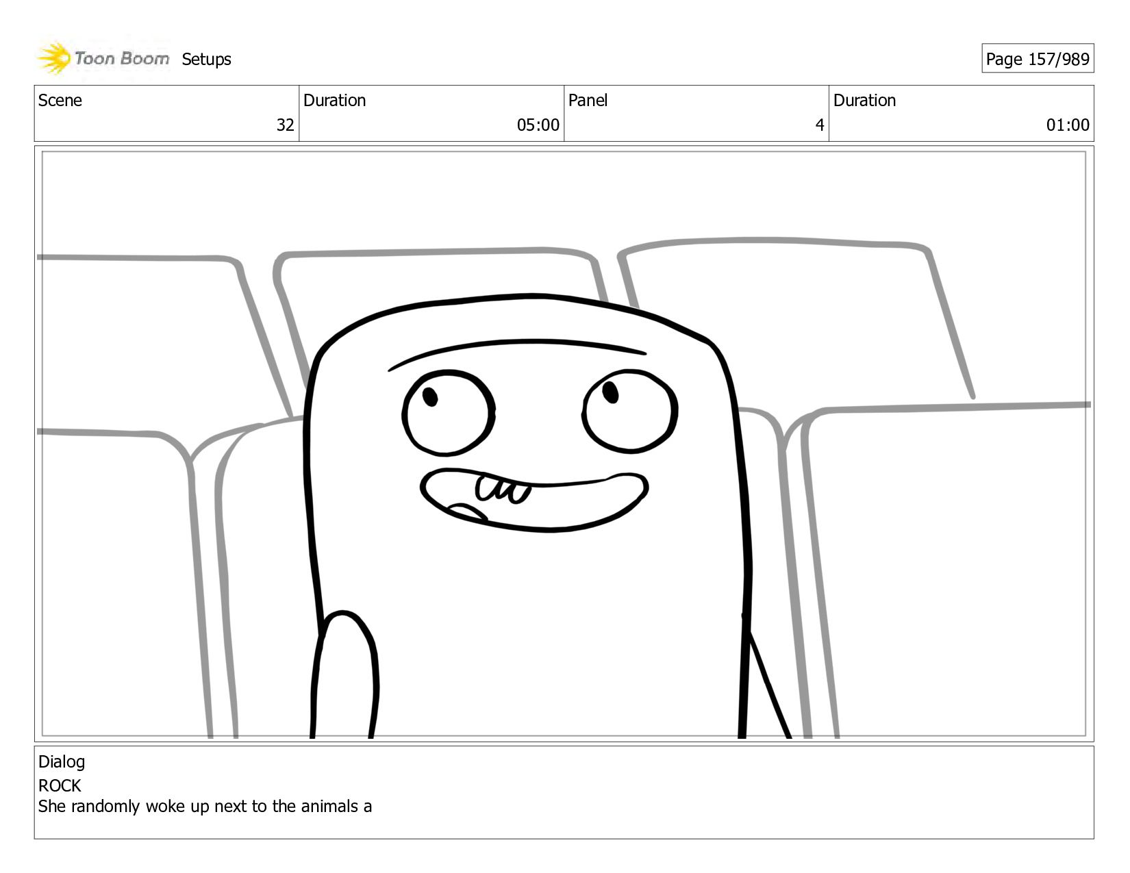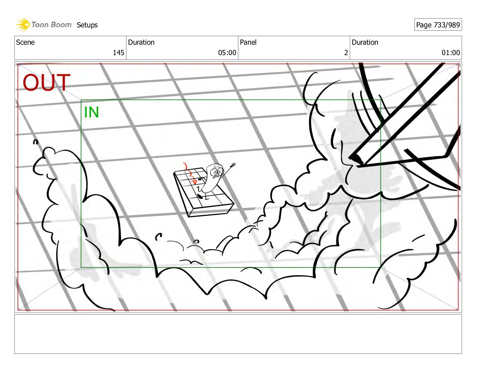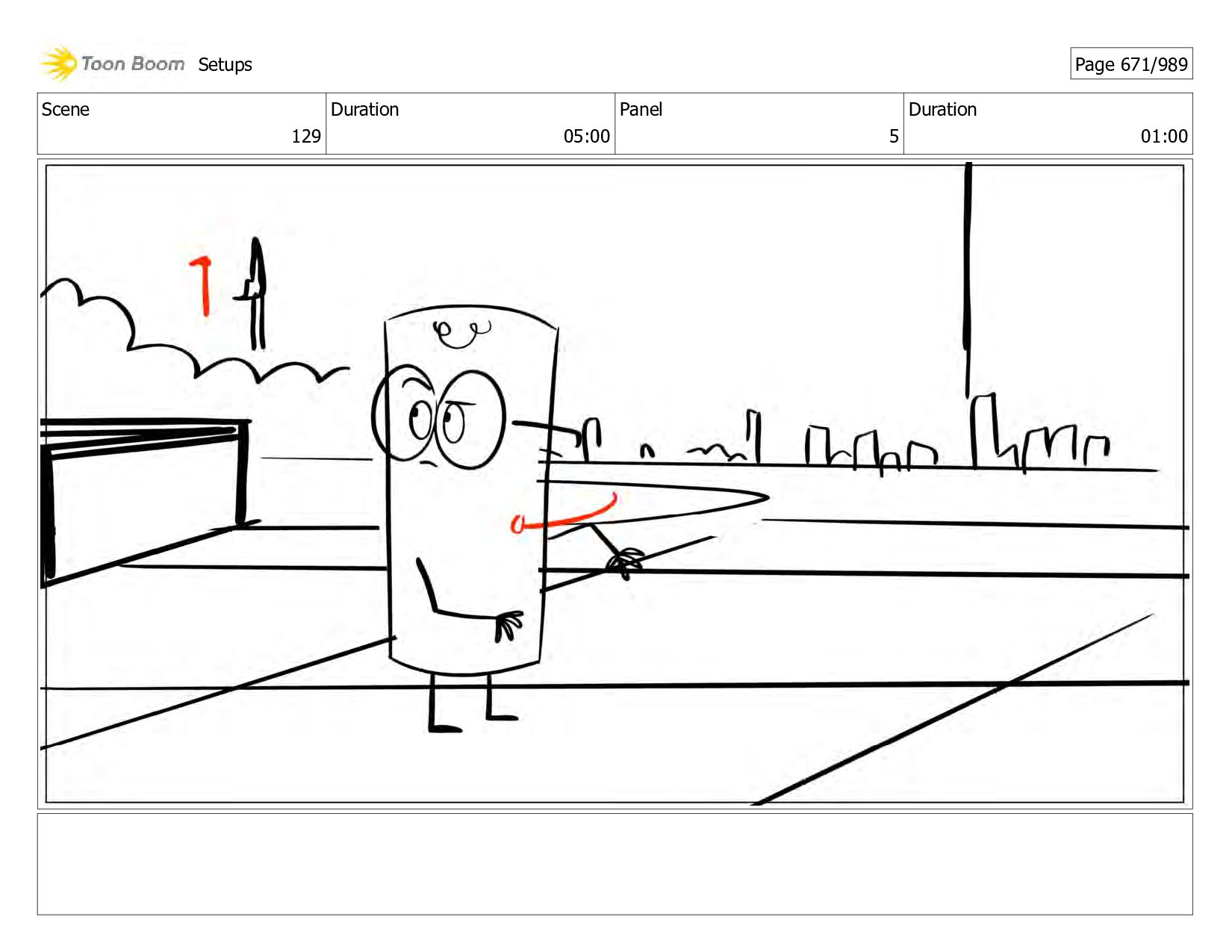 Scene 188 Duration 05:00 Panel 1 Duration 01:00 Setups Page