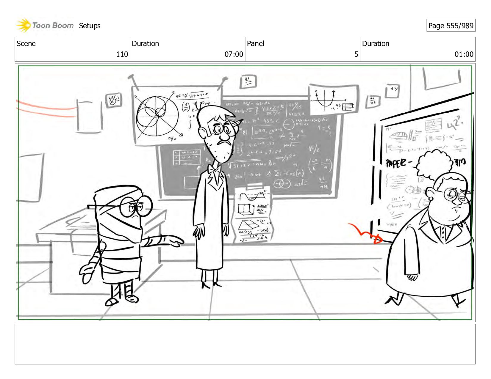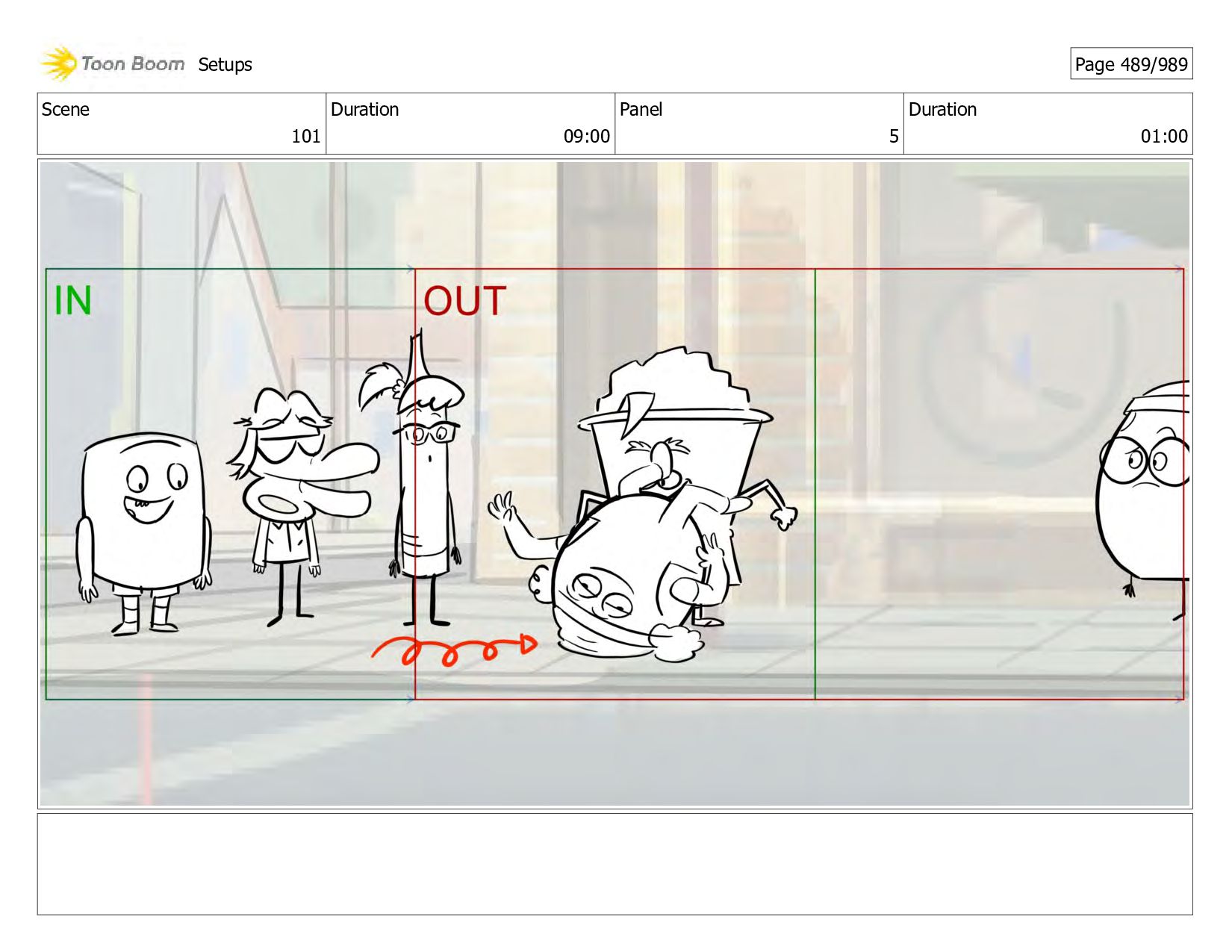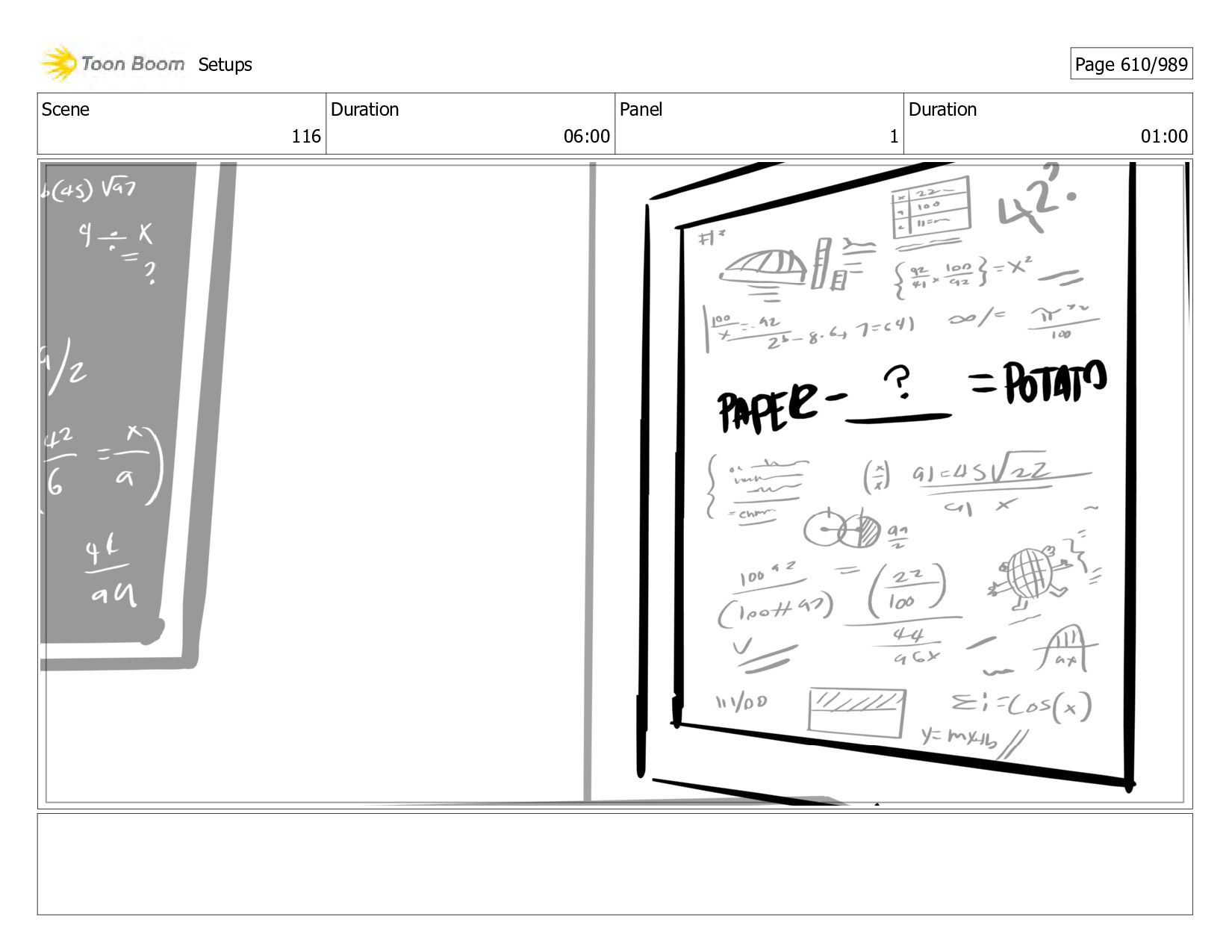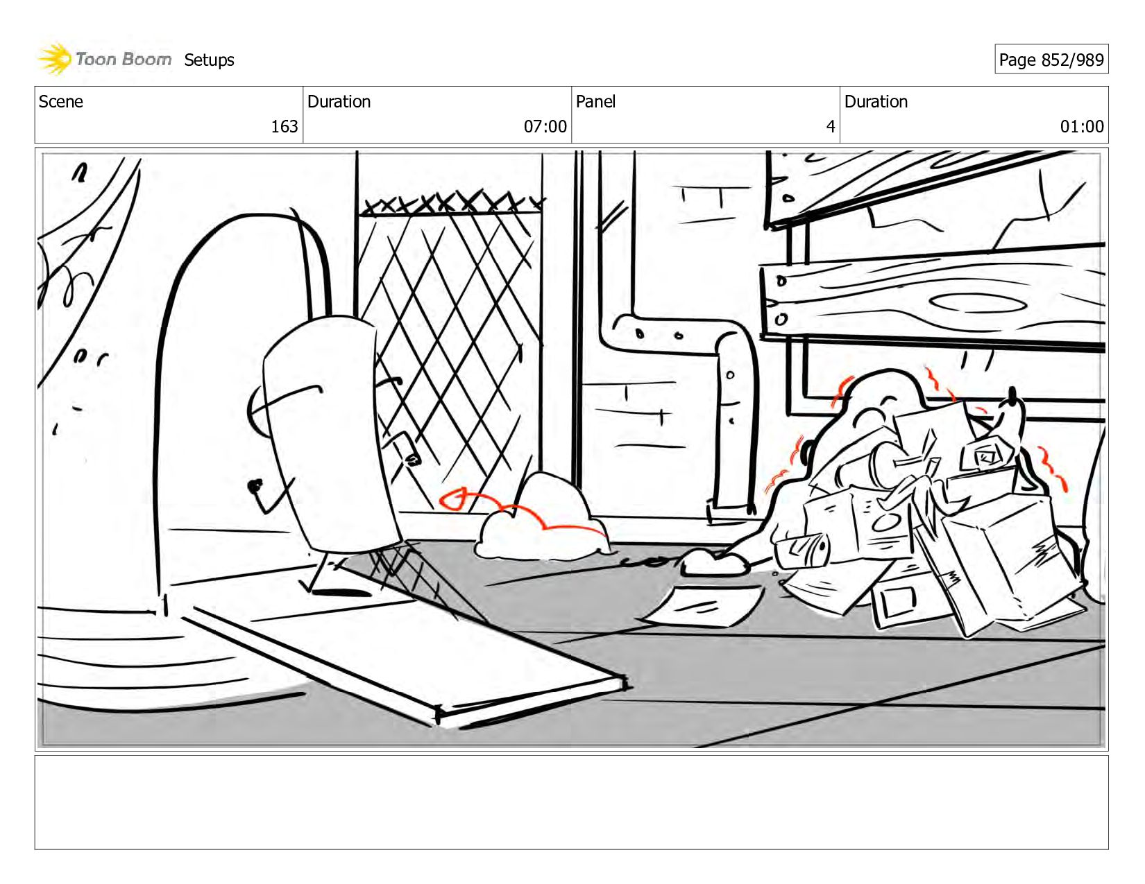 Scene 188 Duration 05:00 Panel 1 Duration 01:00 Setups Page