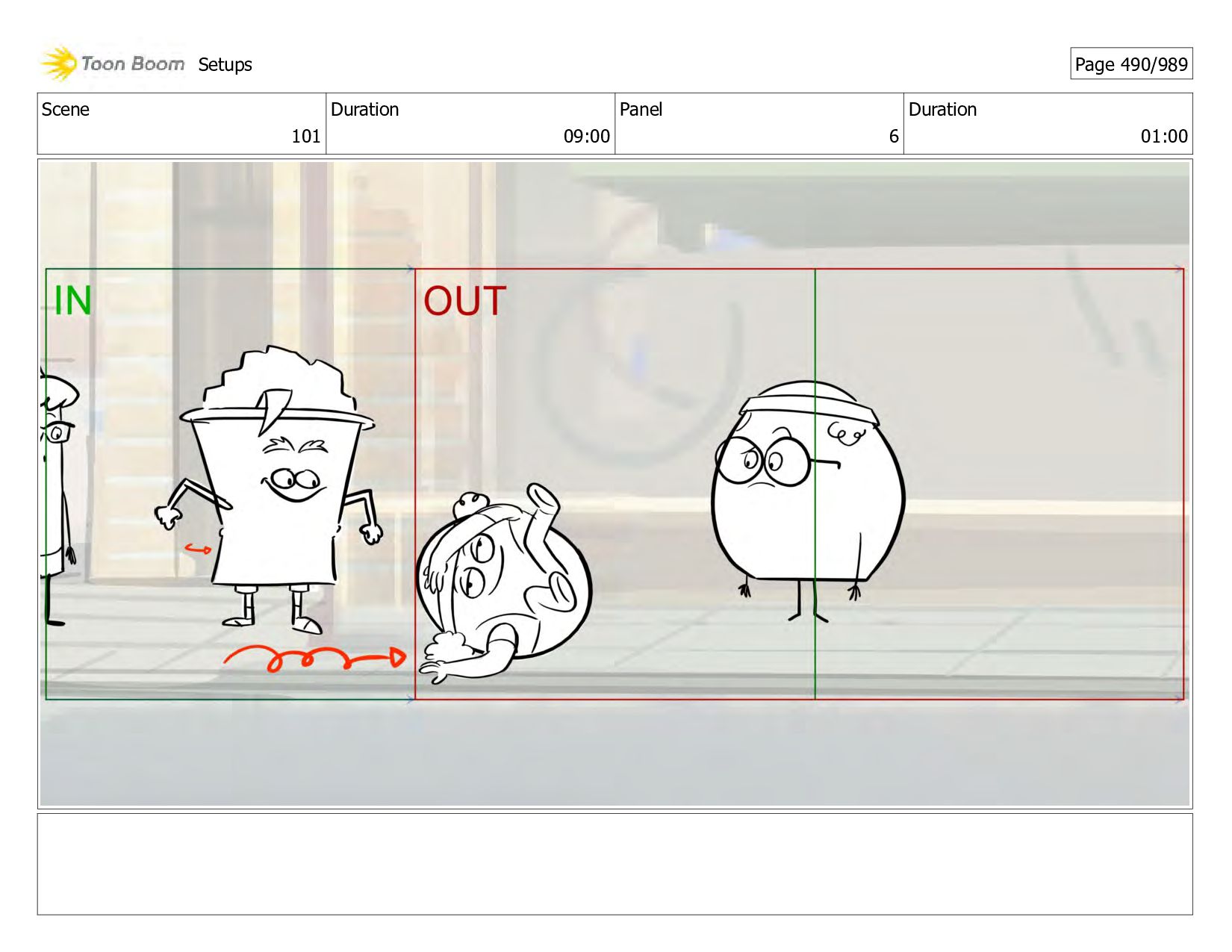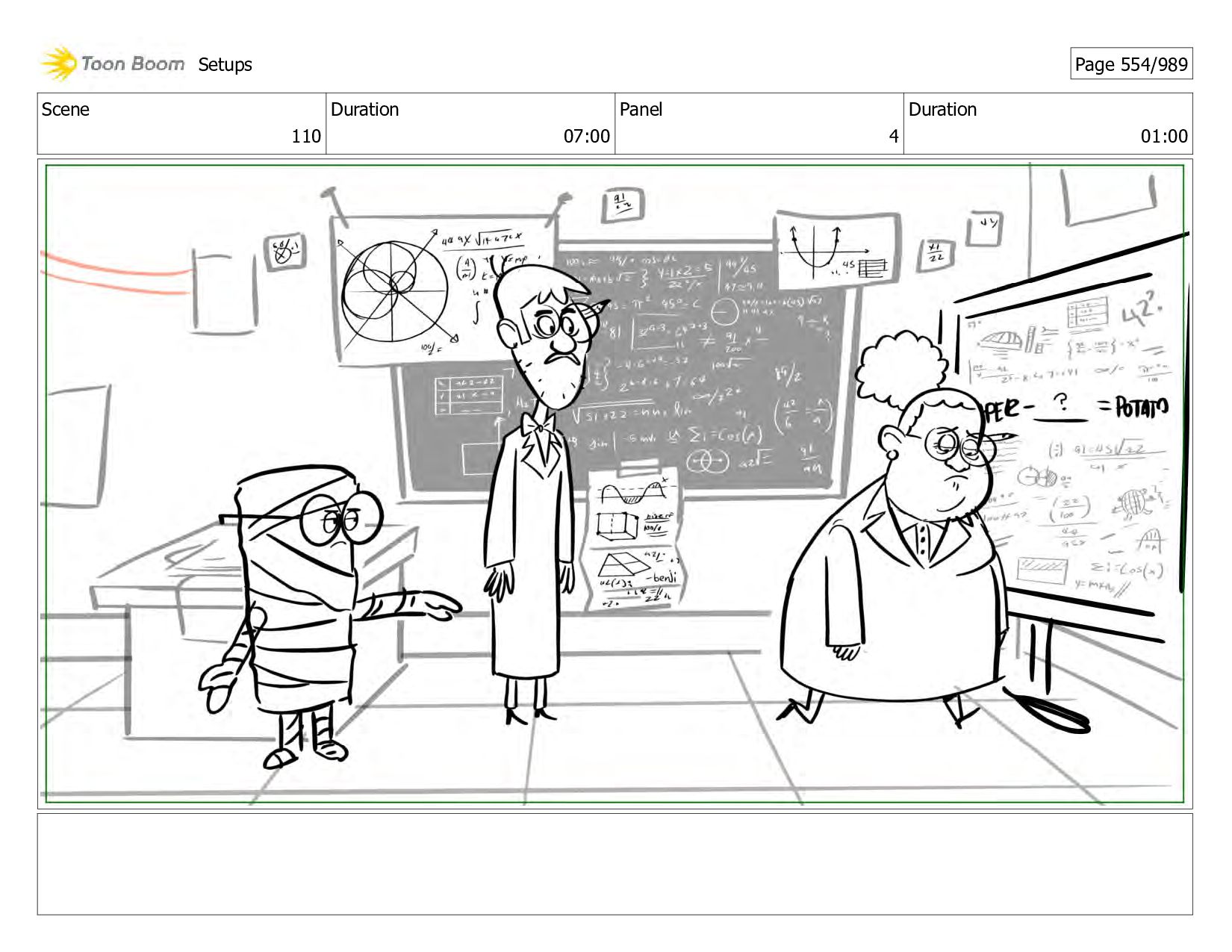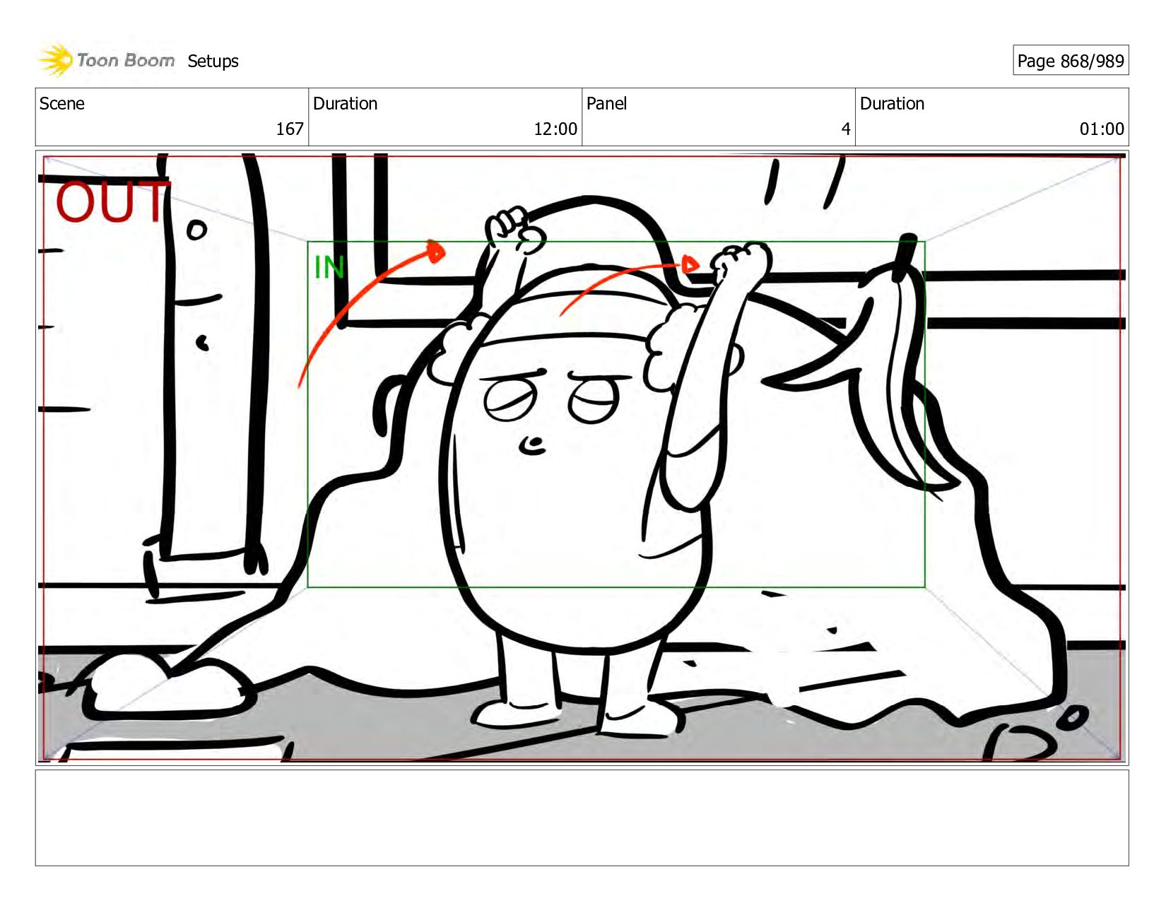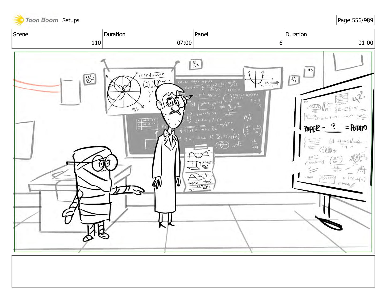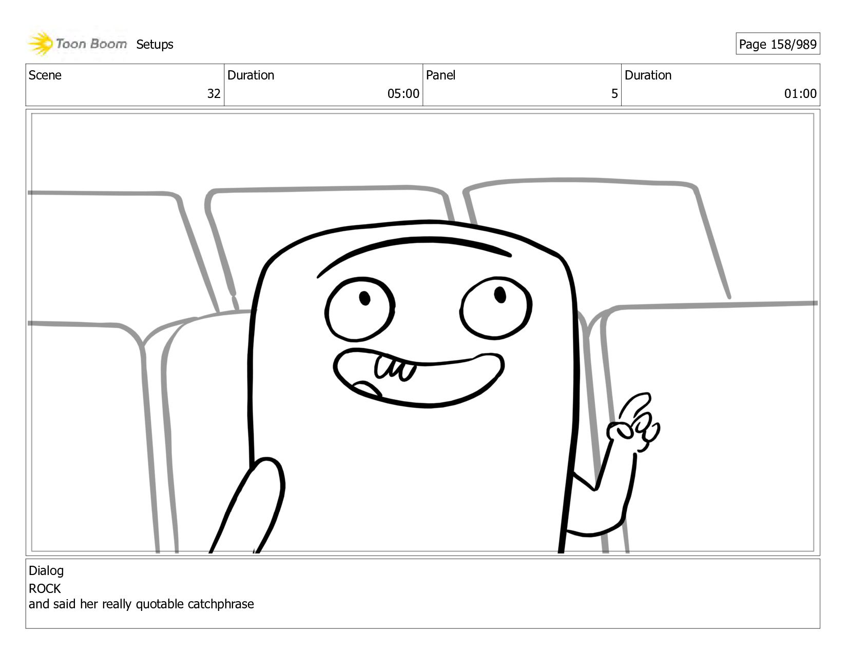 Scene 188 Duration 05:00 Panel 1 Duration 01:00 Setups Page