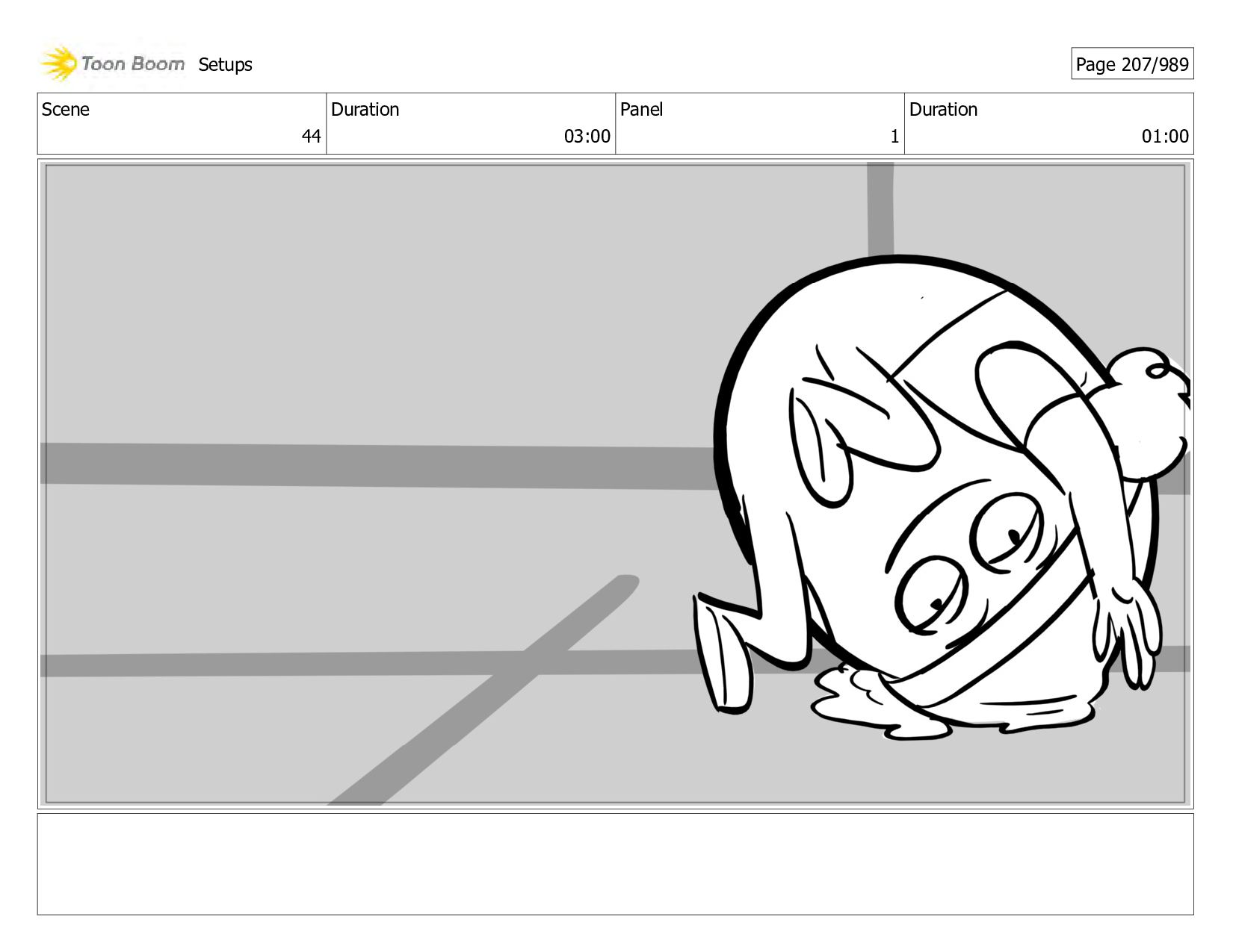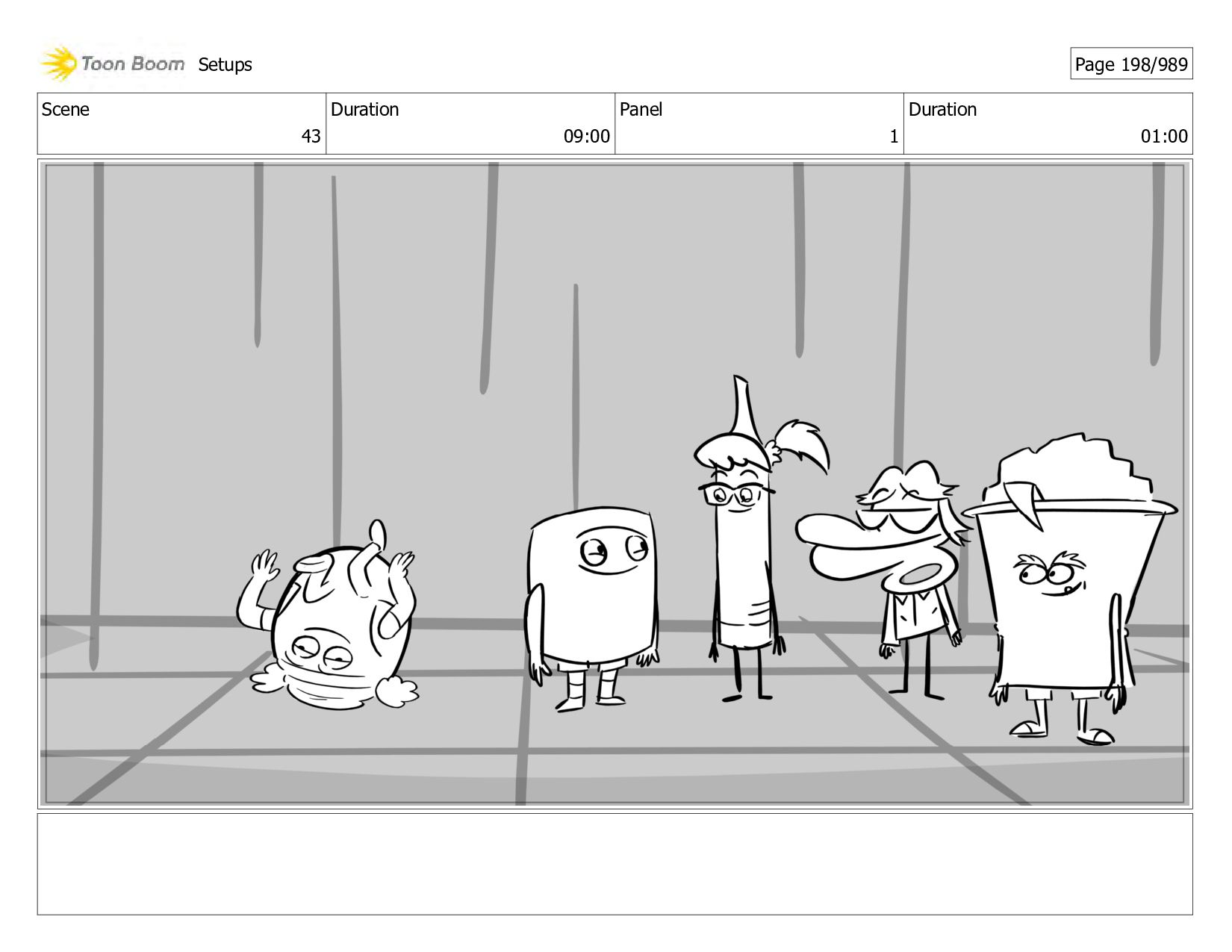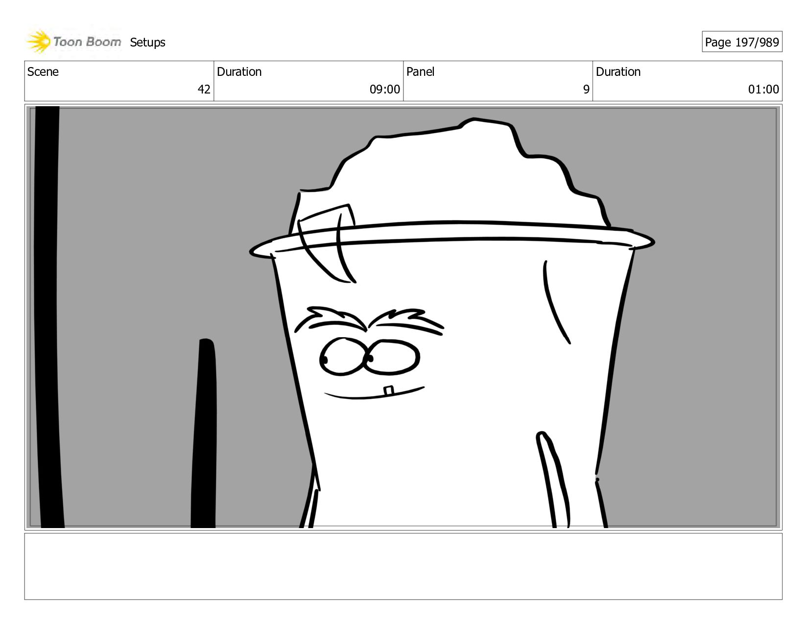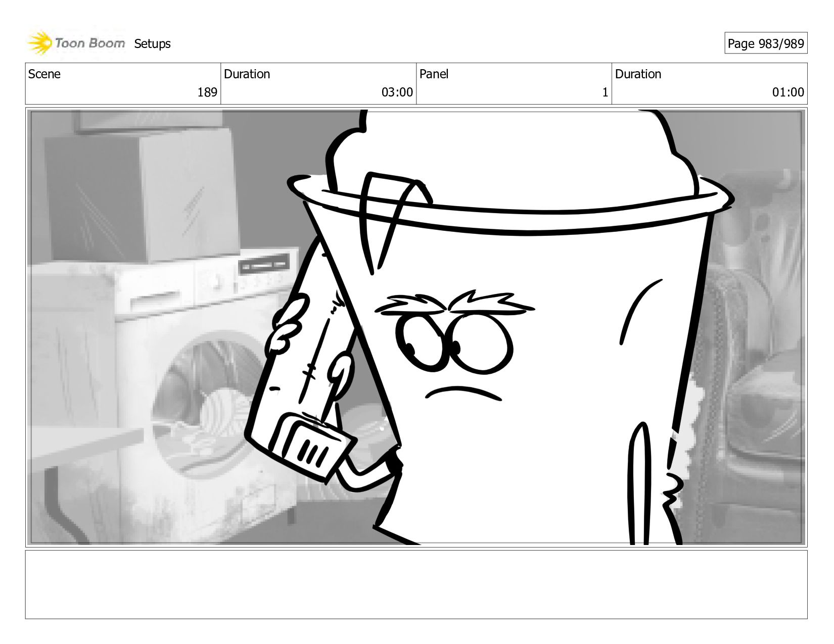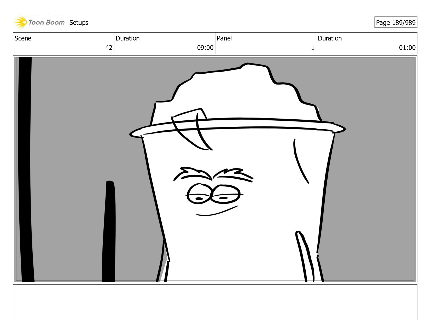 Scene 189 Duration 03:00 Panel 1 Duration 01:00 Setups Page