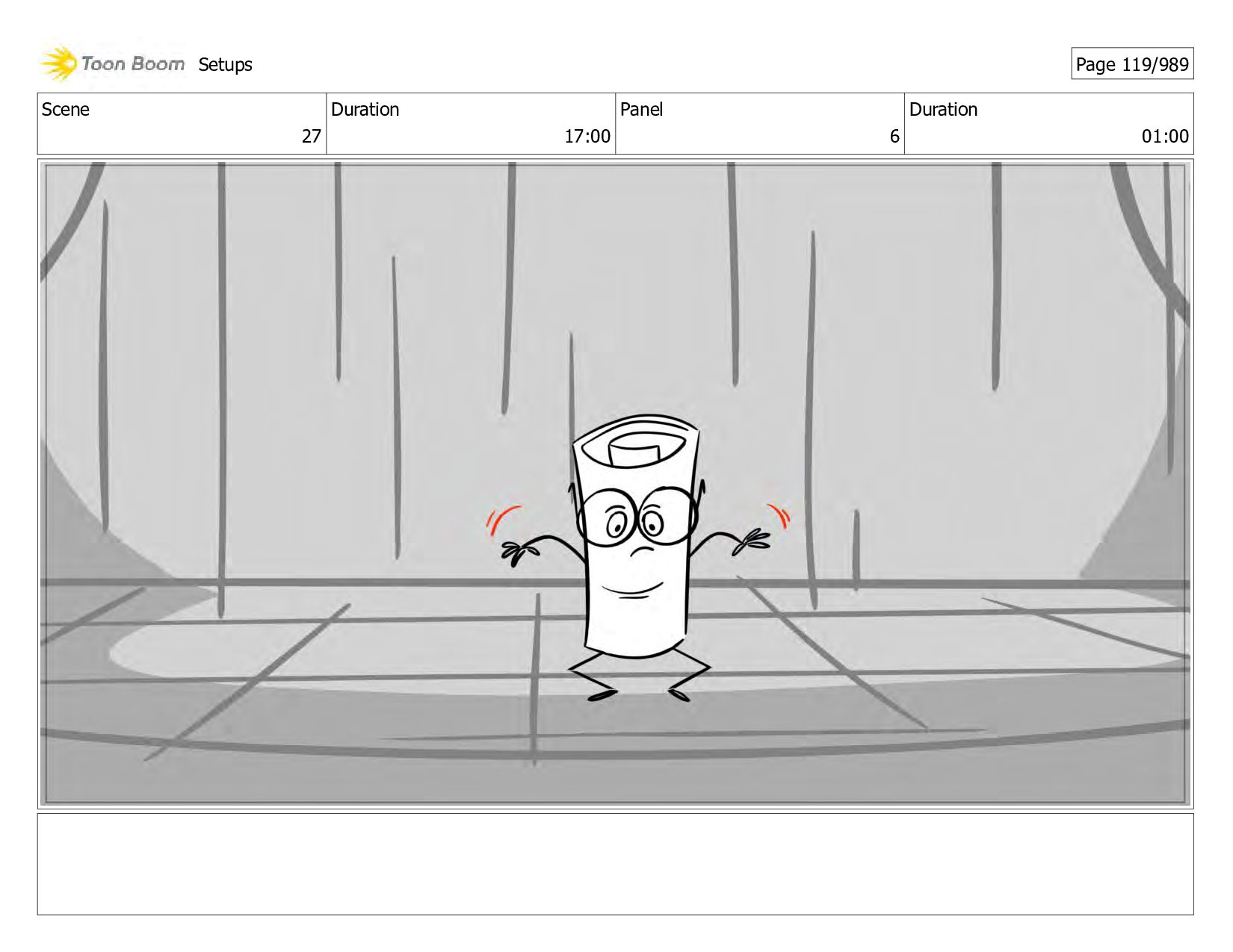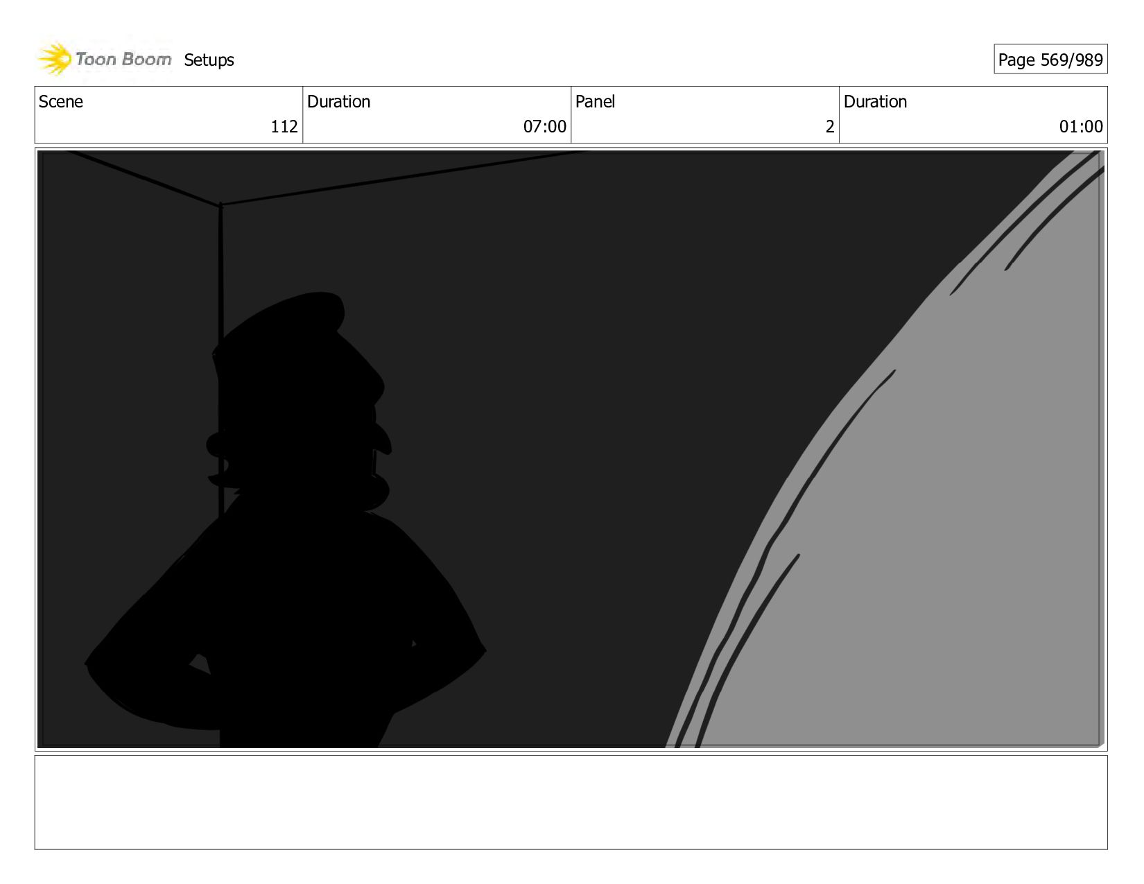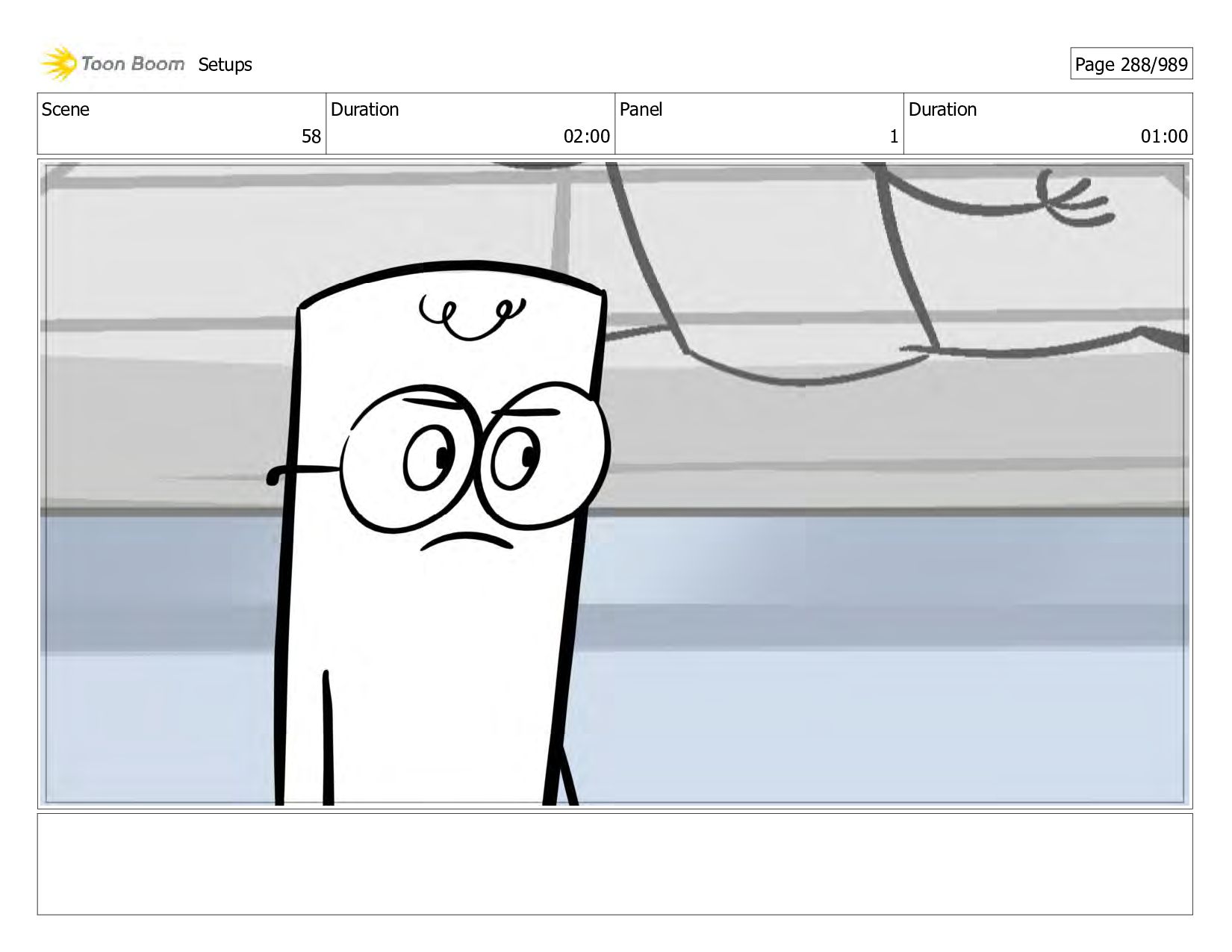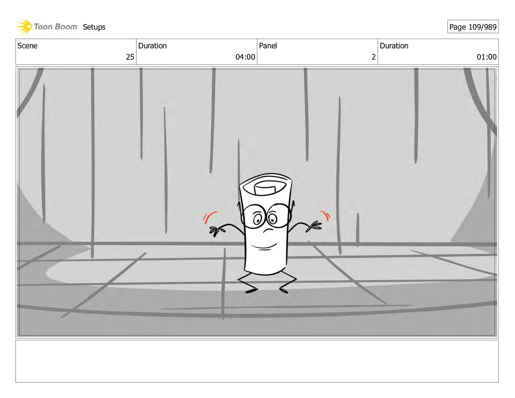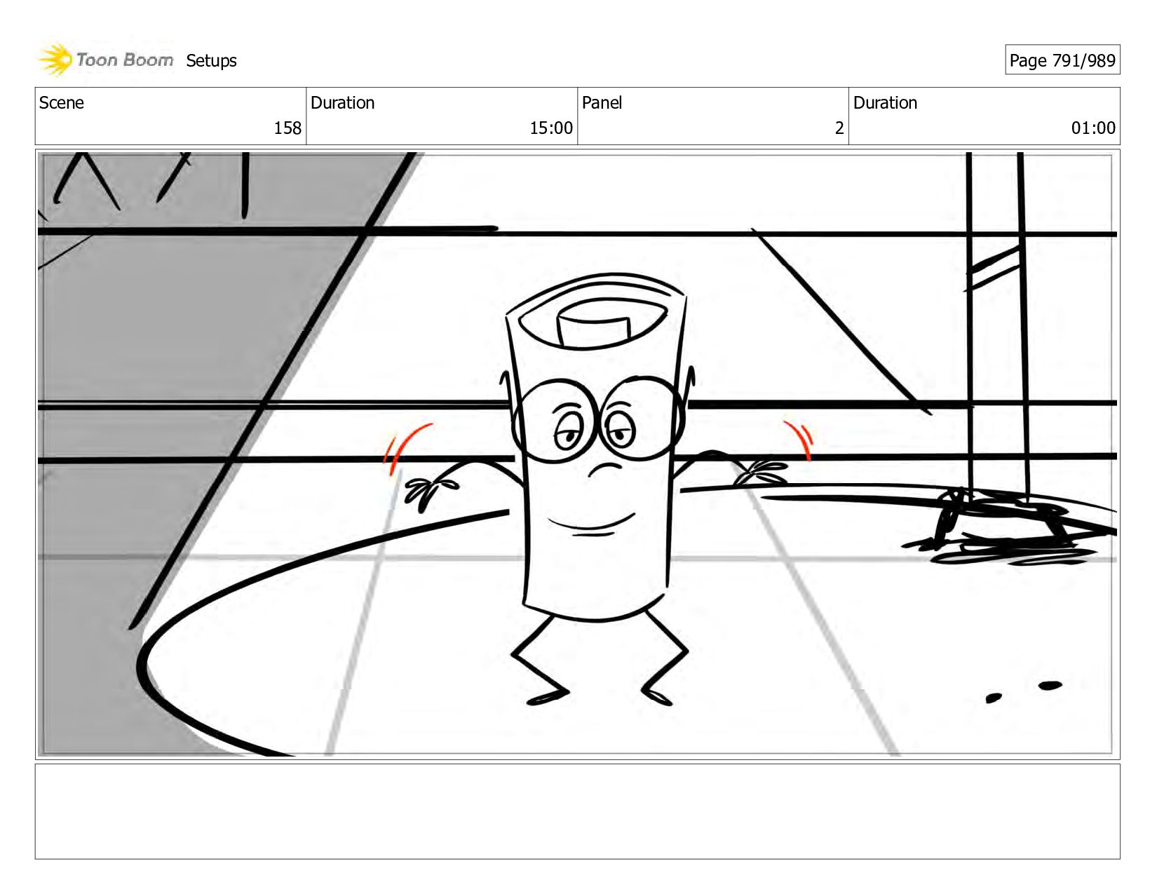 Scene 189 Duration 03:00 Panel 1 Duration 01:00 Setups Page