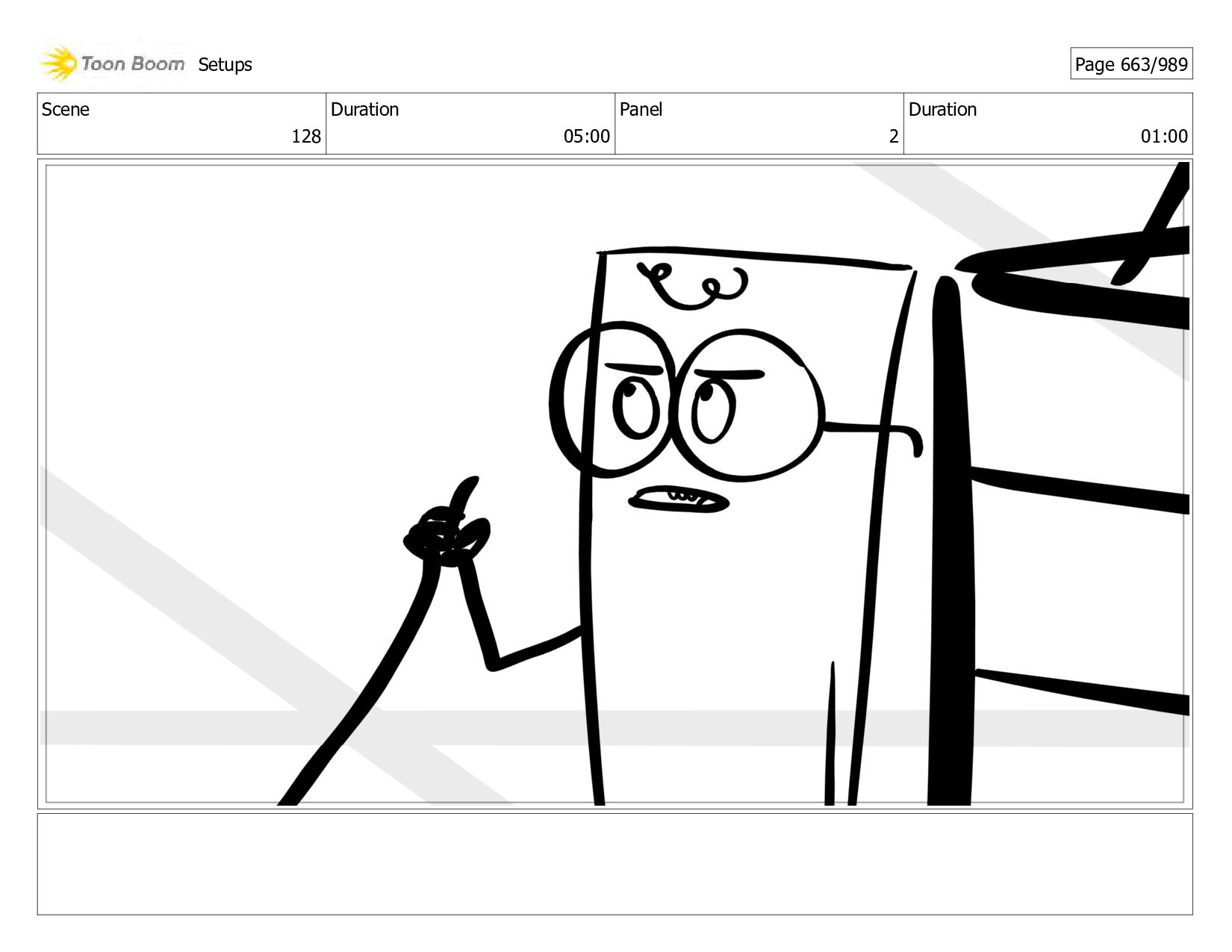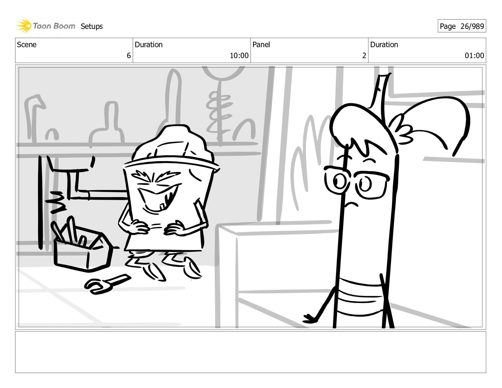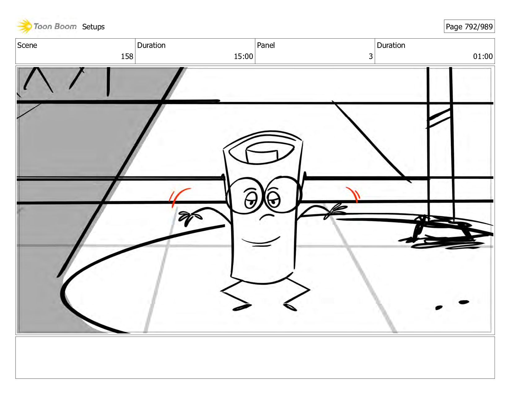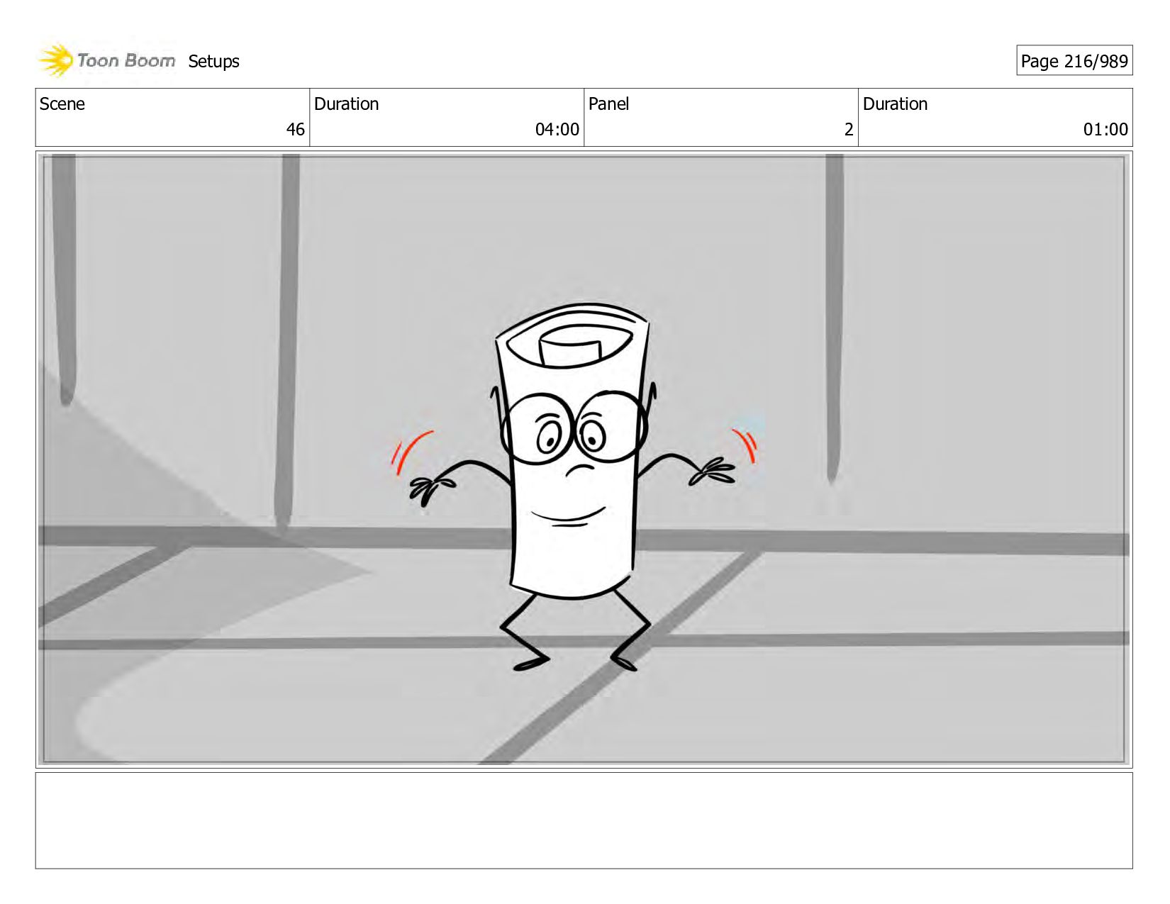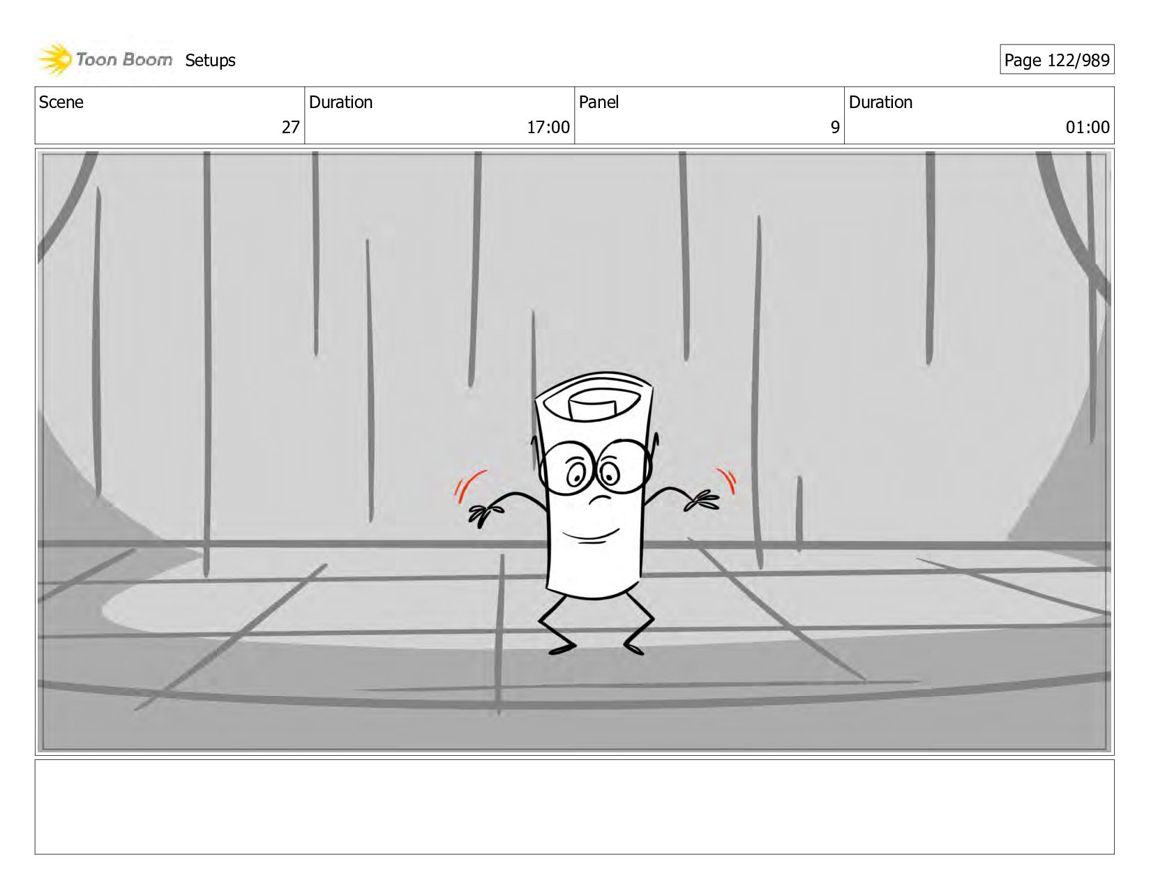 Scene 189 Duration 03:00 Panel 1 Duration 01:00 Setups Page