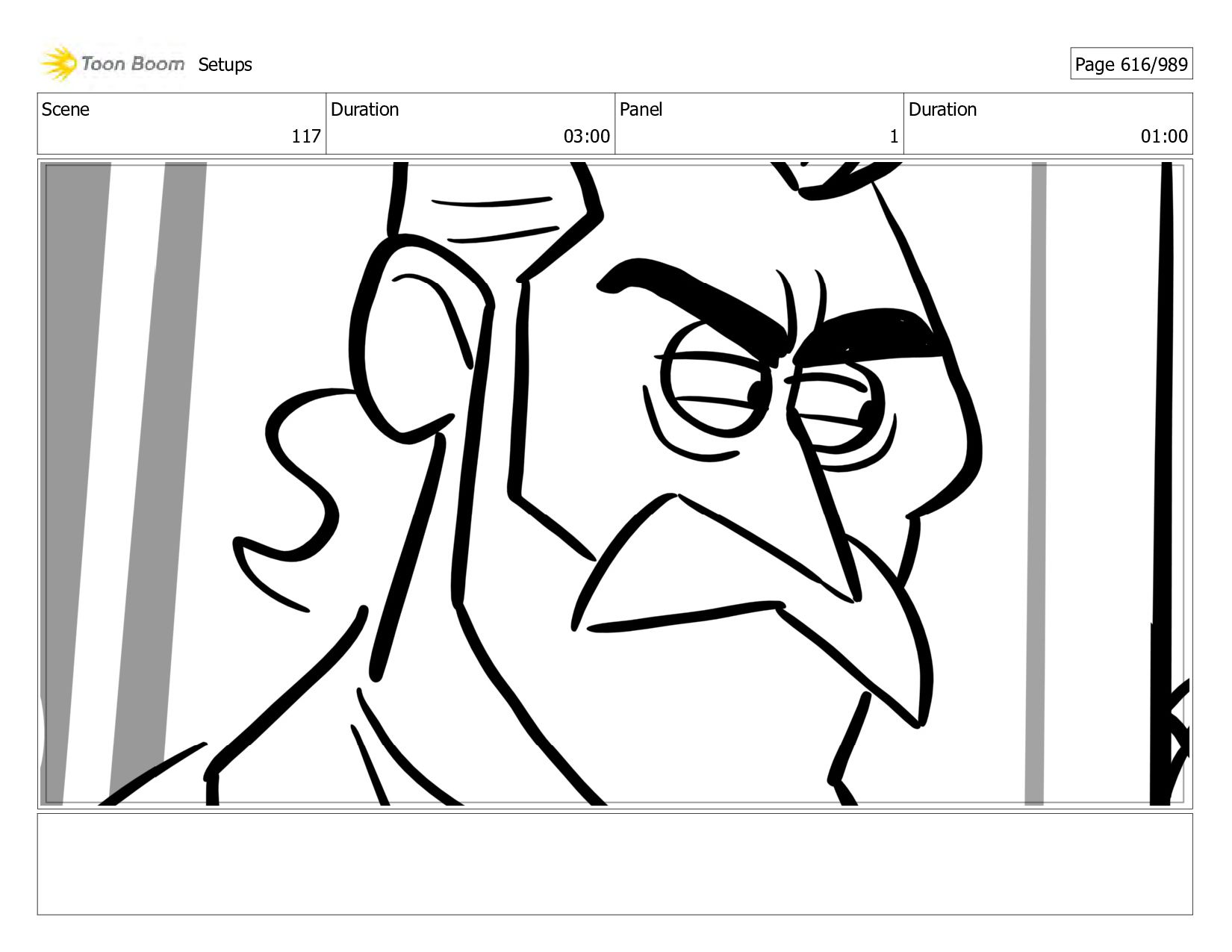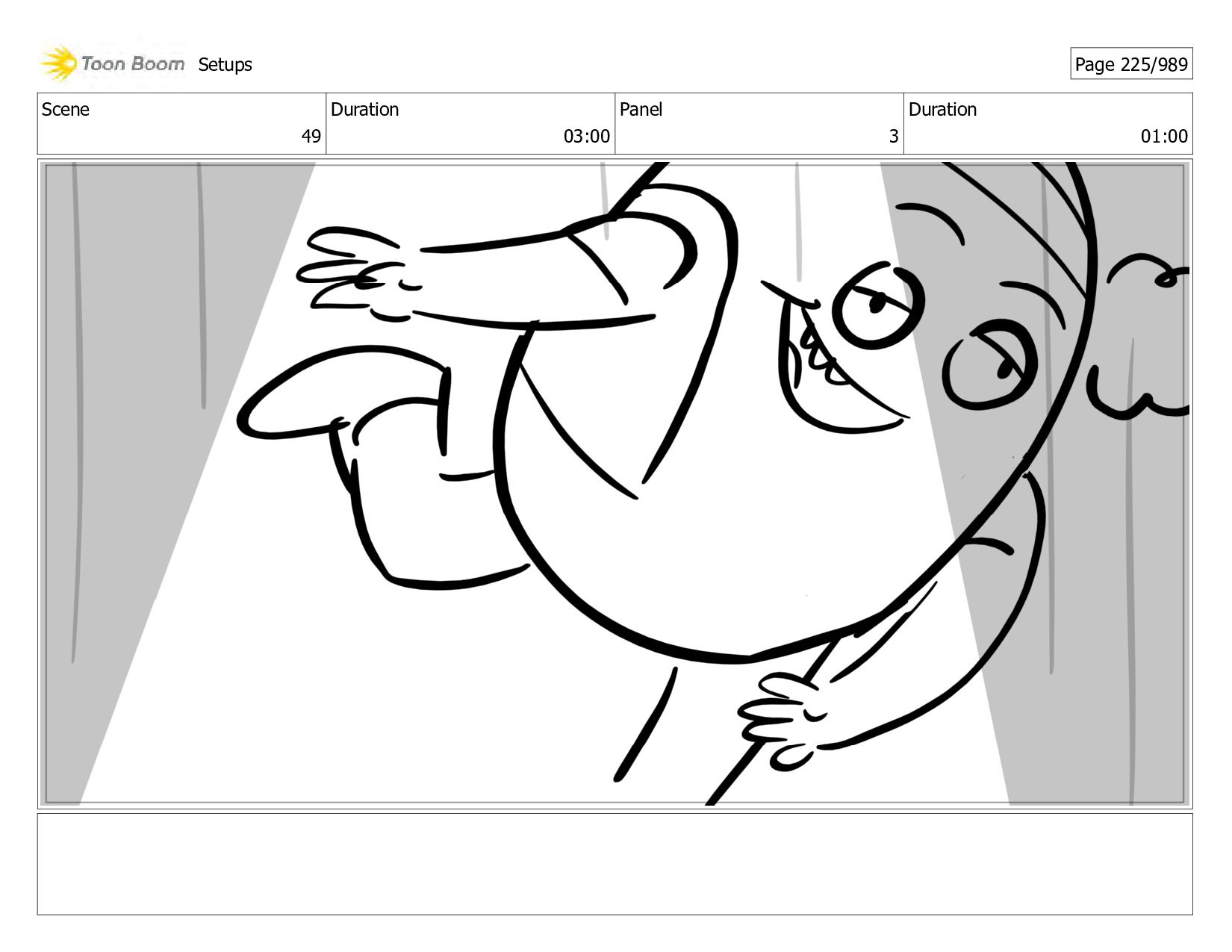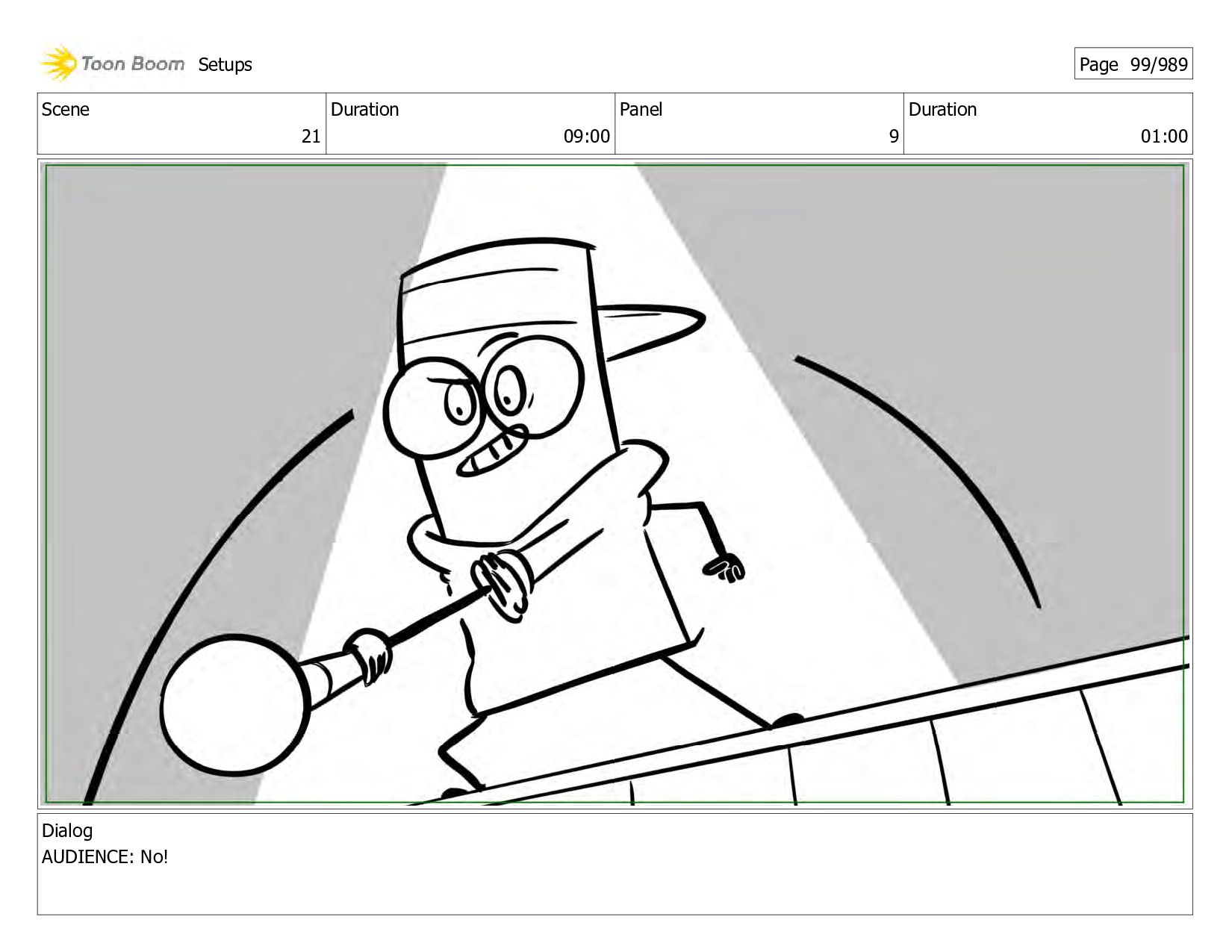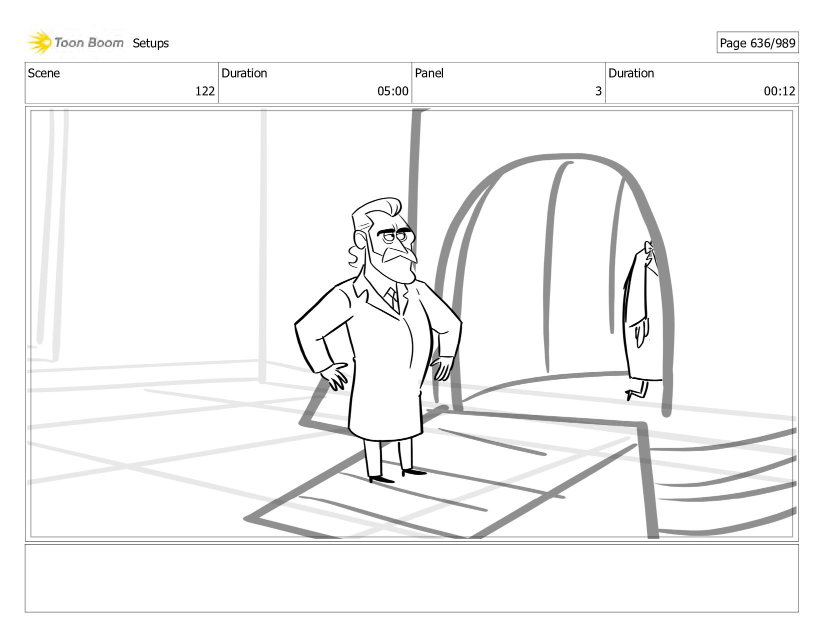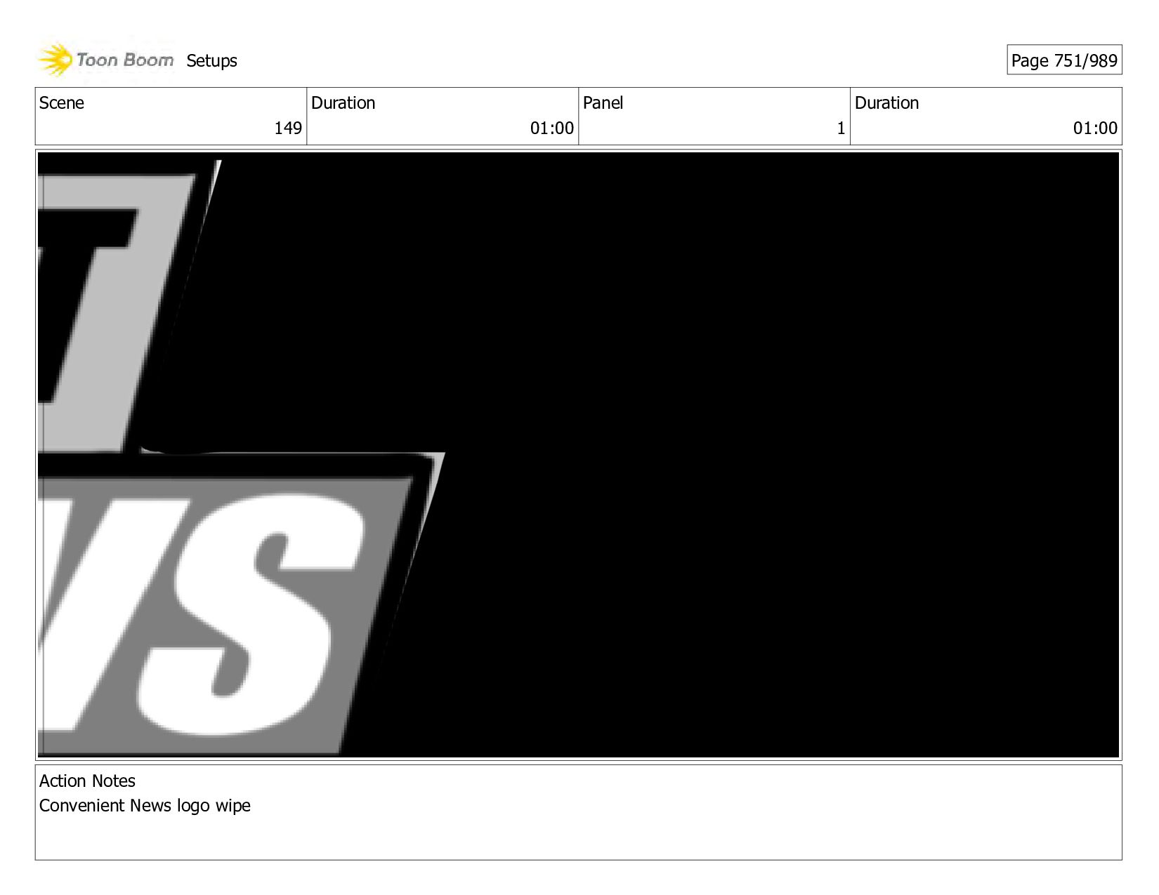 Scene 189 Duration 03:00 Panel 1 Duration 01:00 Setups Page