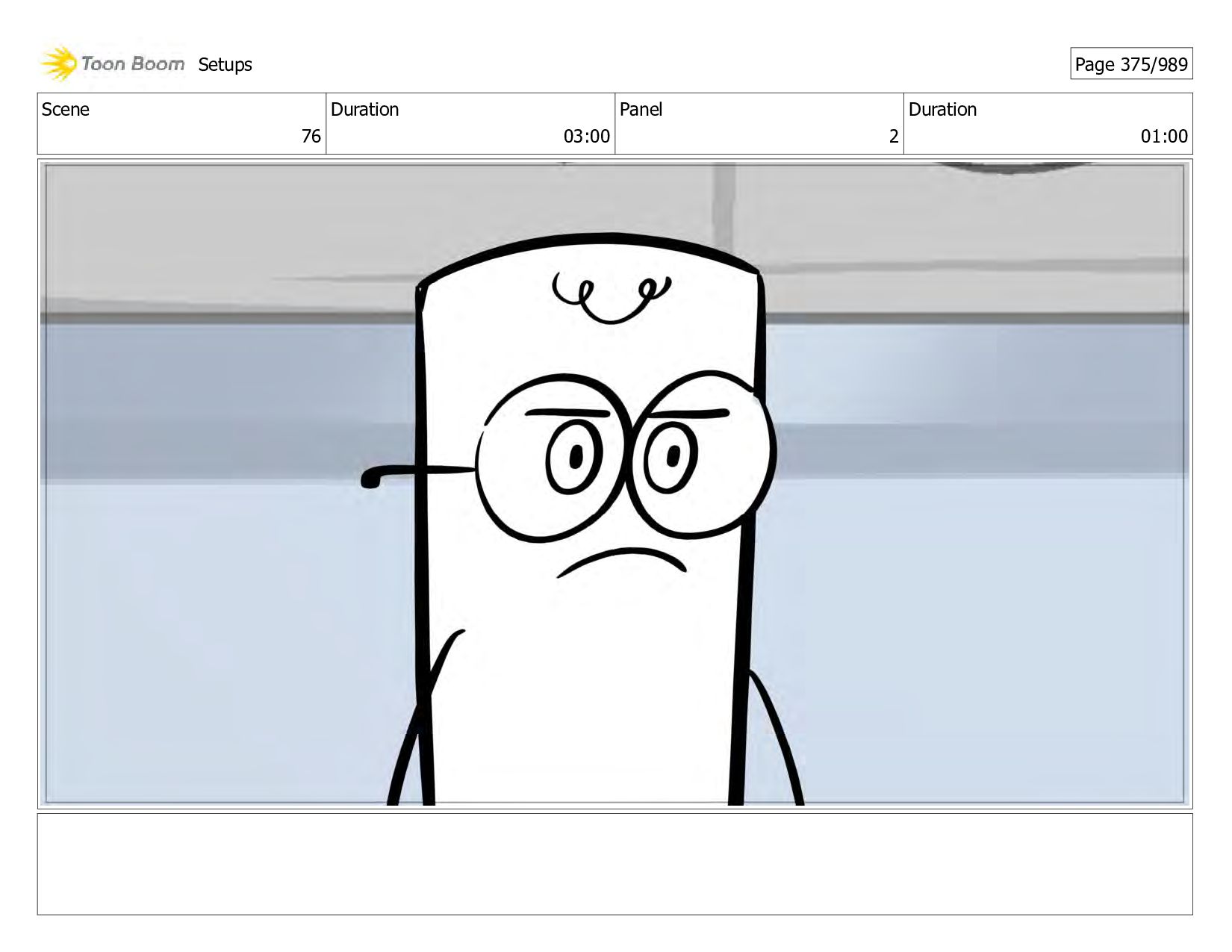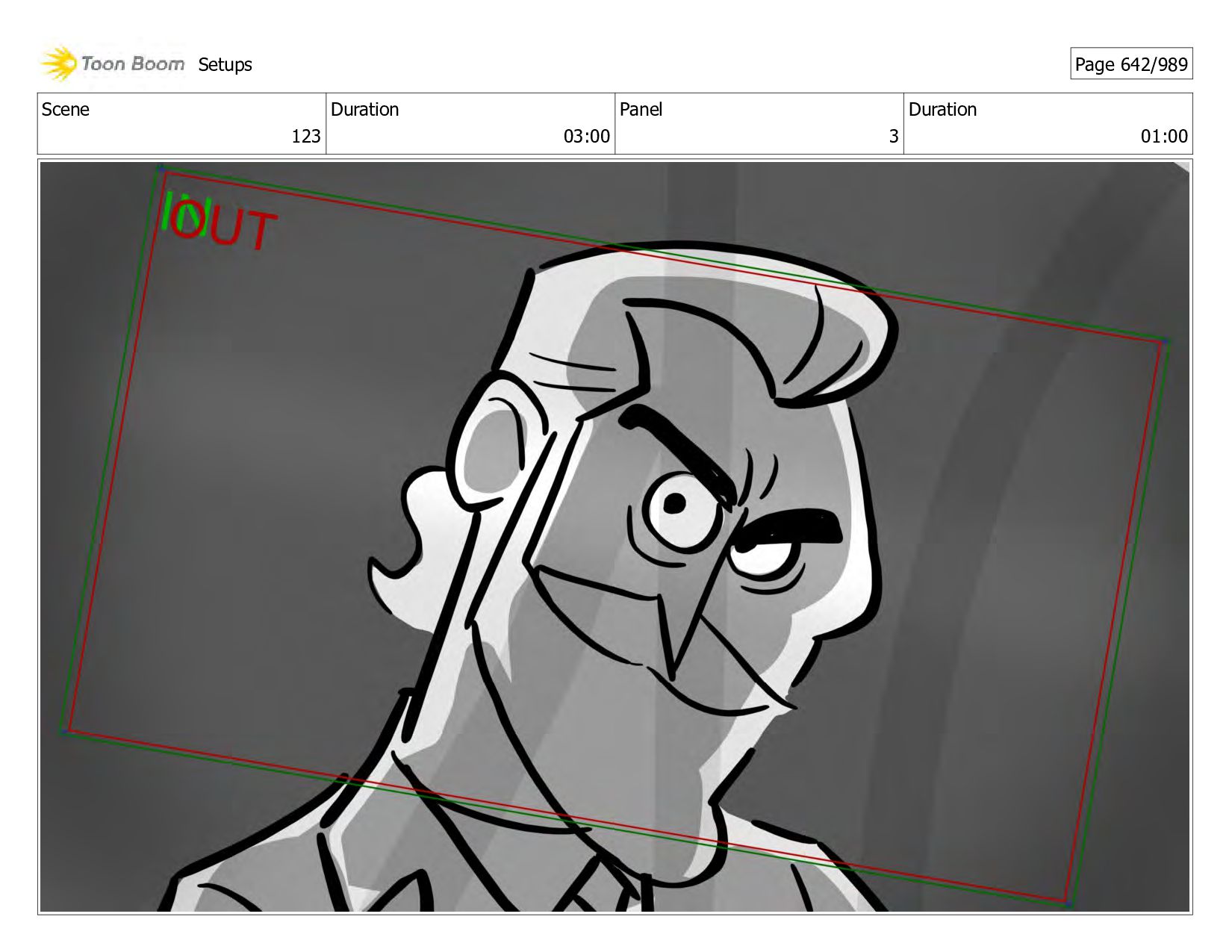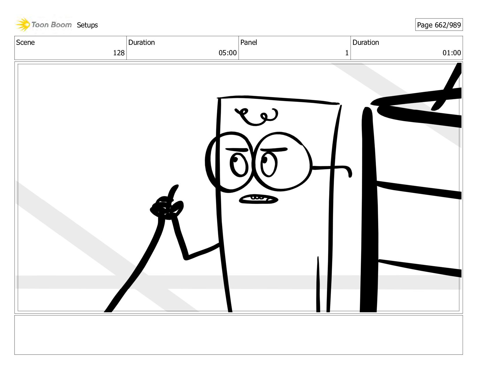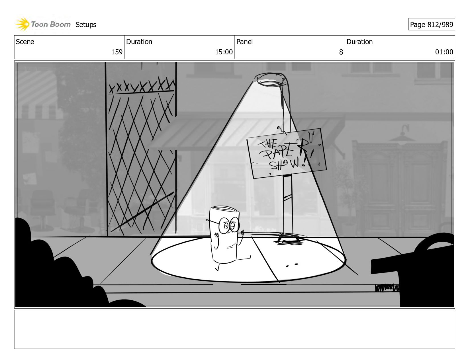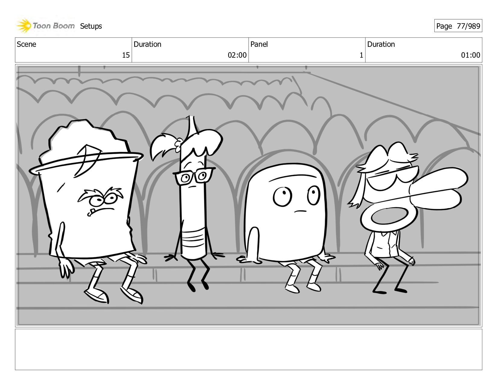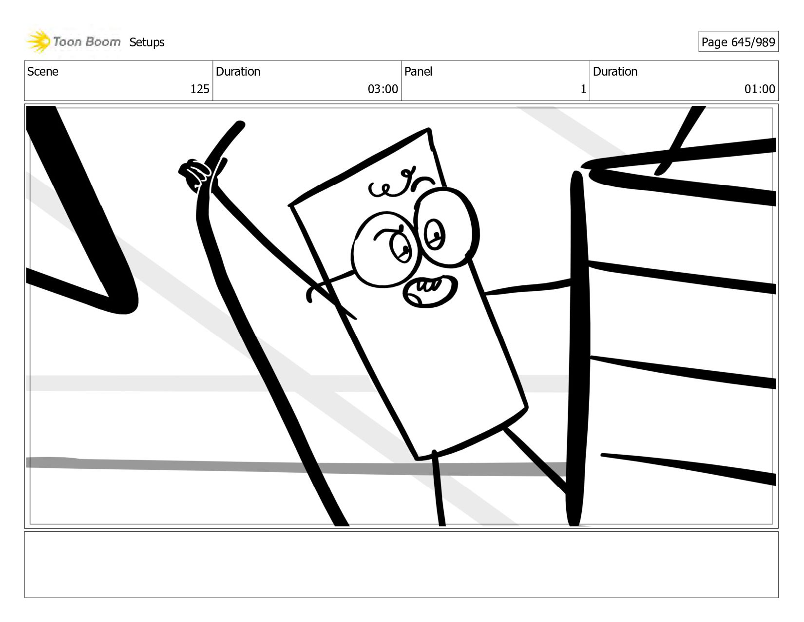 Scene 189 Duration 03:00 Panel 1 Duration 01:00 Setups Page