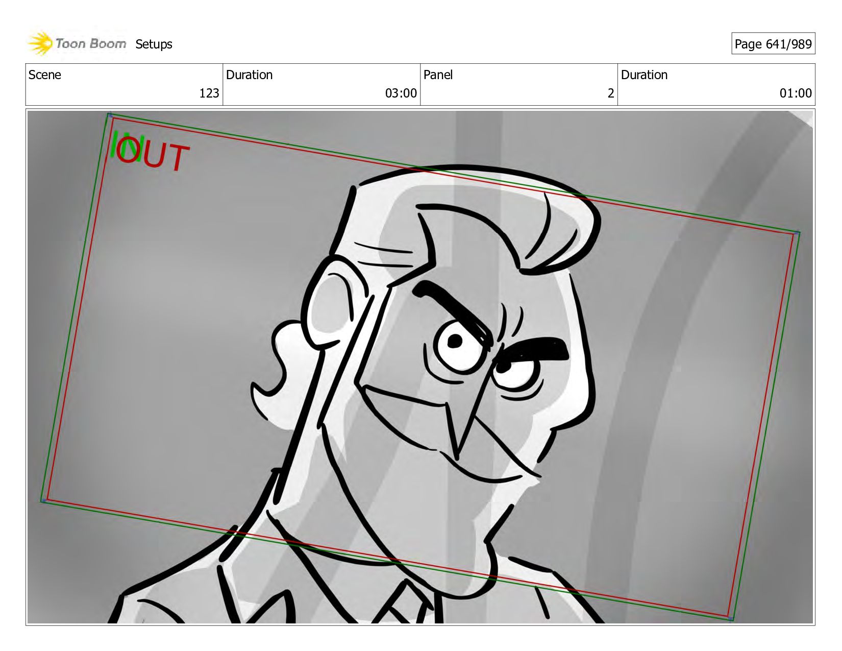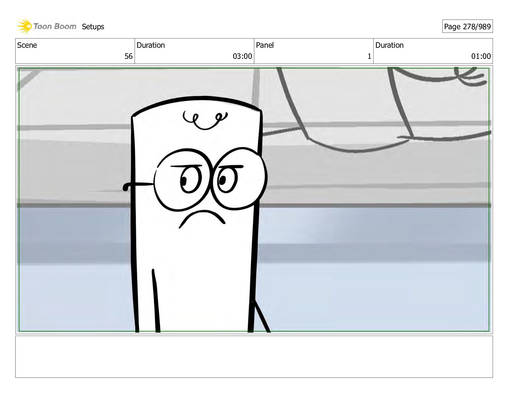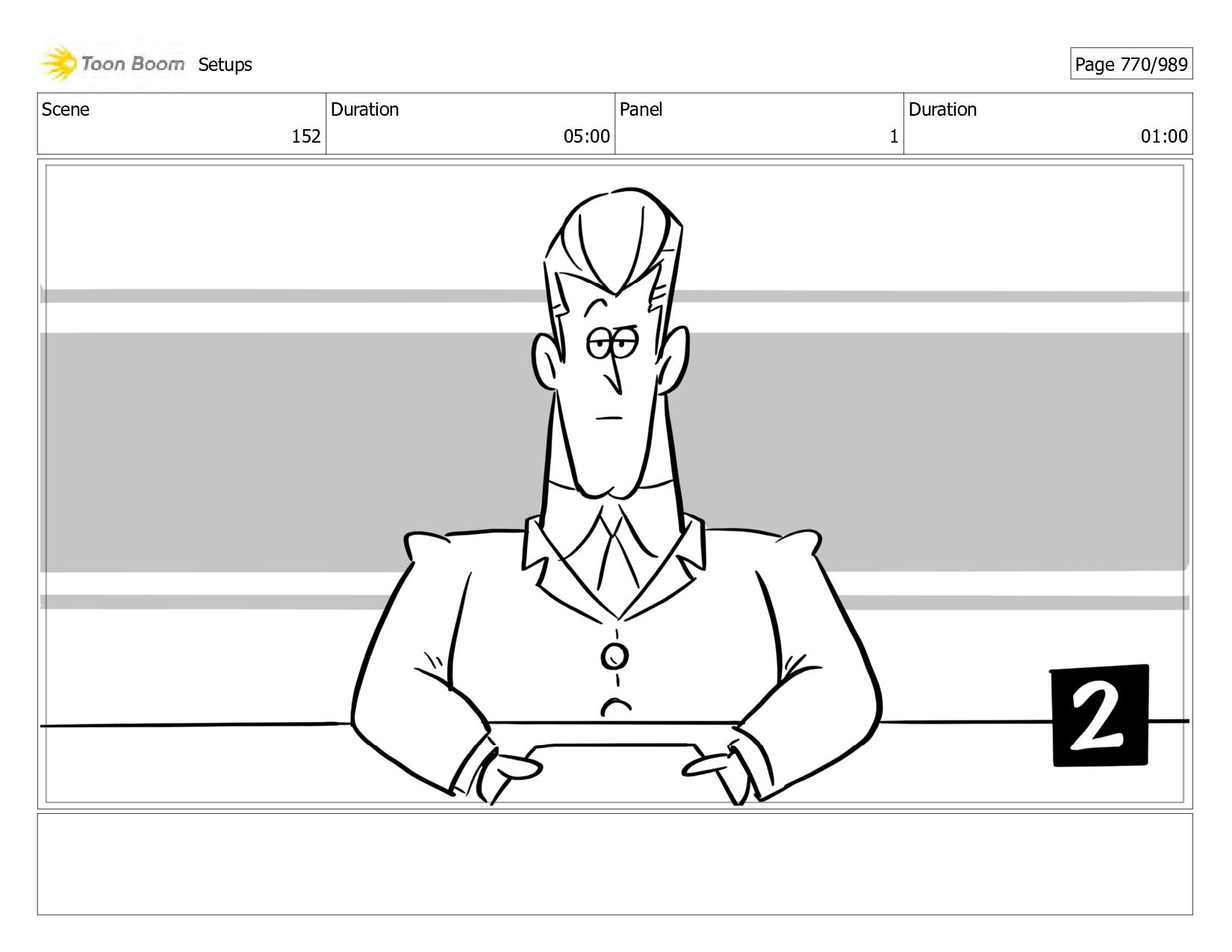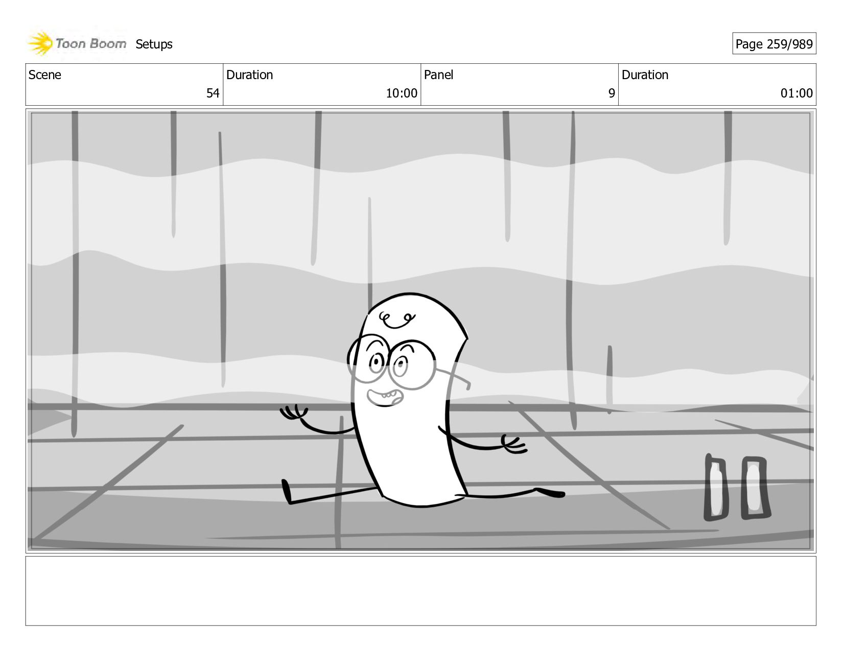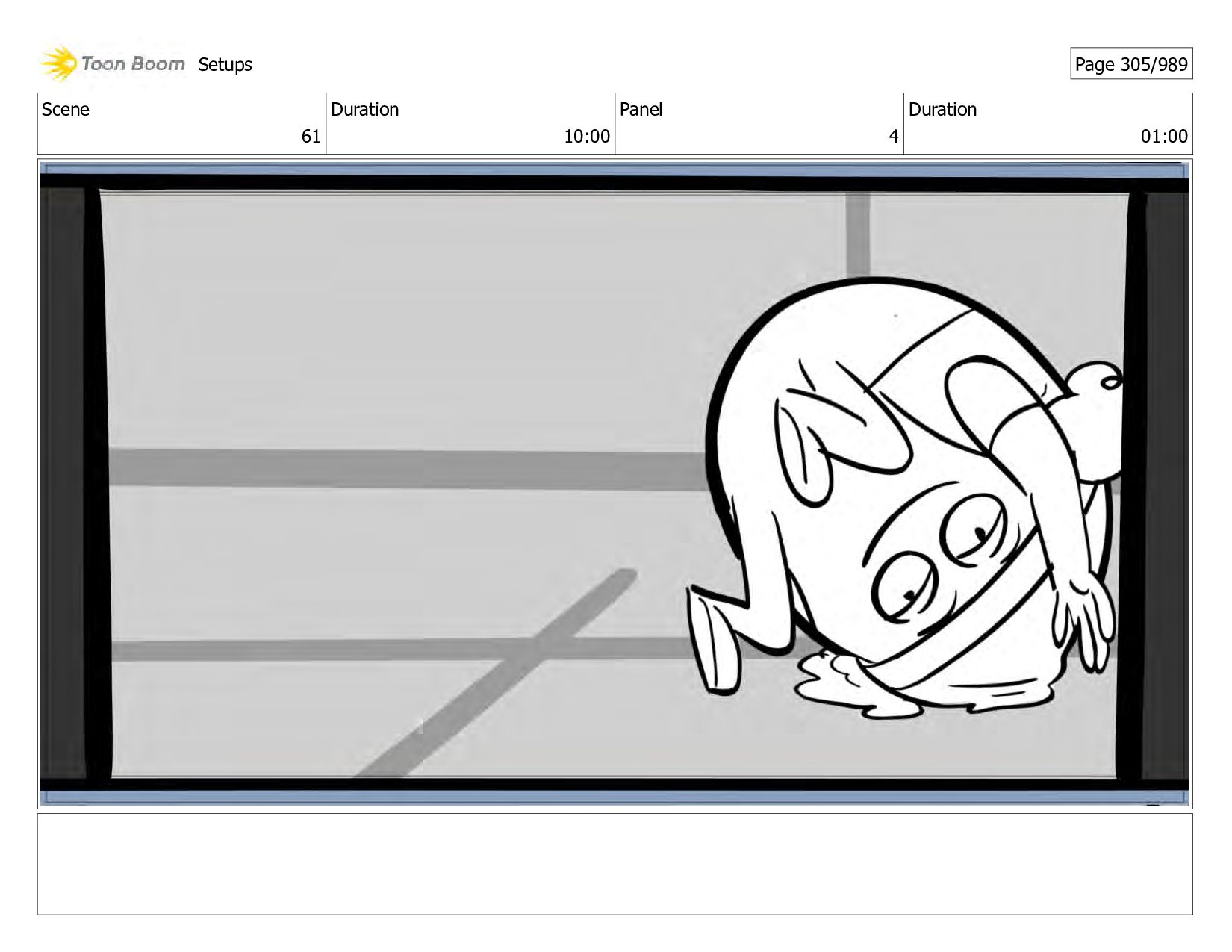 Scene 189 Duration 03:00 Panel 1 Duration 01:00 Setups Page