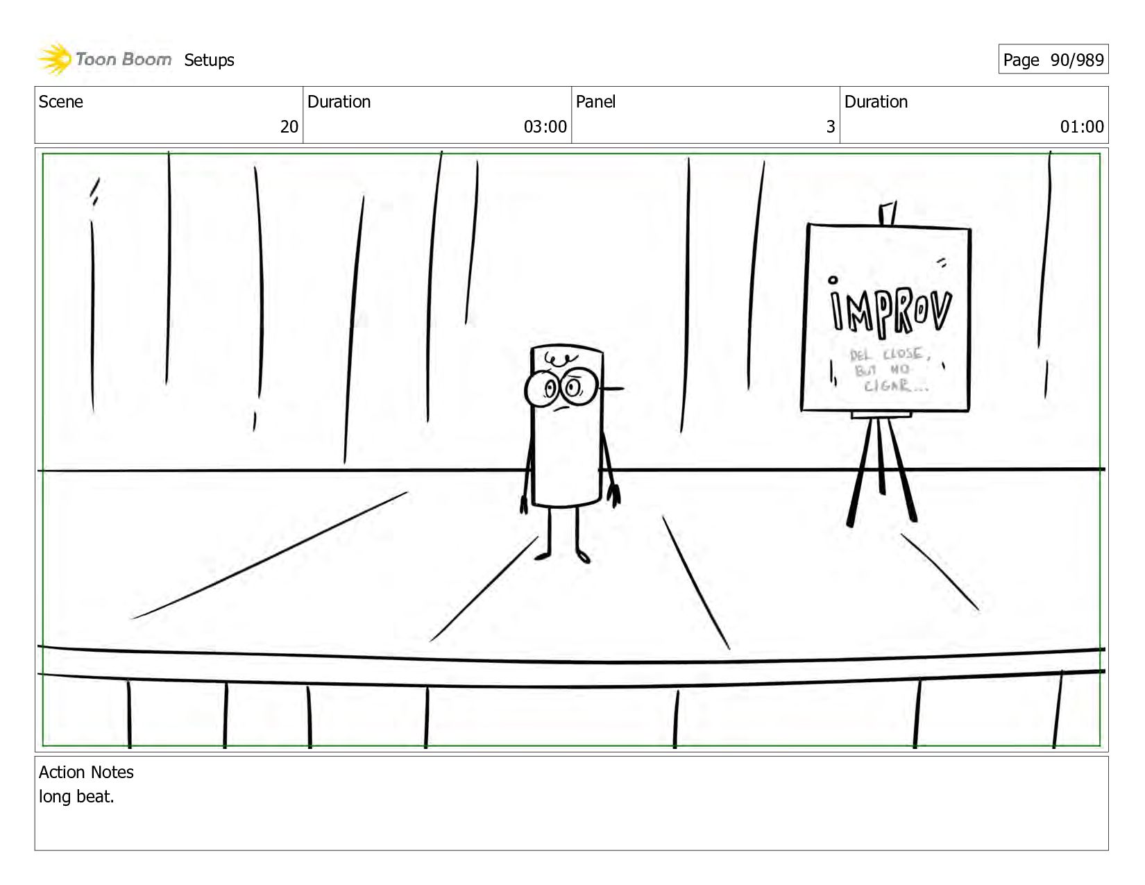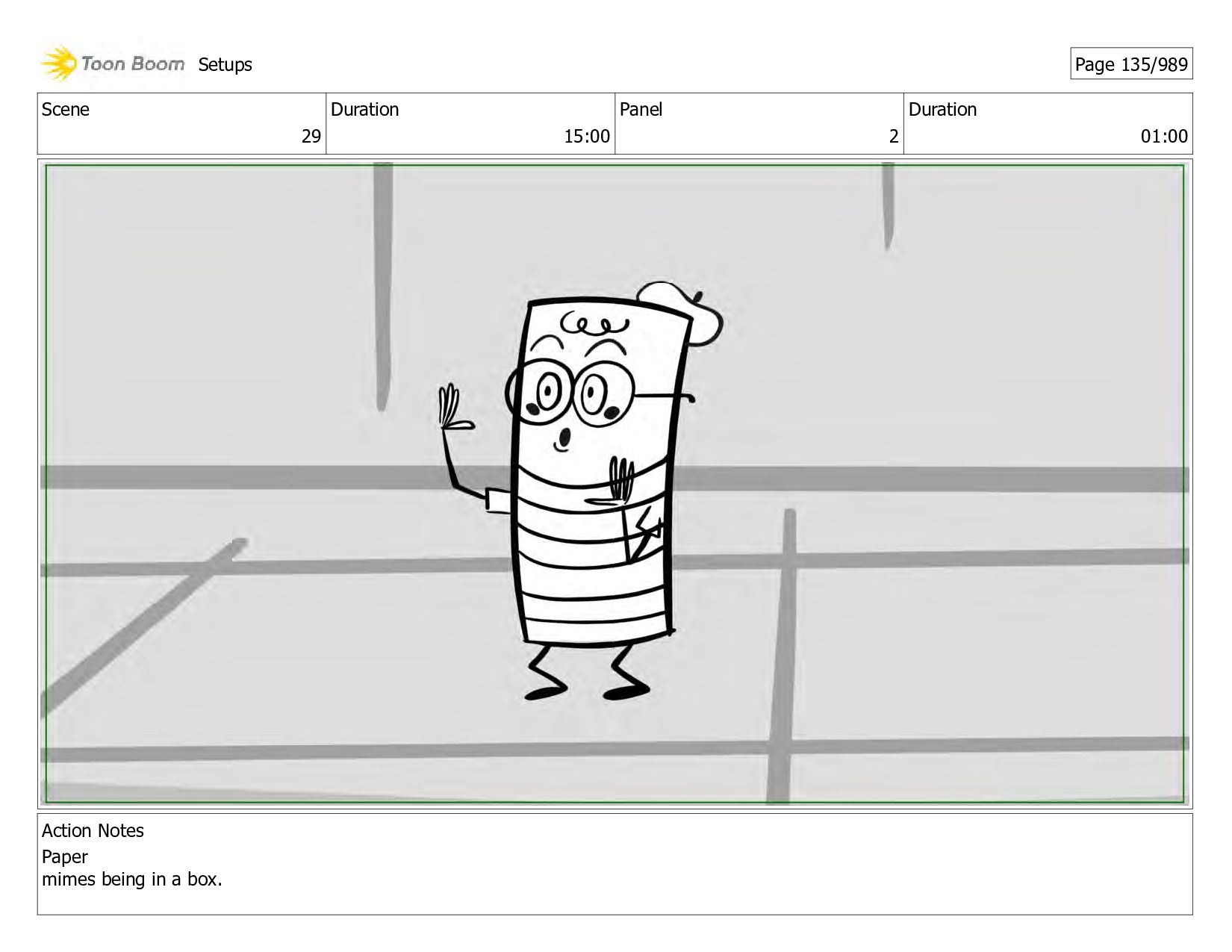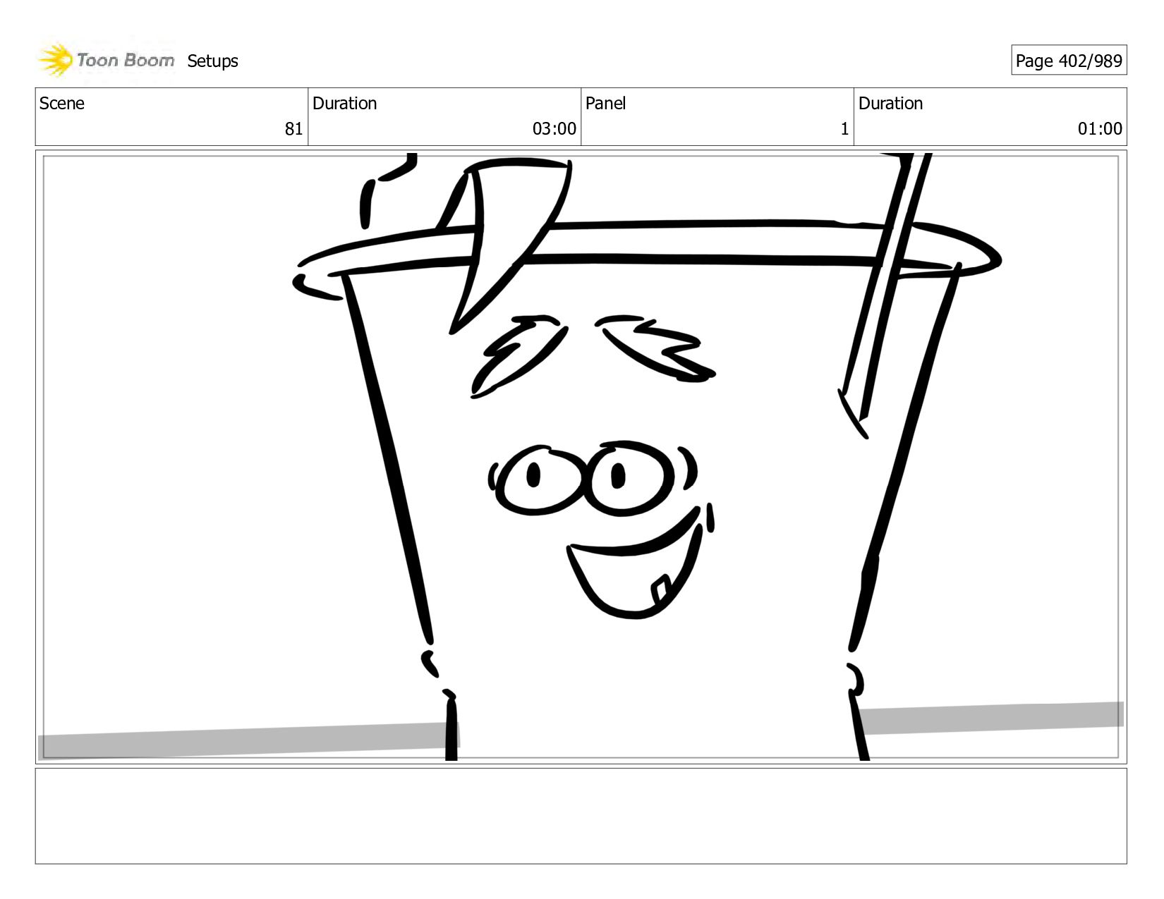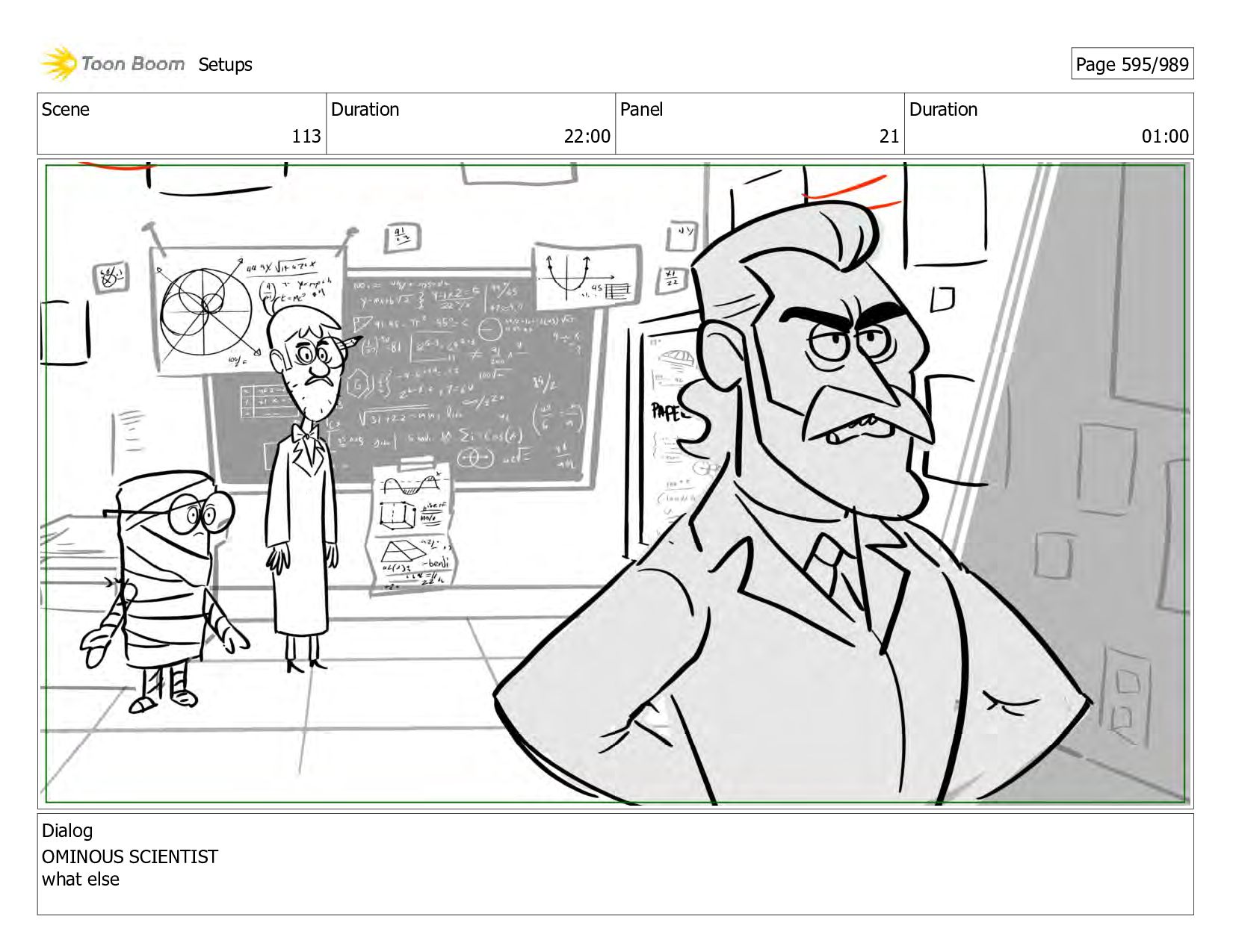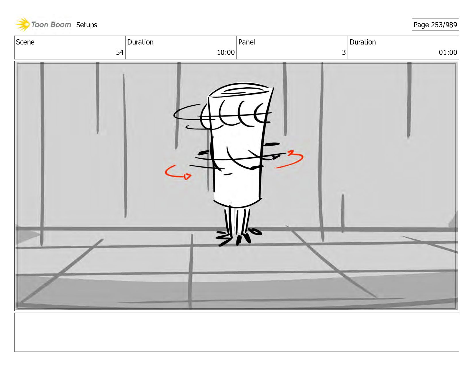 Scene 189 Duration 03:00 Panel 1 Duration 01:00 Setups Page