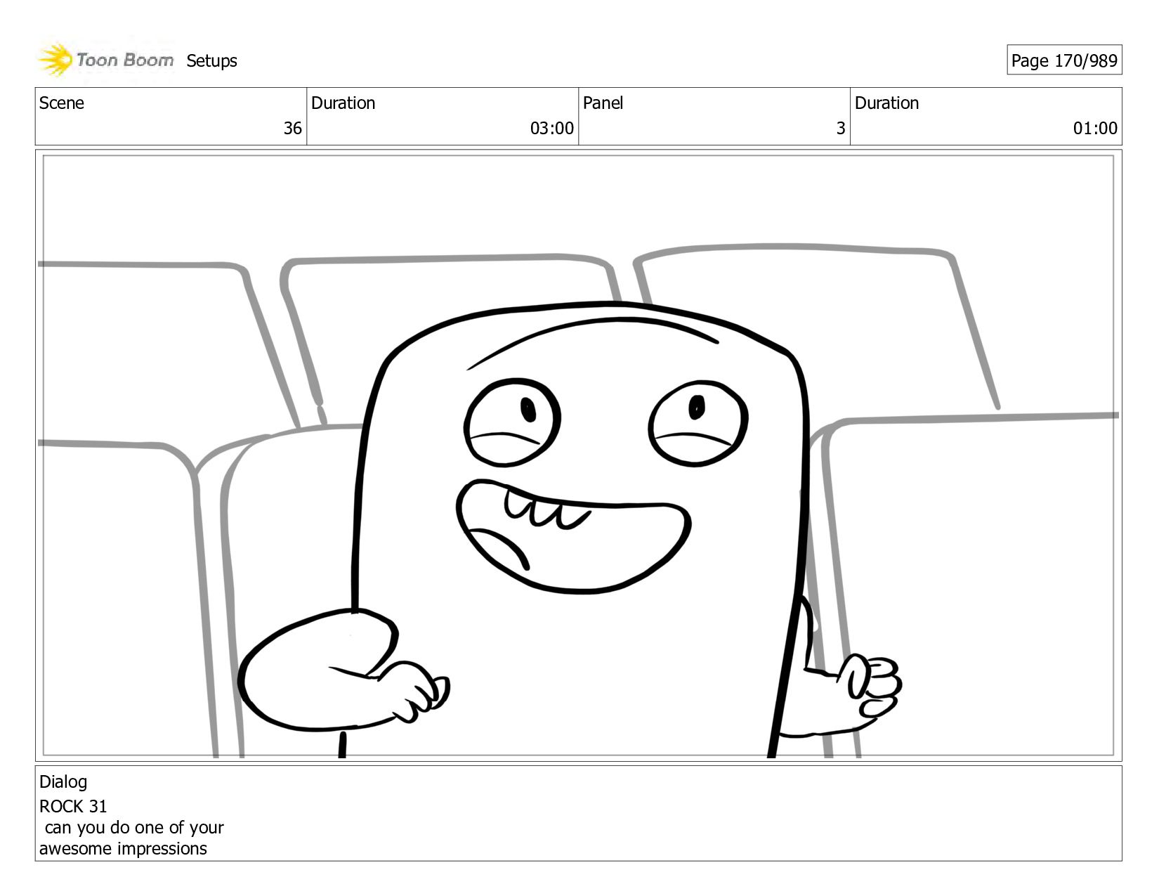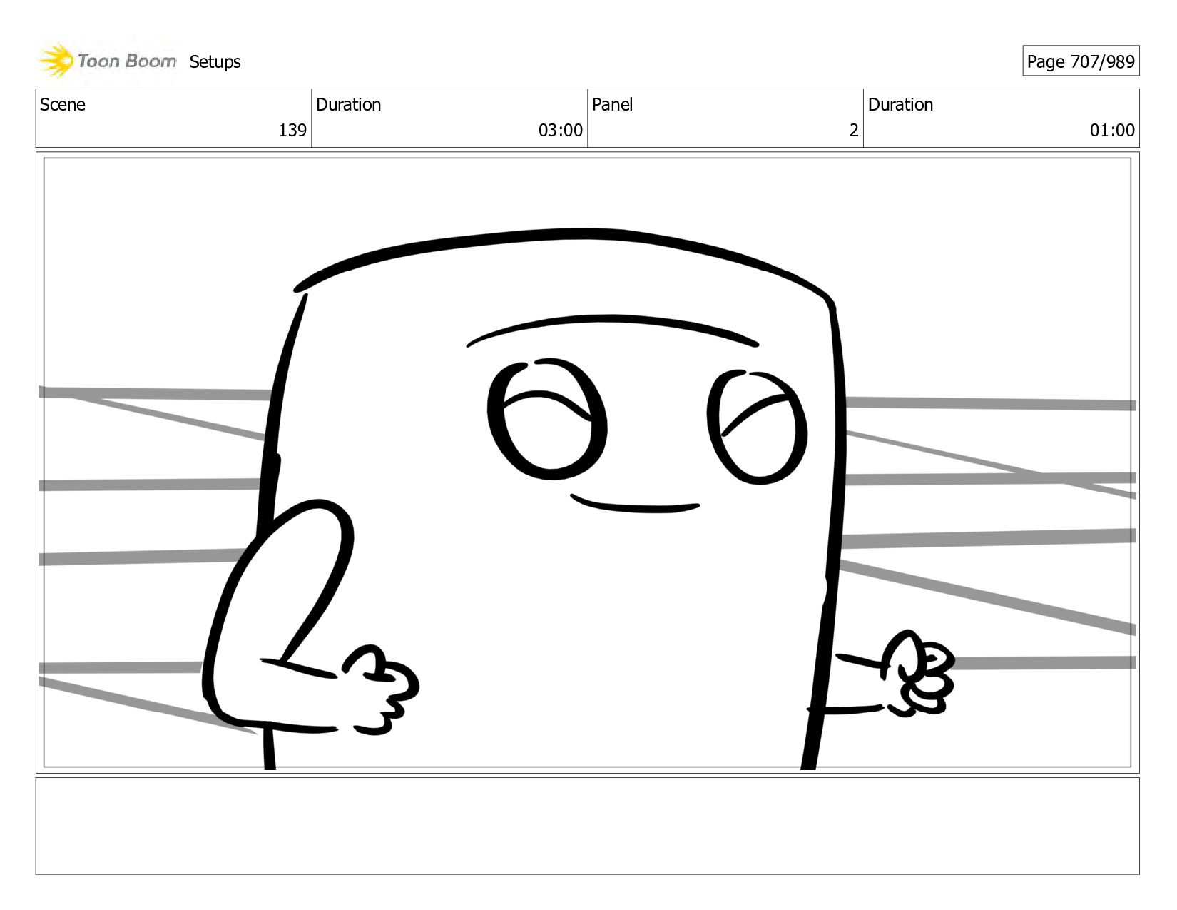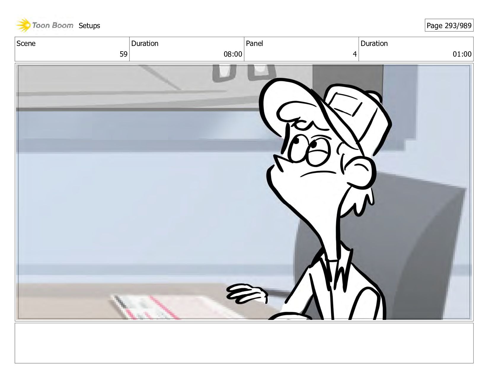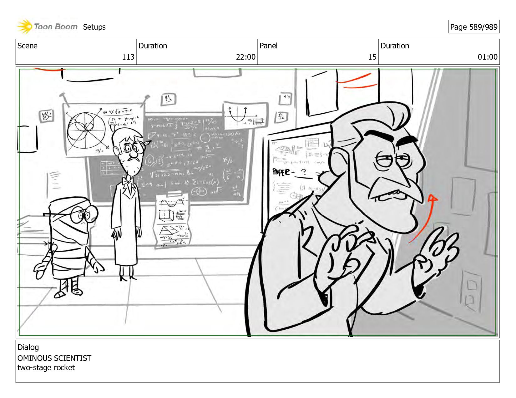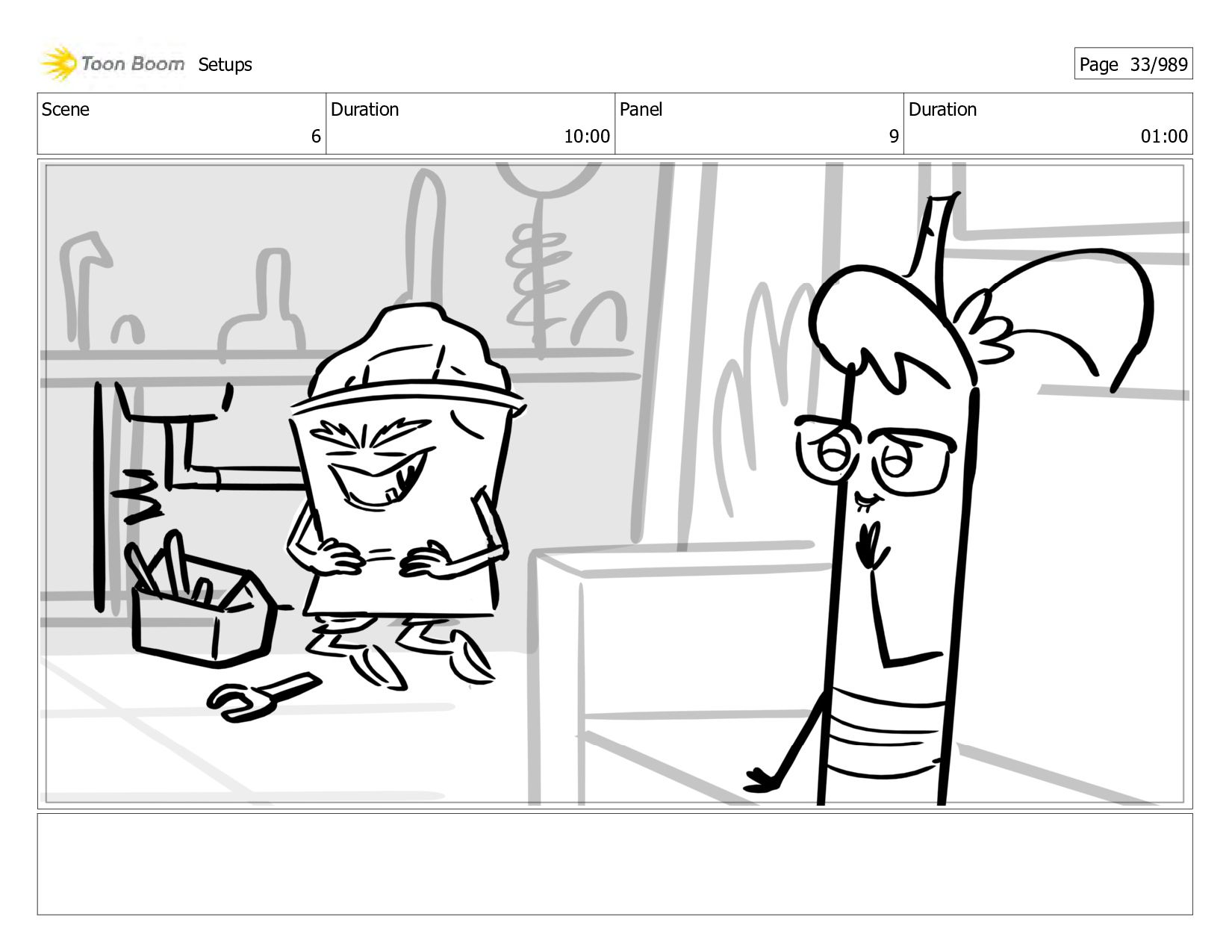 Scene 189 Duration 03:00 Panel 1 Duration 01:00 Setups Page