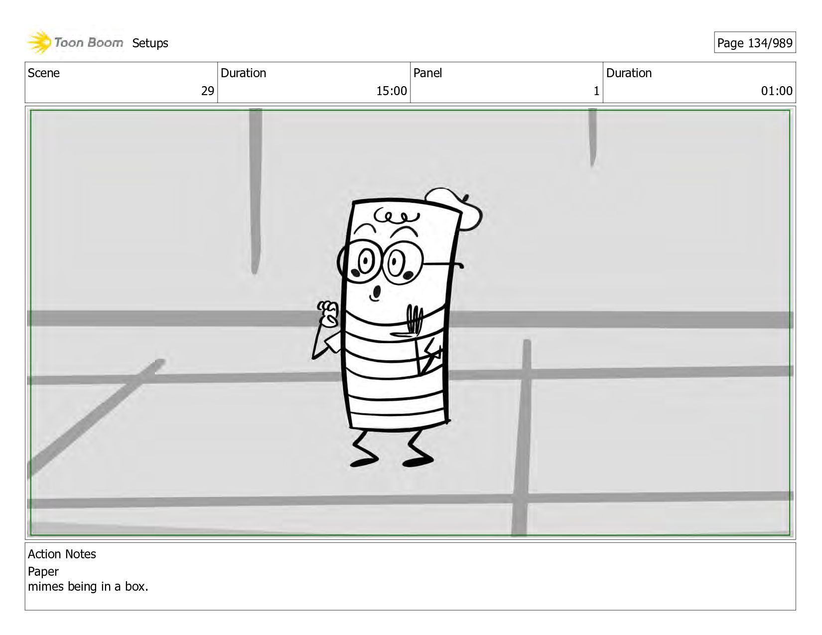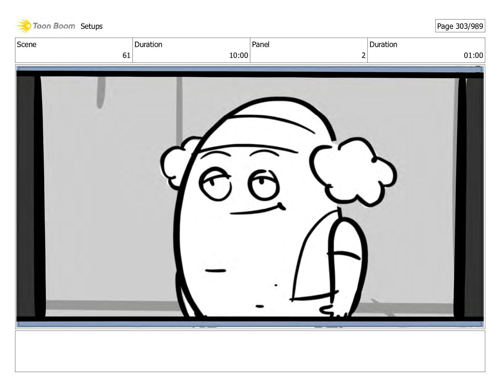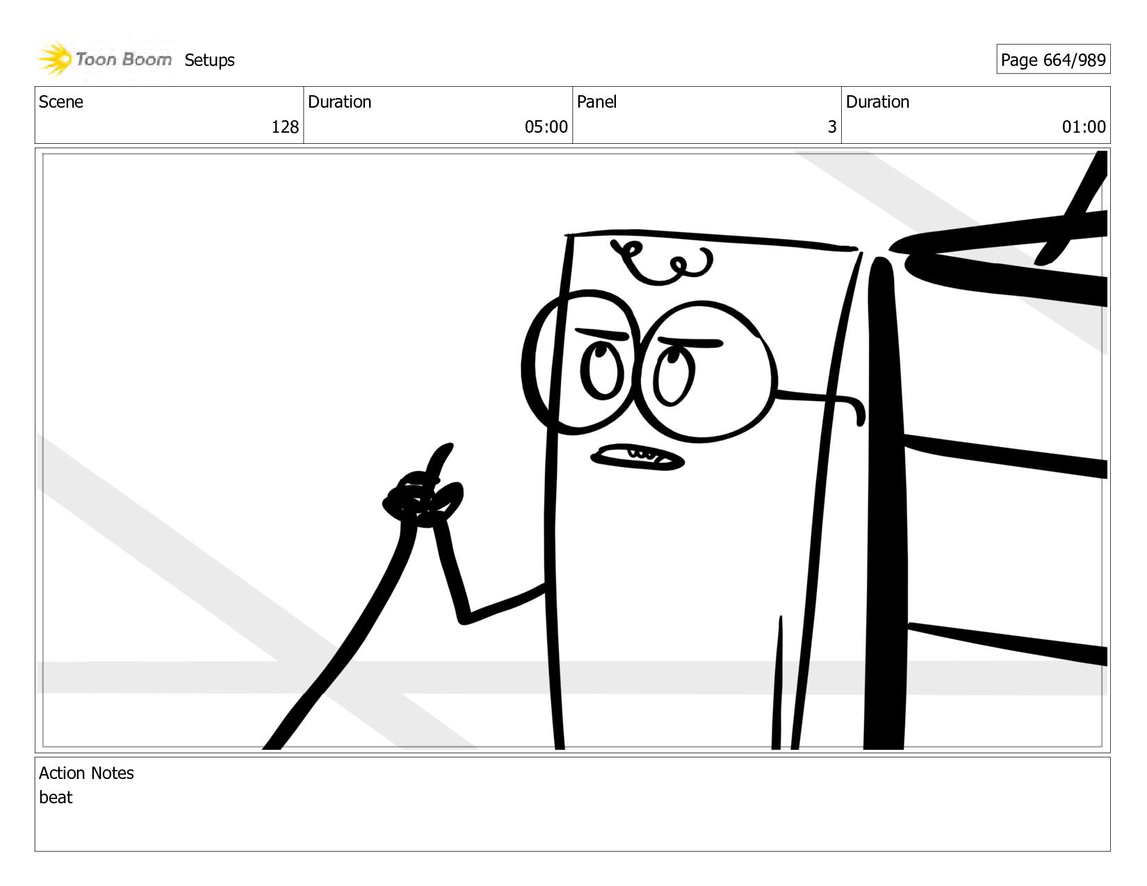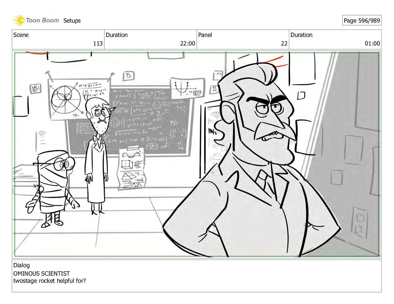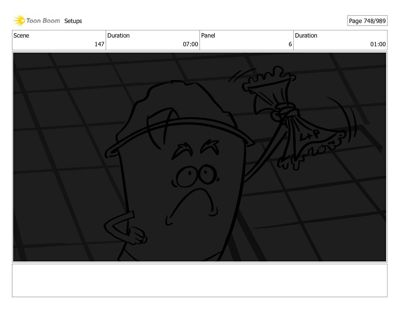 Scene 189 Duration 03:00 Panel 1 Duration 01:00 Setups Page