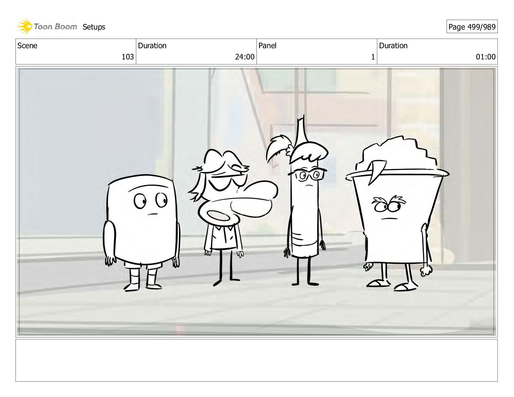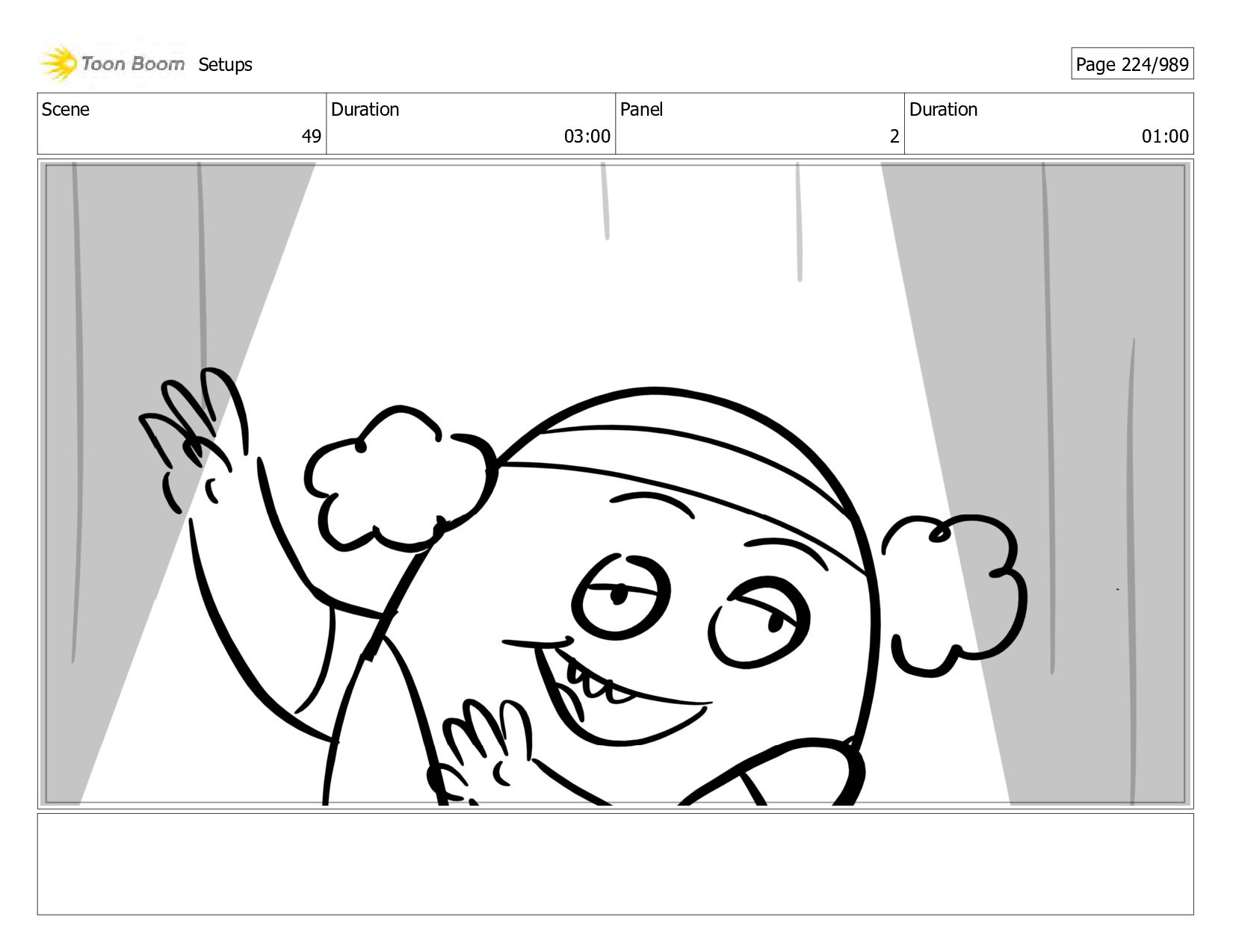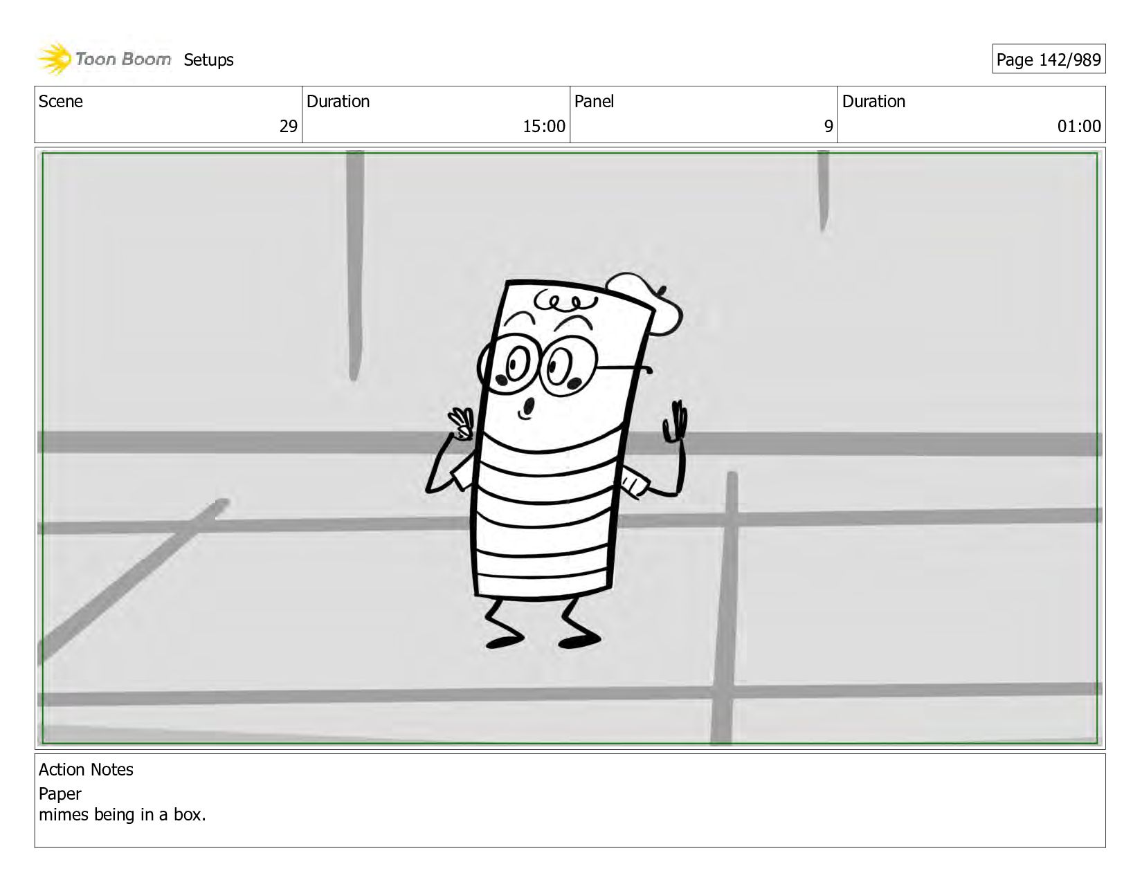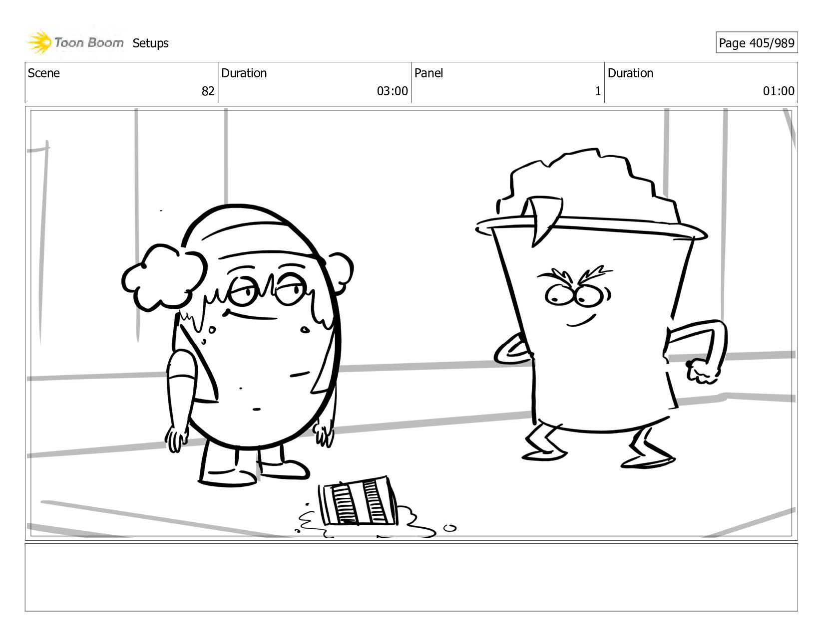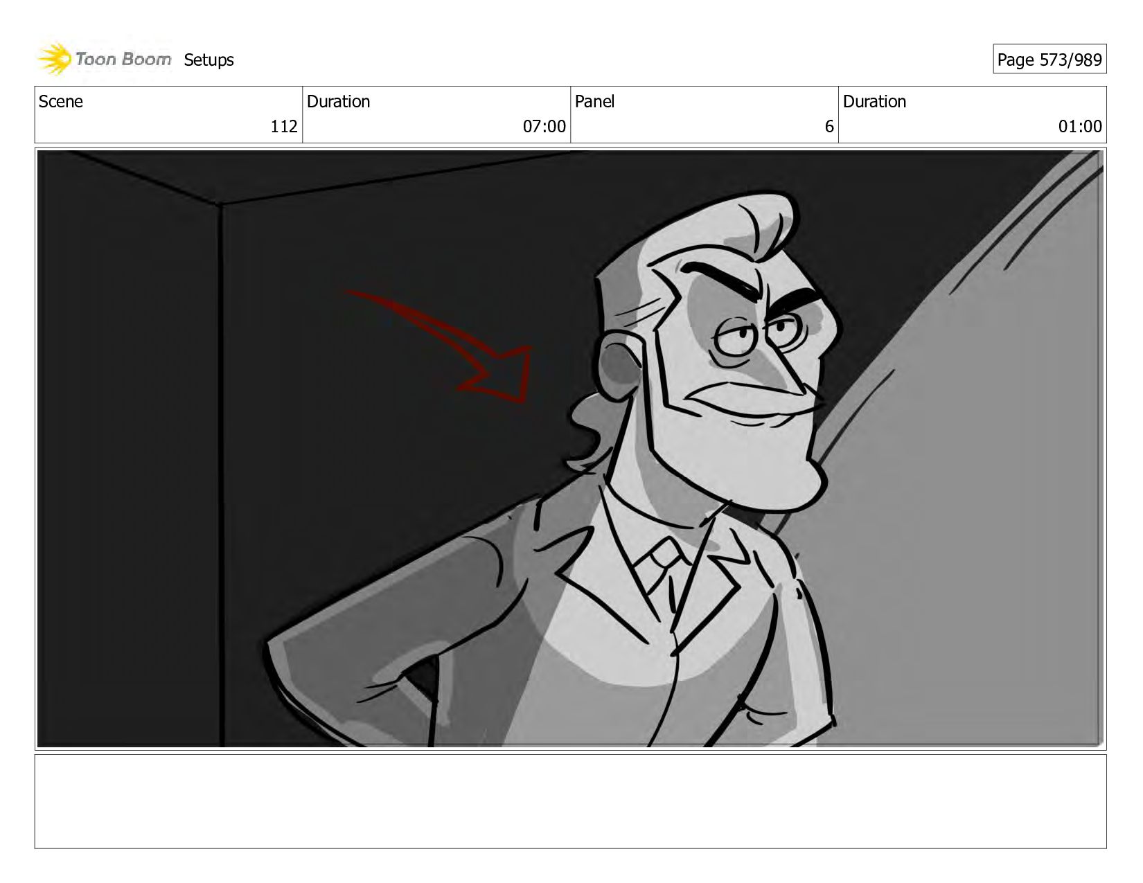 Scene 189 Duration 03:00 Panel 1 Duration 01:00 Setups Page