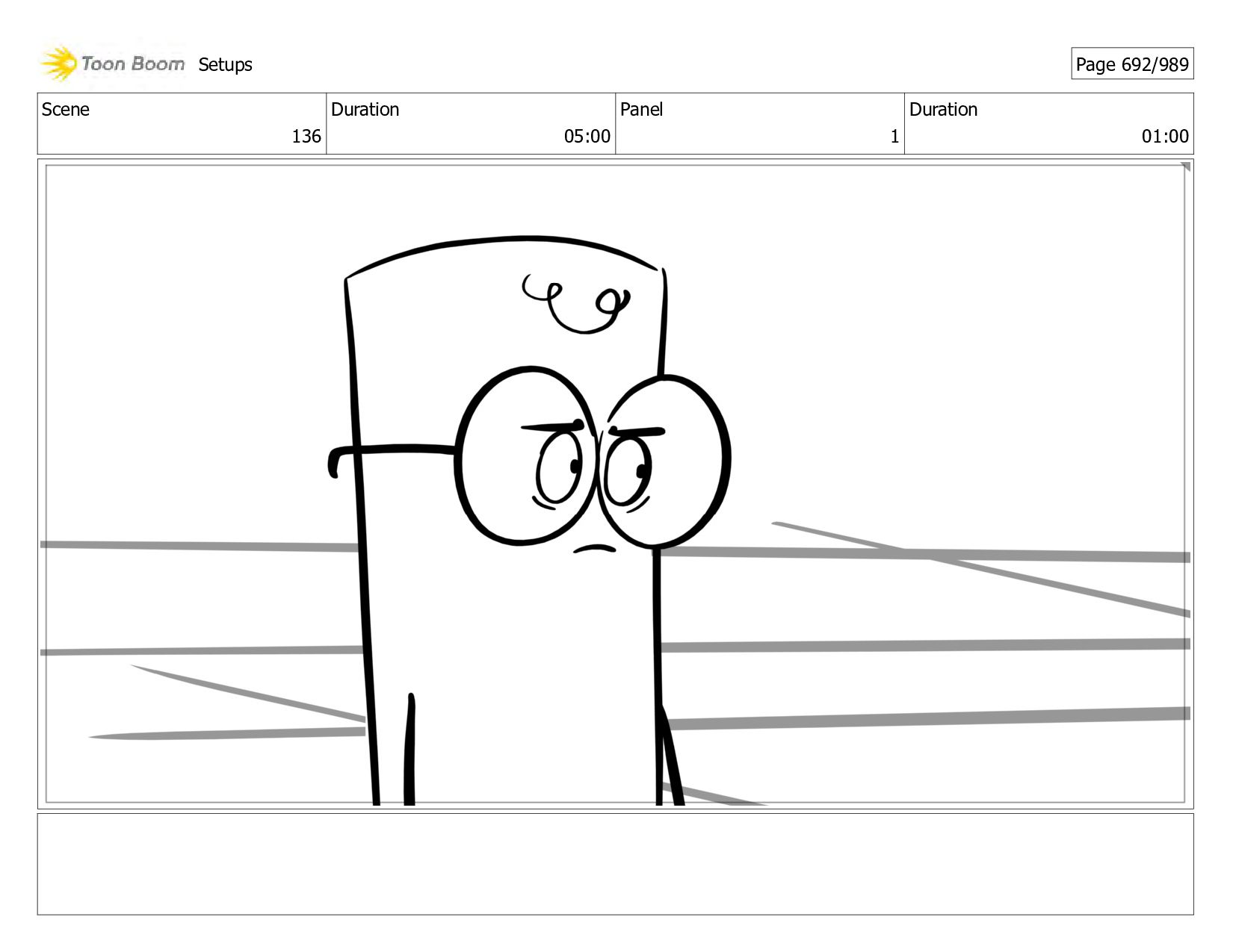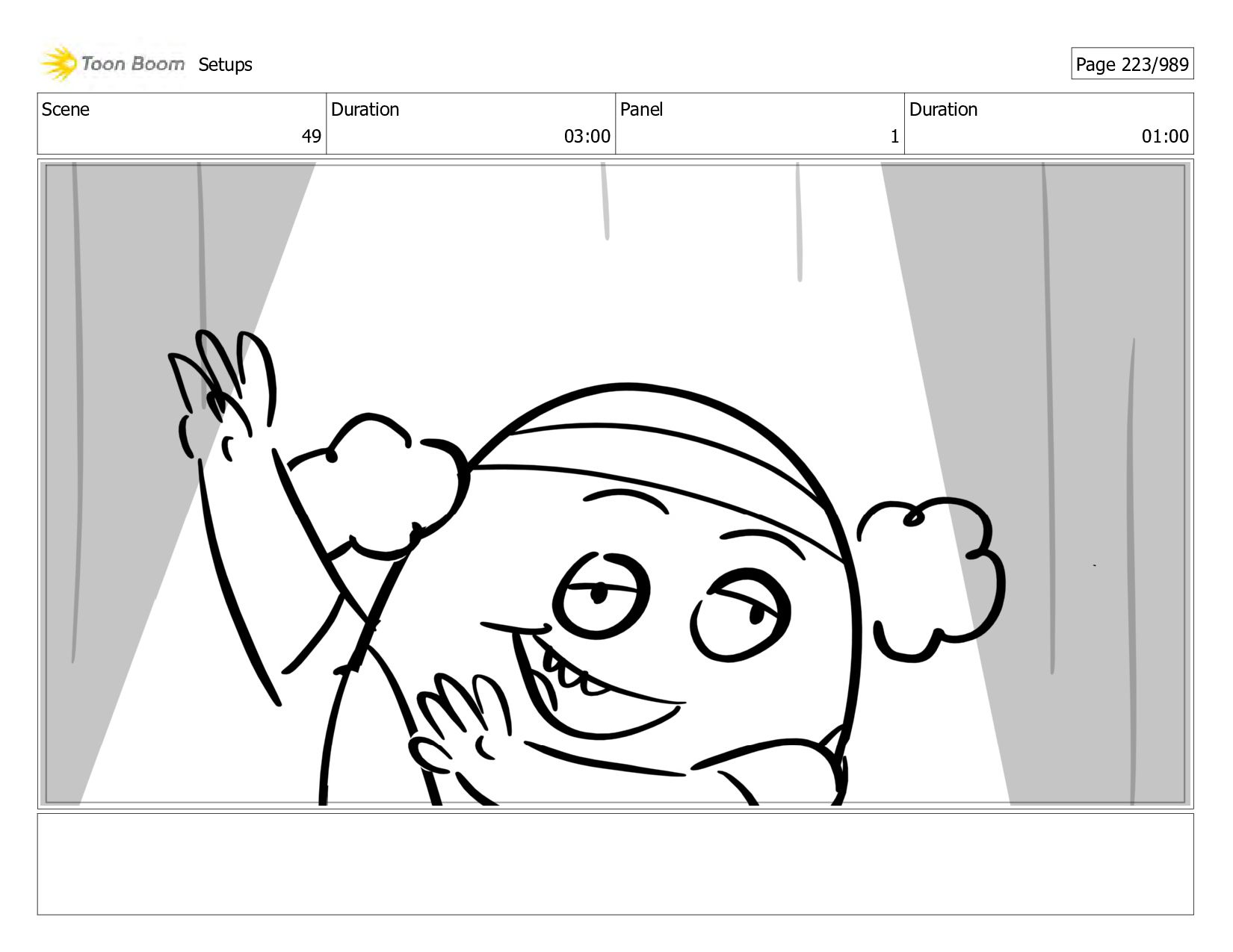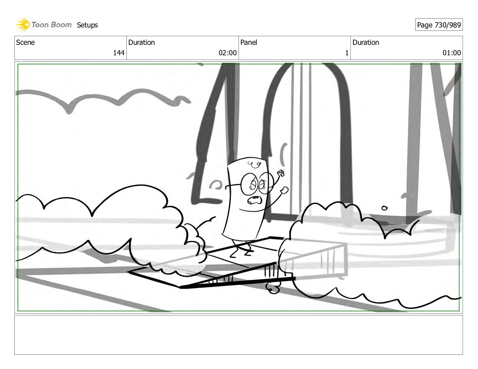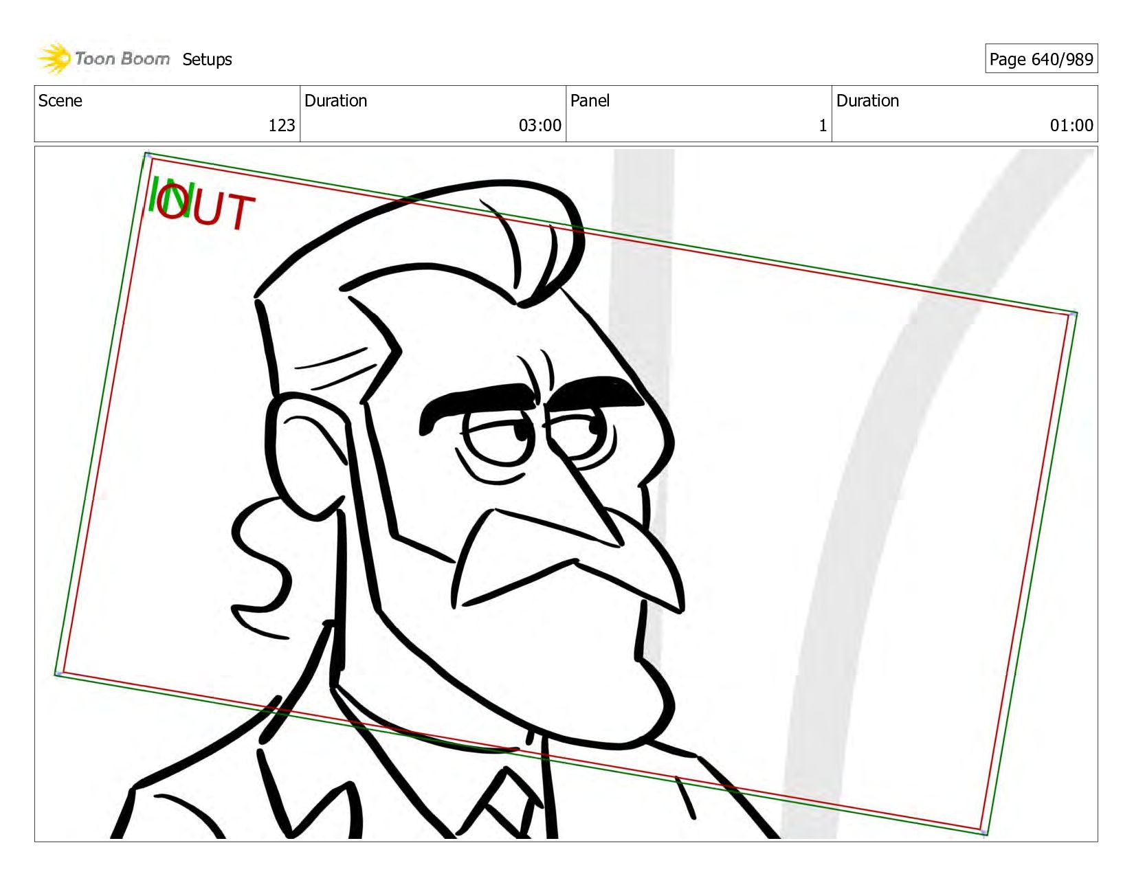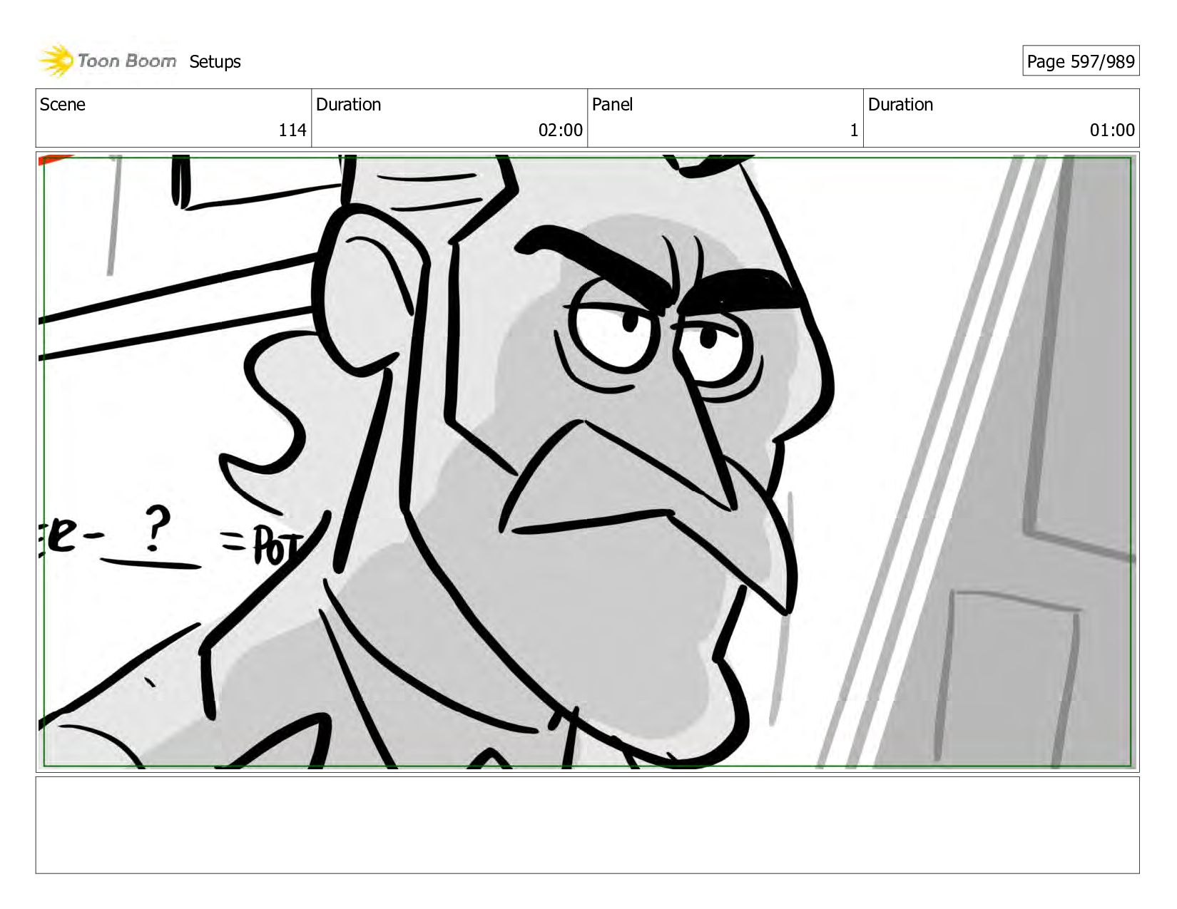Scene 189 Duration 03:00 Panel 1 Duration 01:00 Setups Page