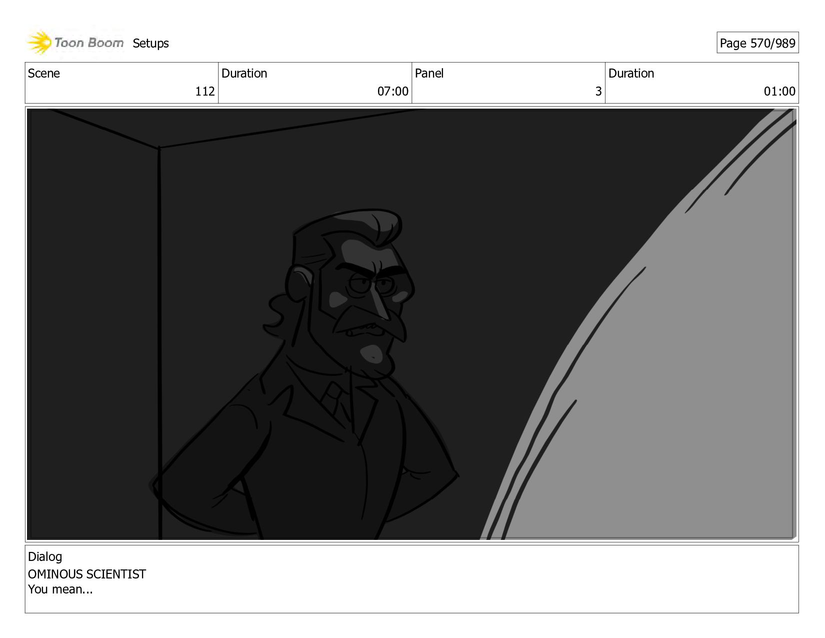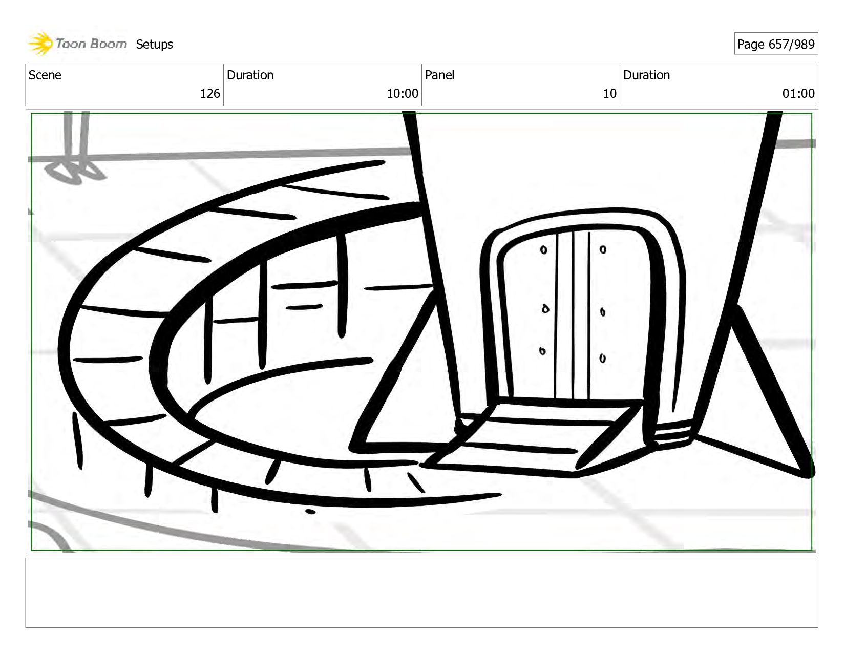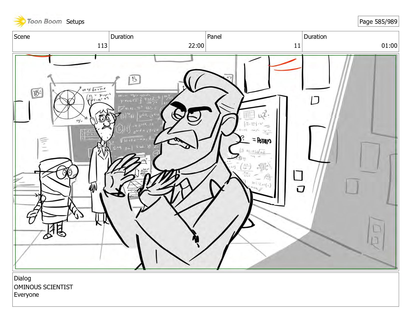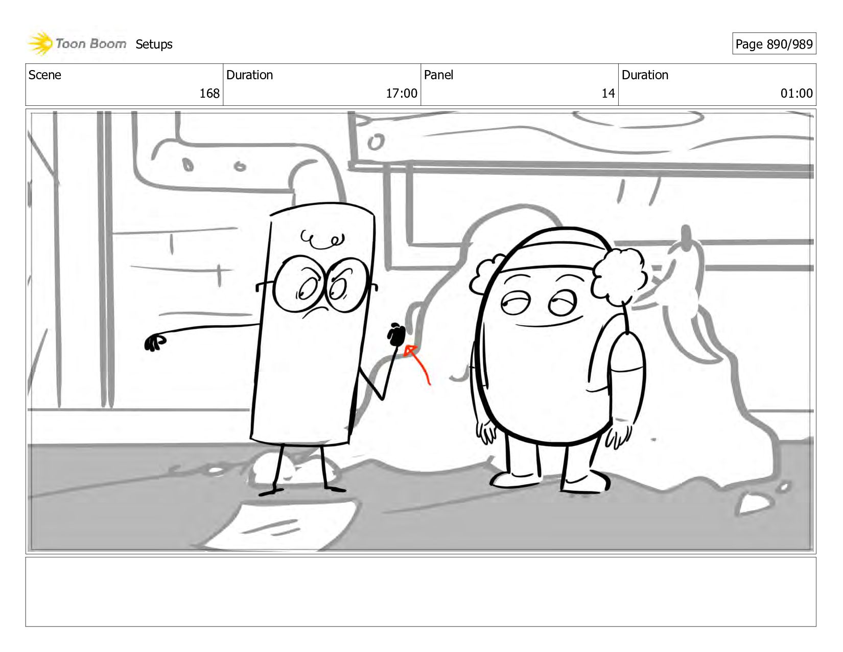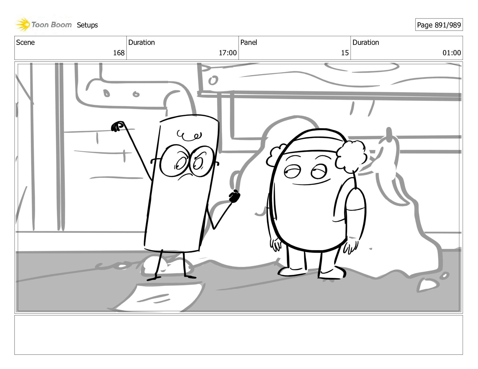 Scene 189 Duration 03:00 Panel 1 Duration 01:00 Setups Page