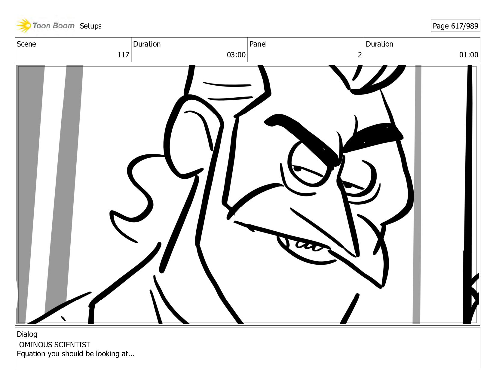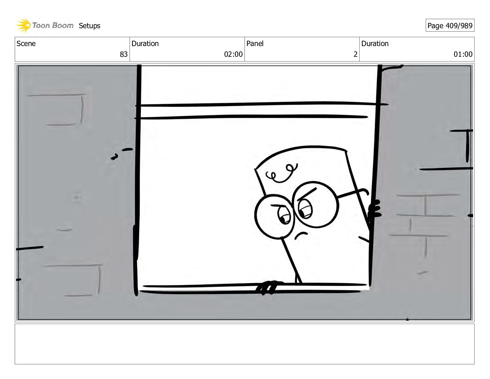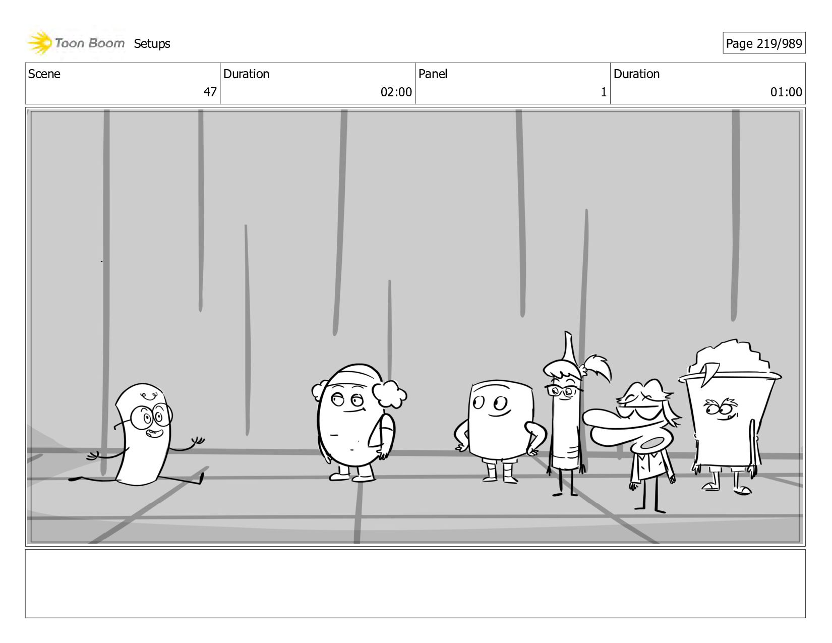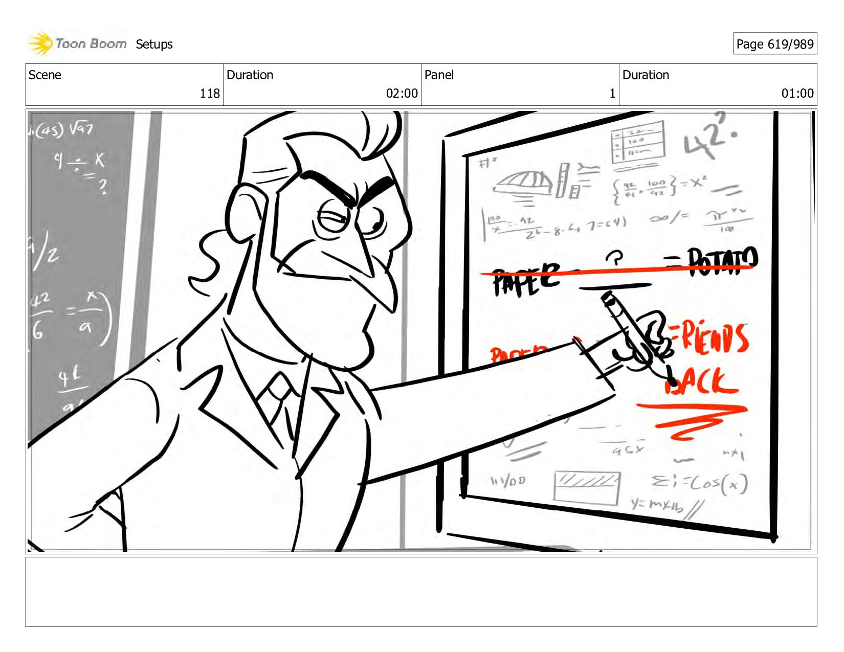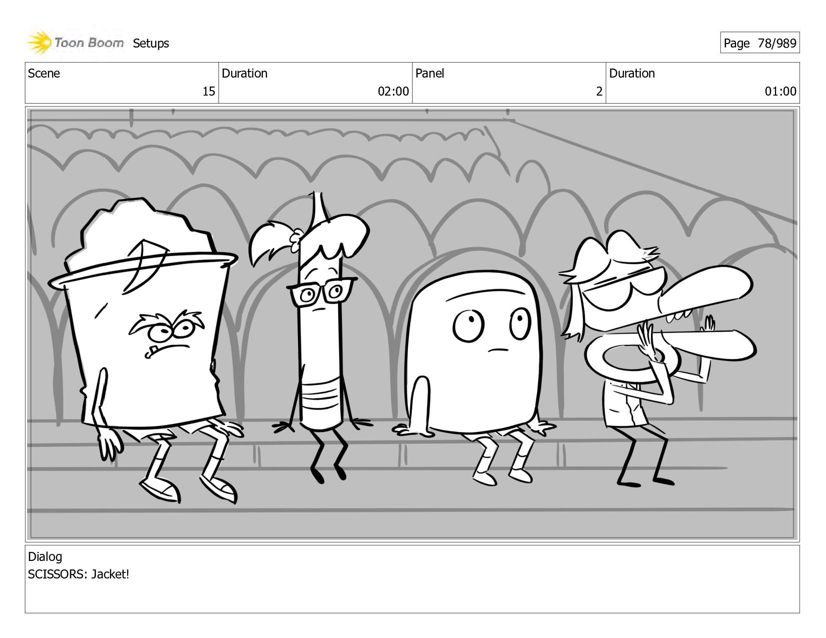 Scene 189 Duration 03:00 Panel 1 Duration 01:00 Setups Page