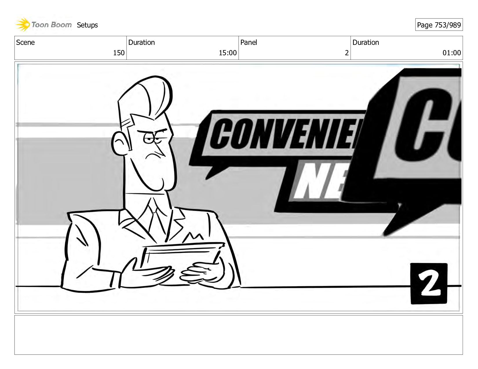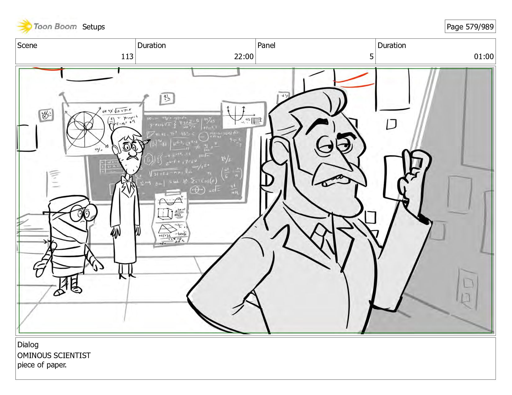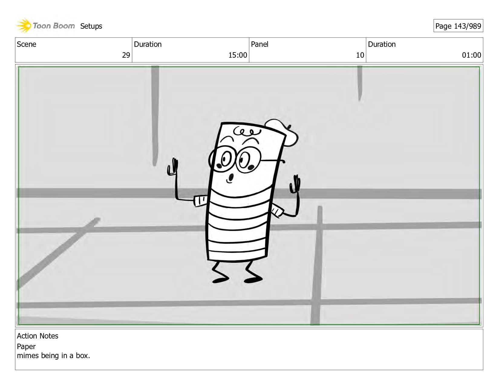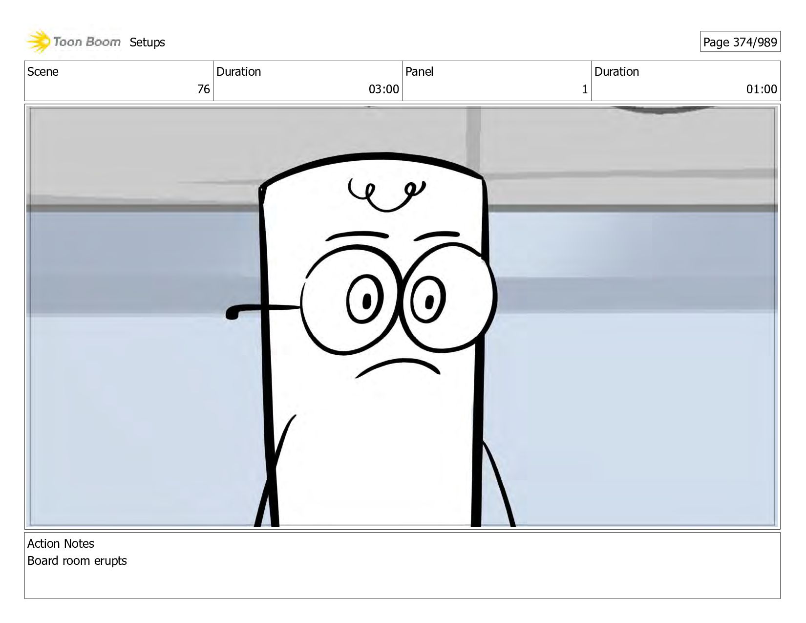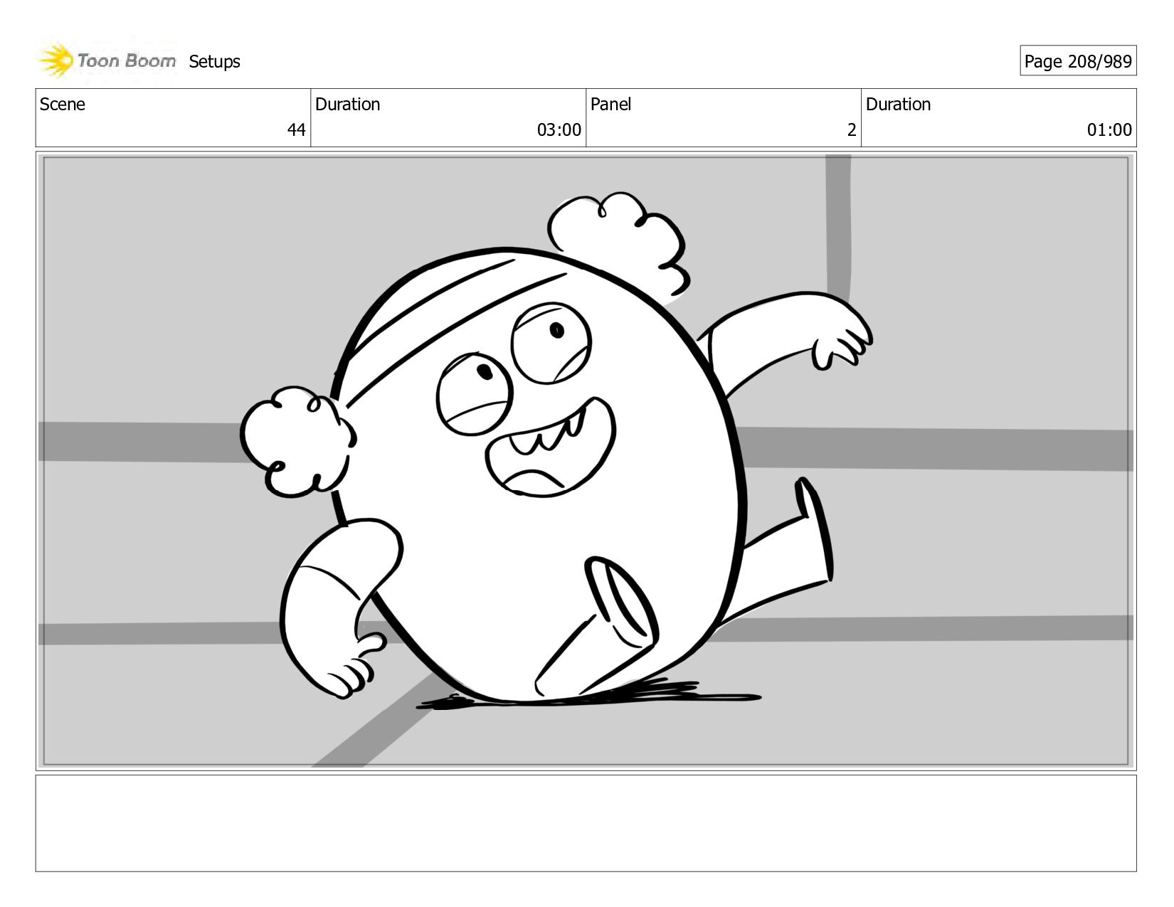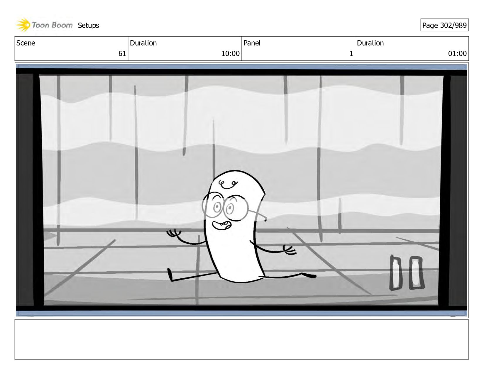 Scene 189 Duration 03:00 Panel 1 Duration 01:00 Setups Page