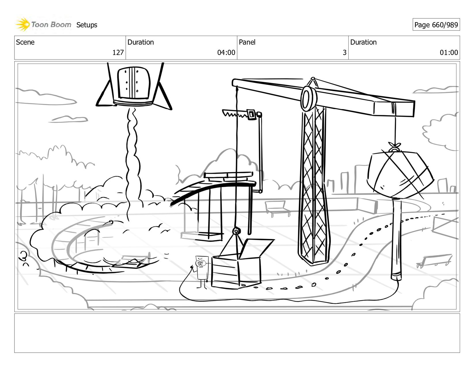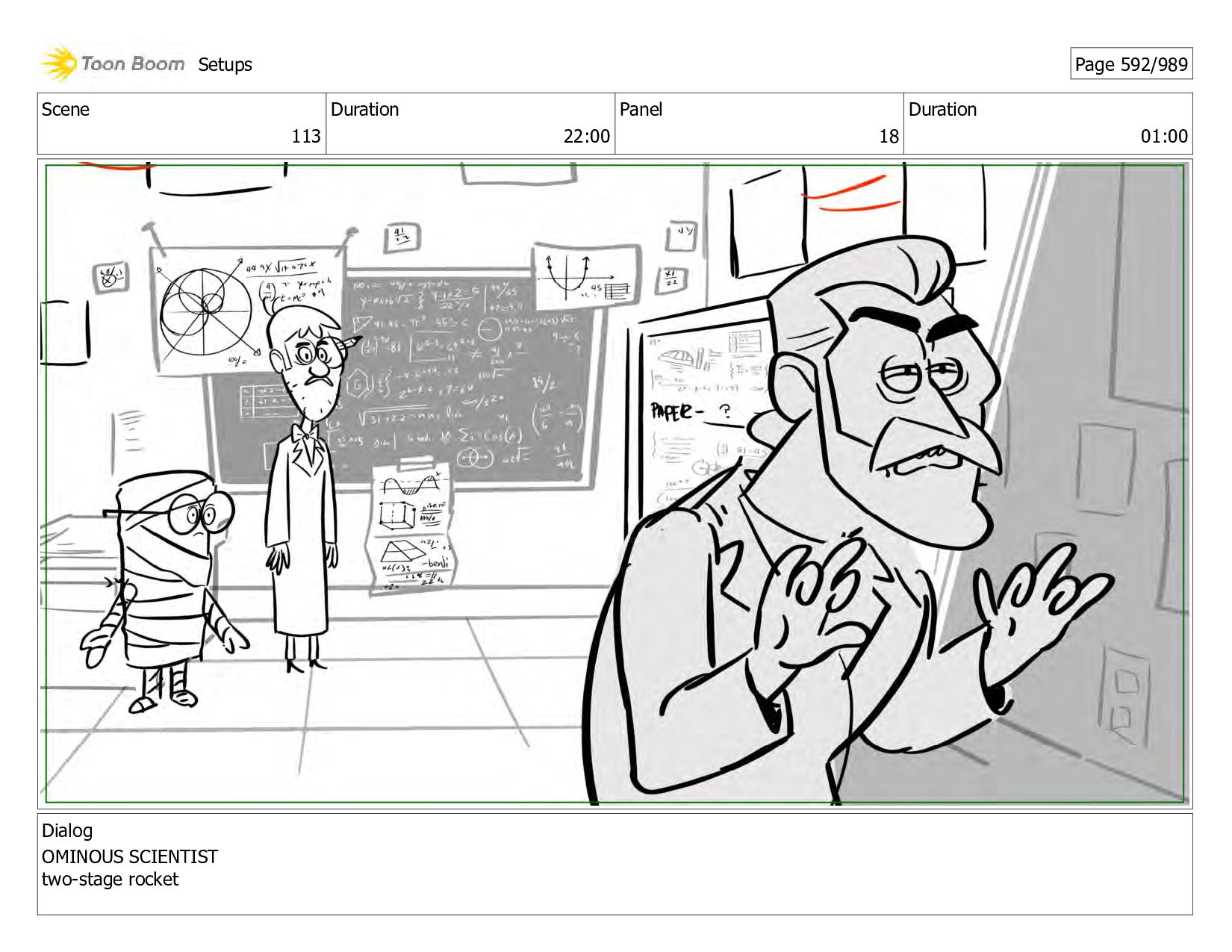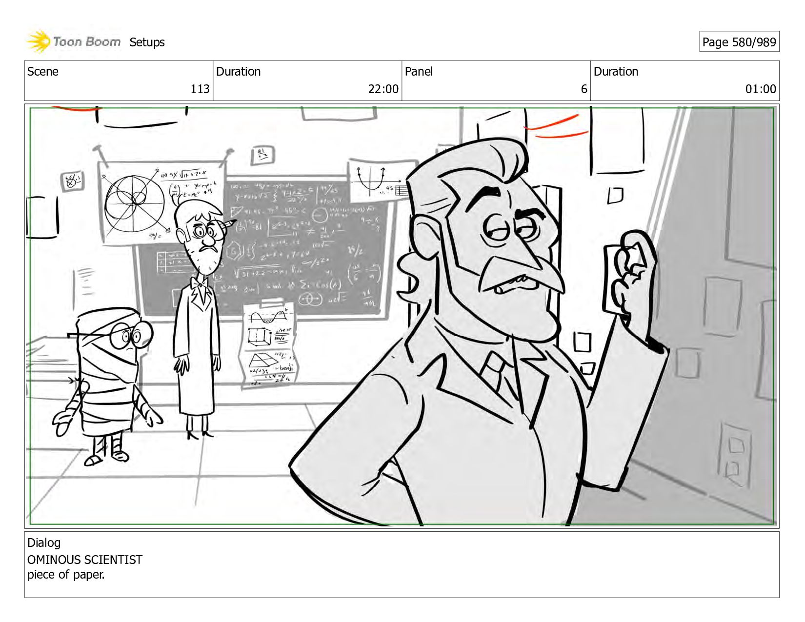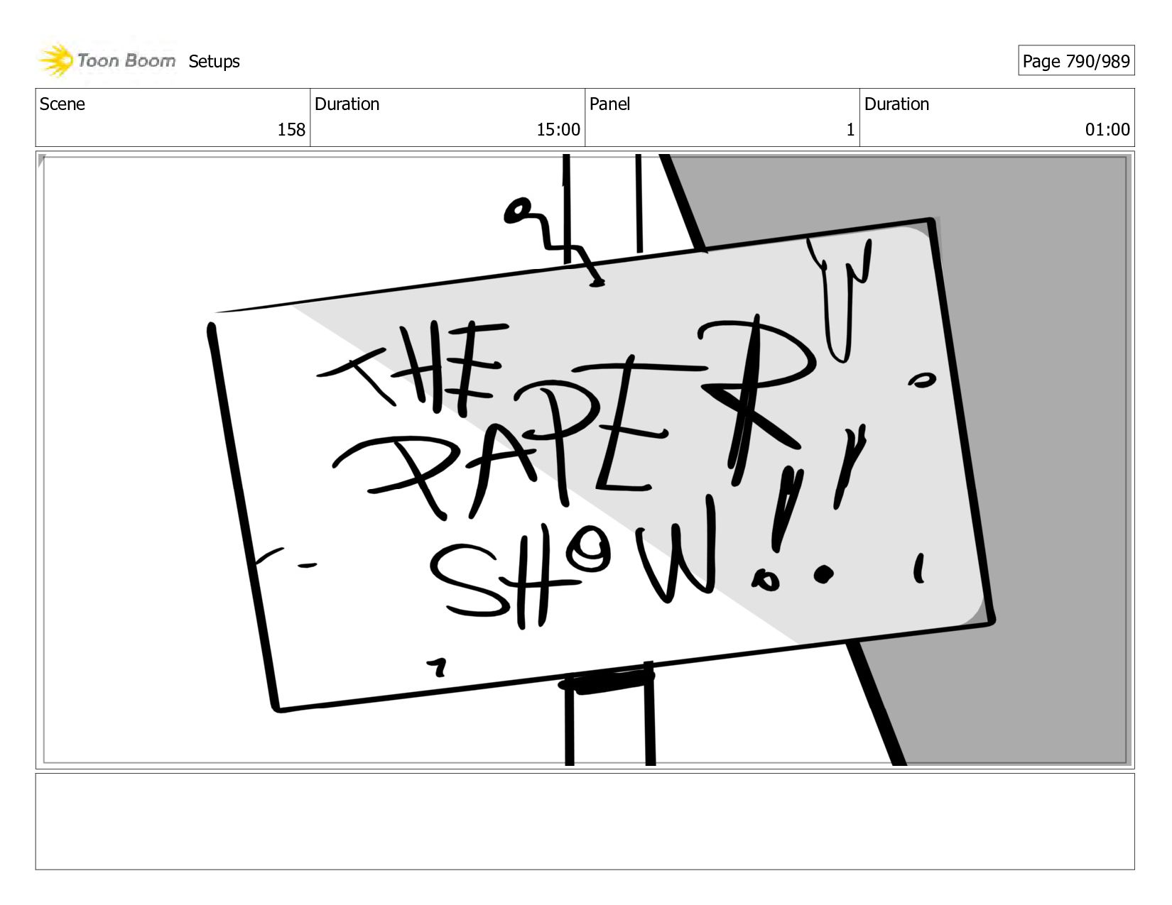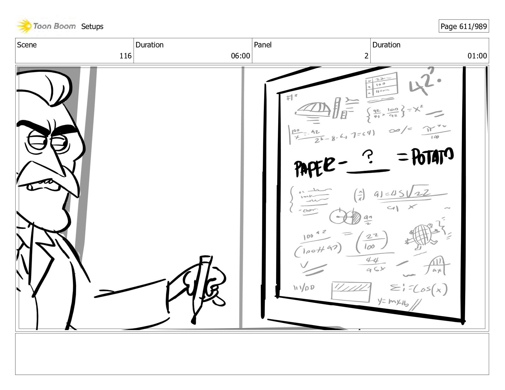 Scene 189 Duration 03:00 Panel 1 Duration 01:00 Setups Page