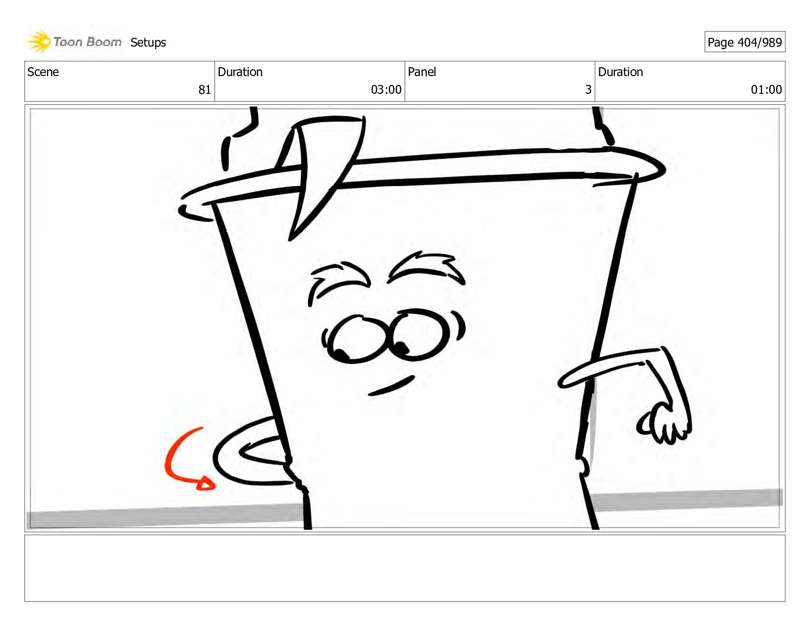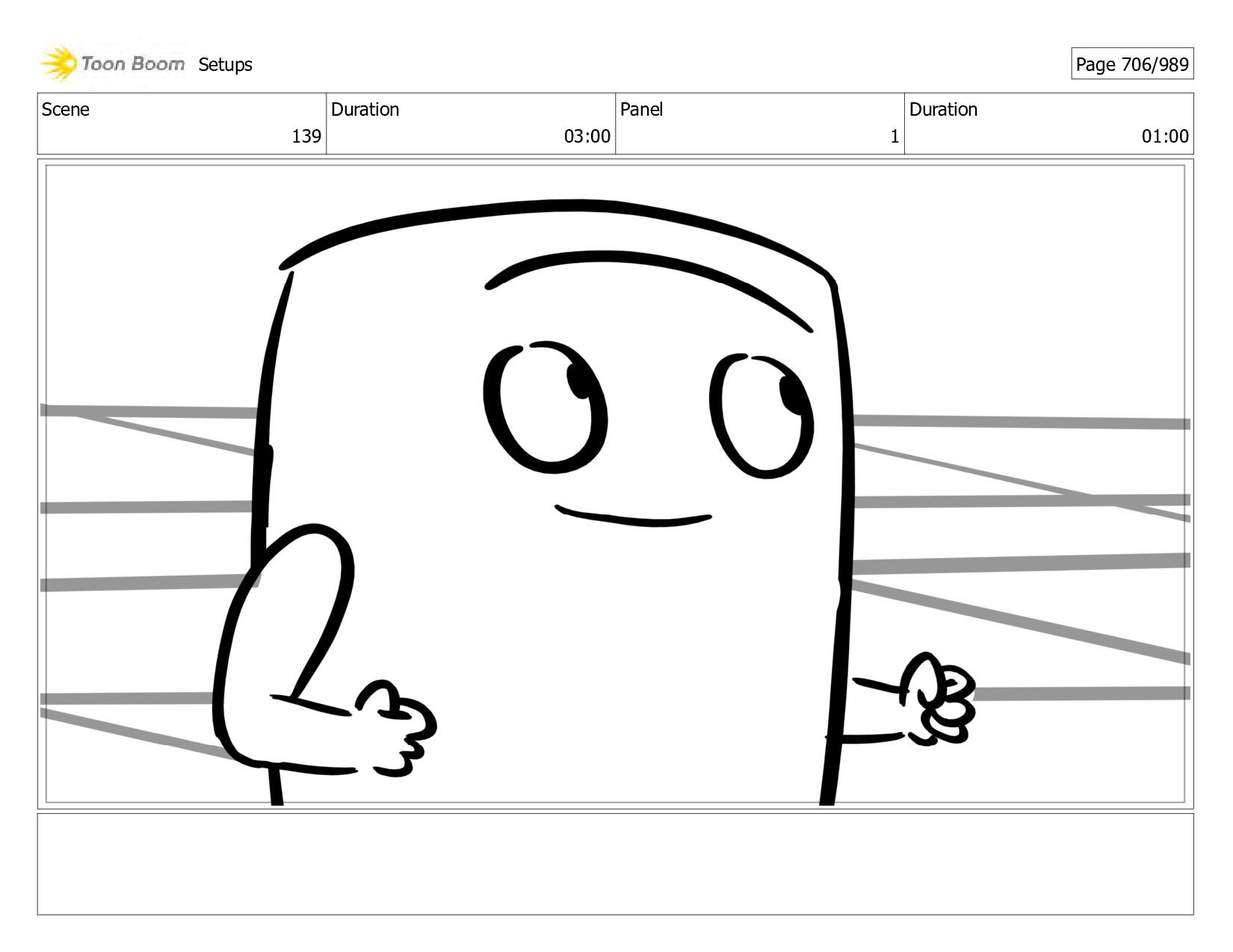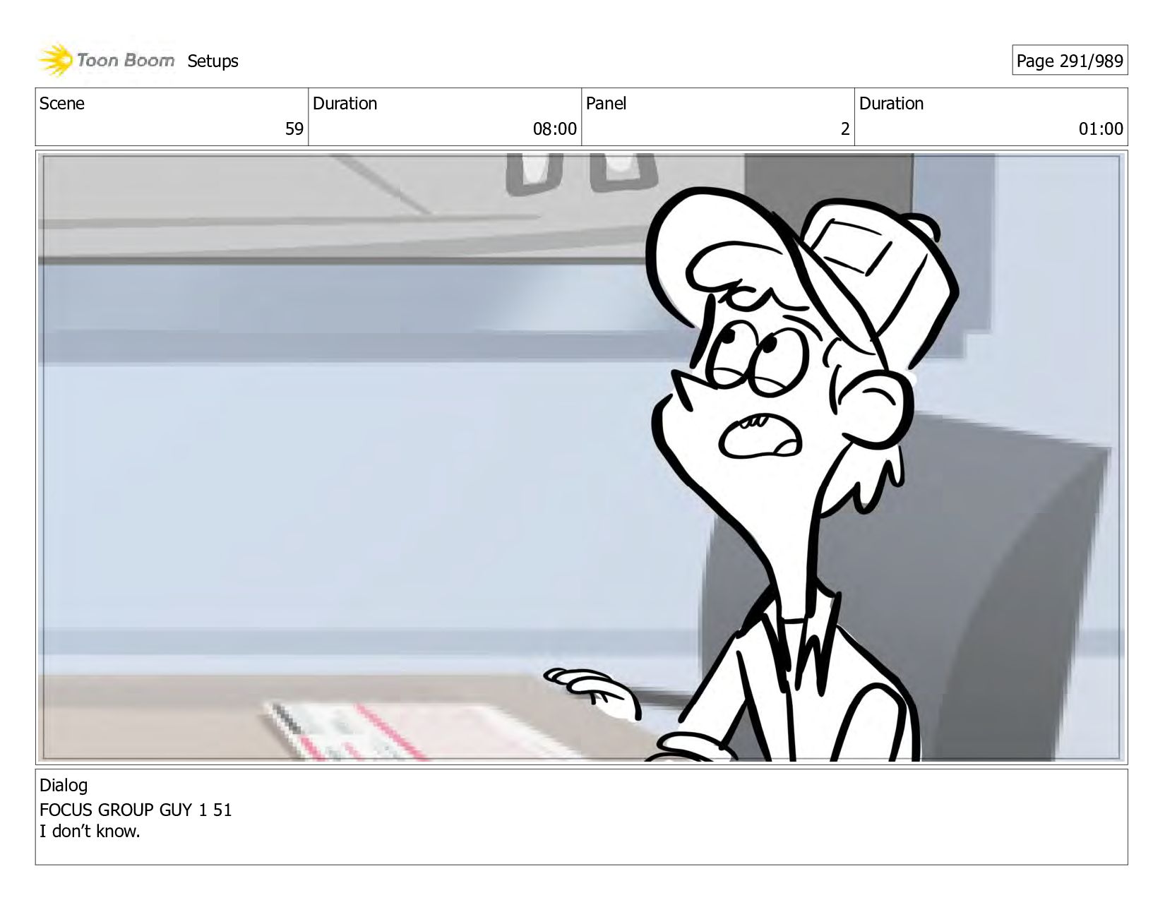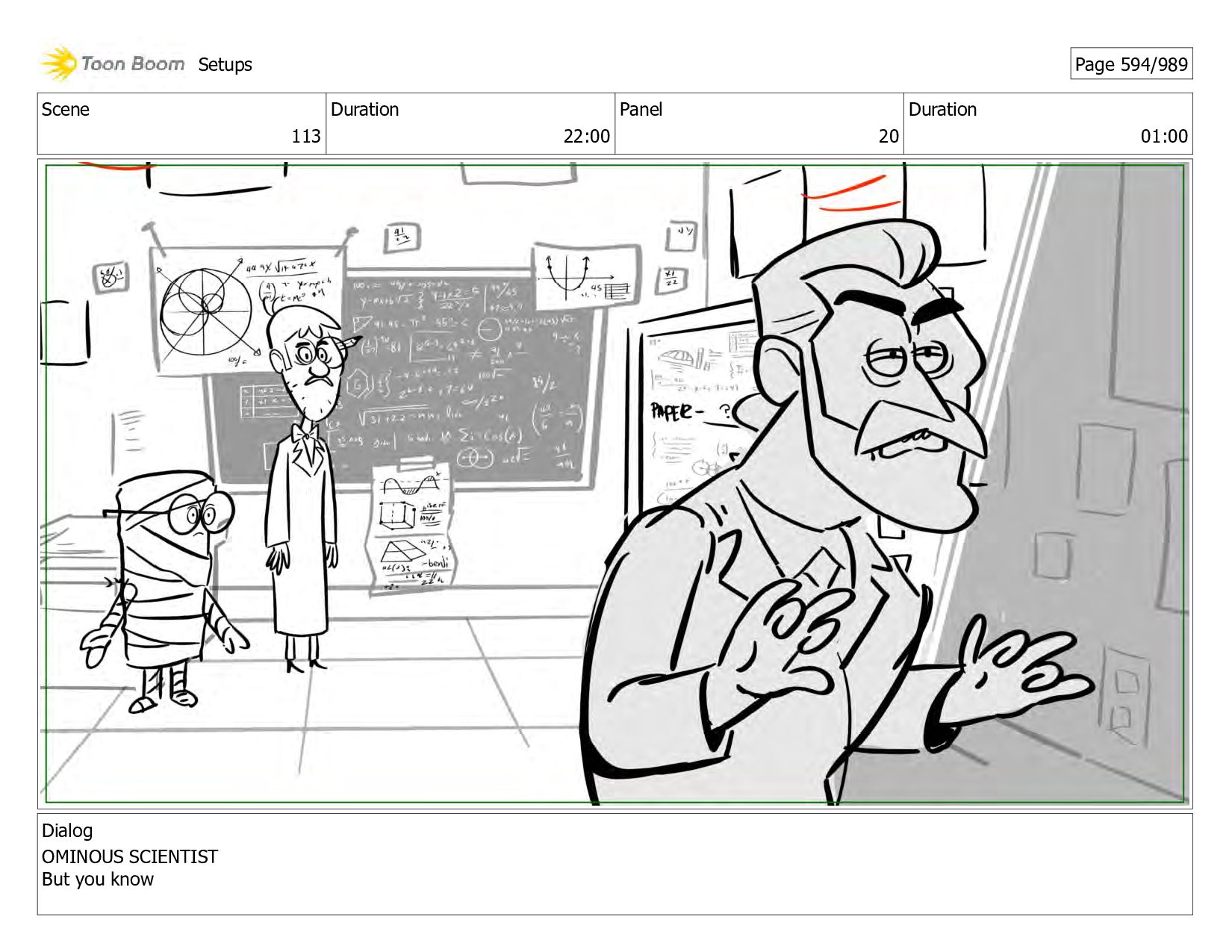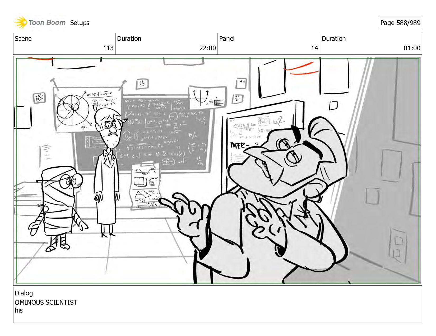 Scene 189 Duration 03:00 Panel 1 Duration 01:00 Setups Page