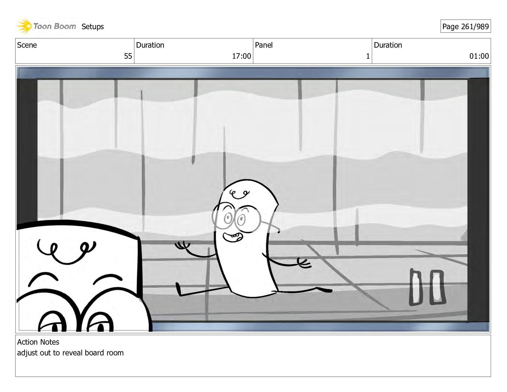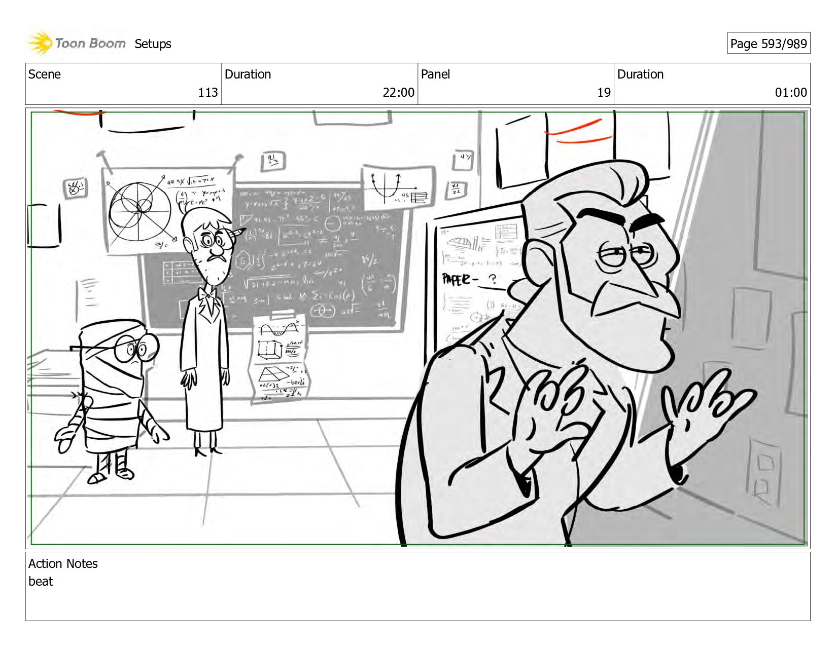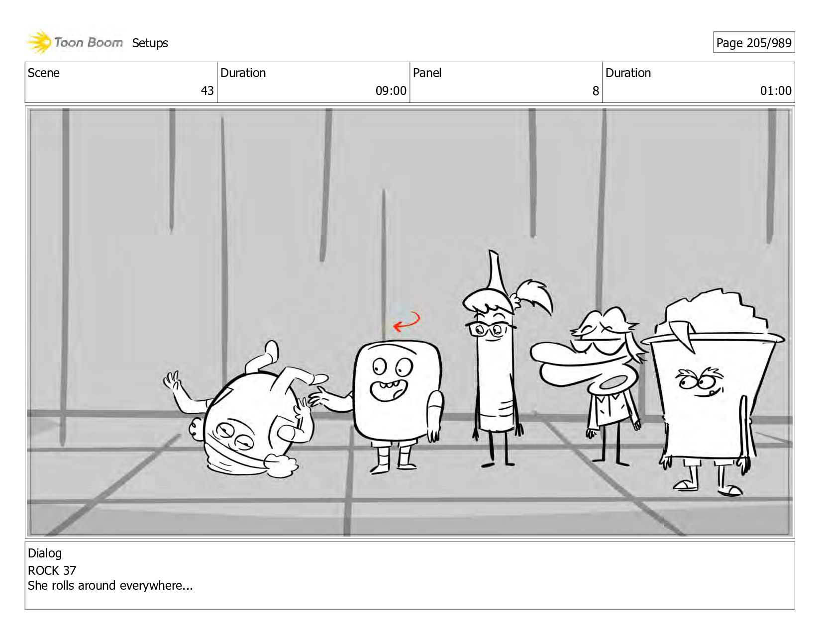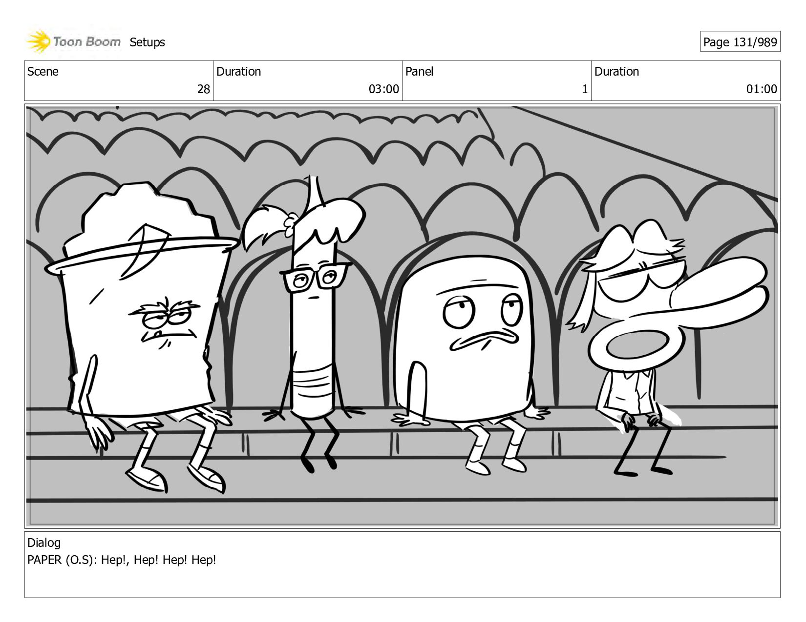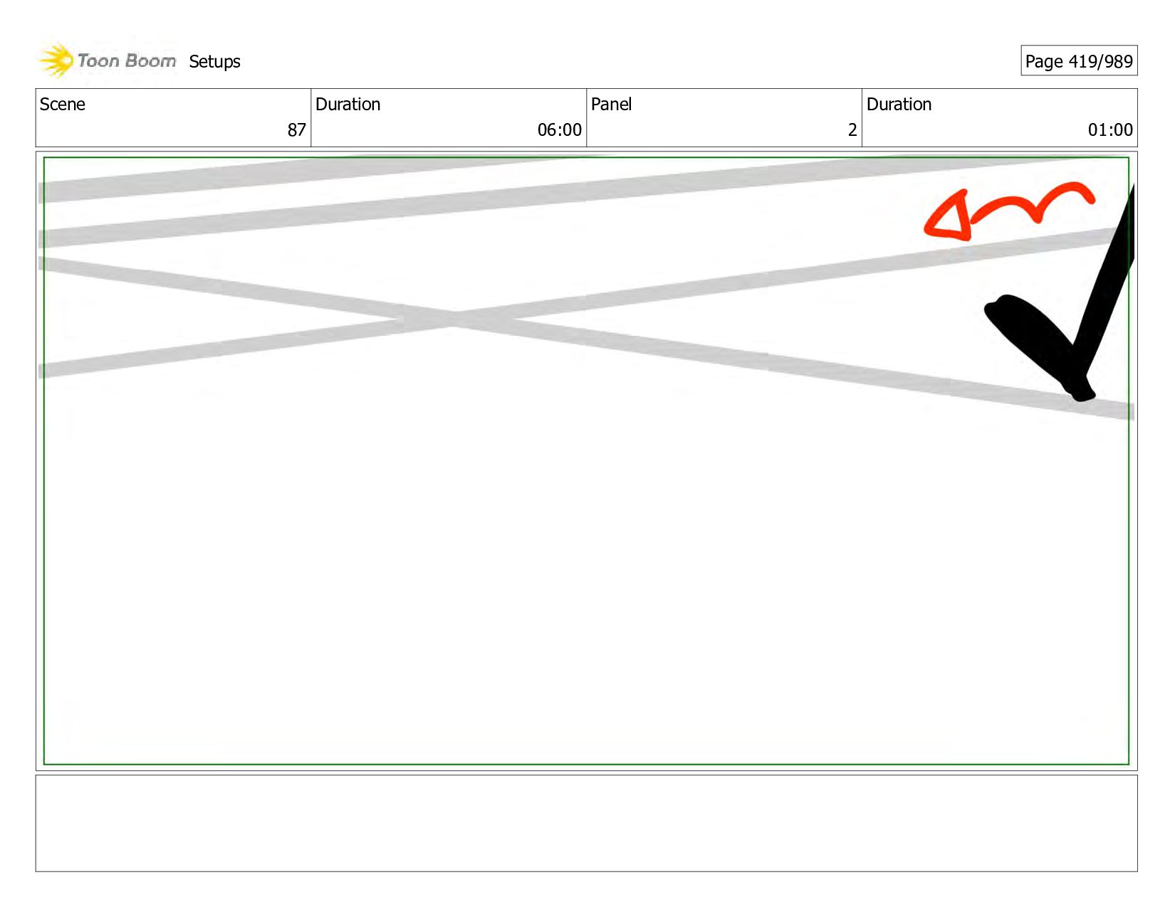 Scene 189 Duration 03:00 Panel 1 Duration 01:00 Setups Page