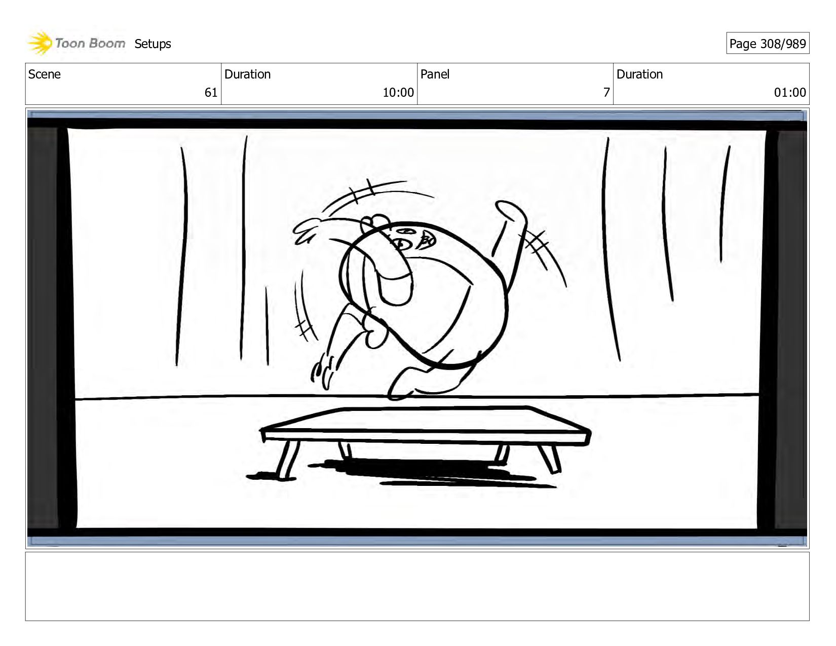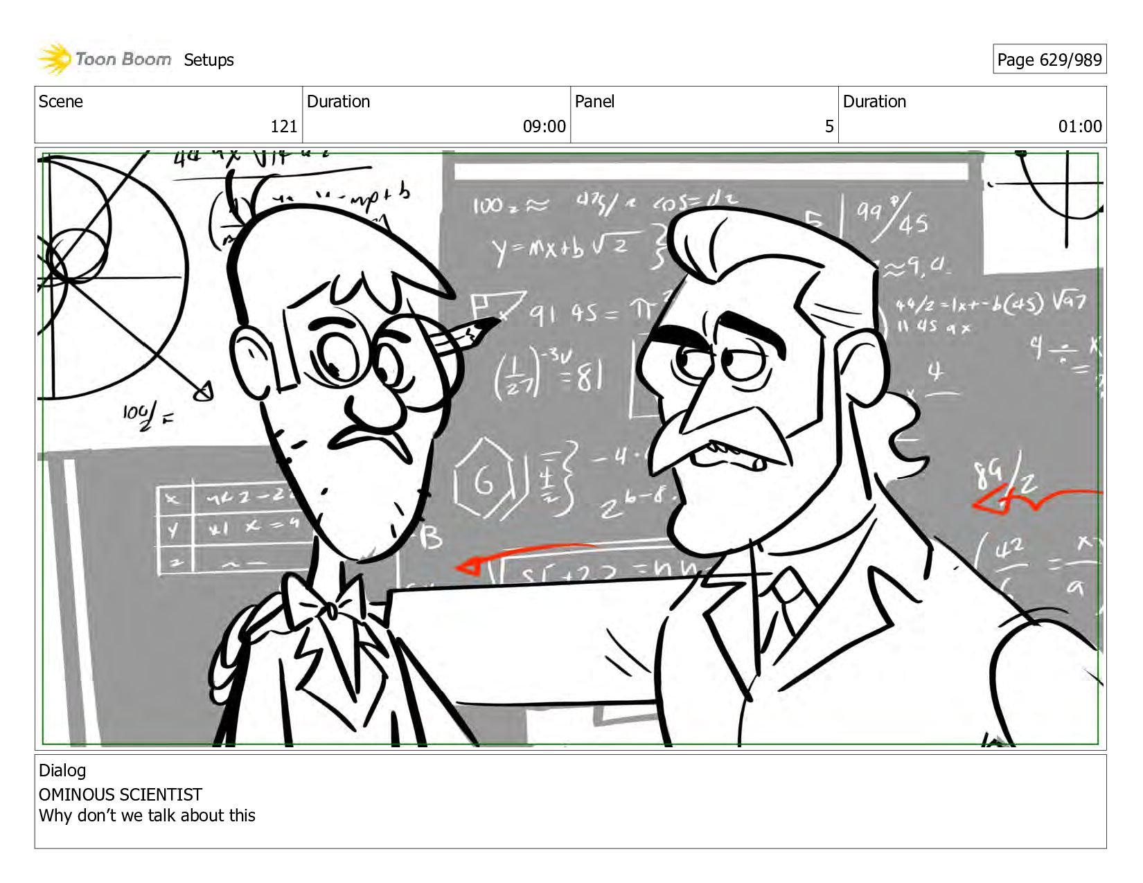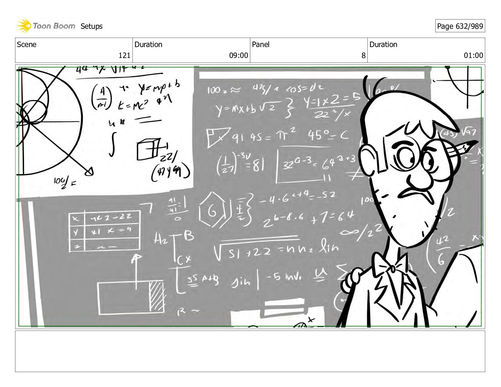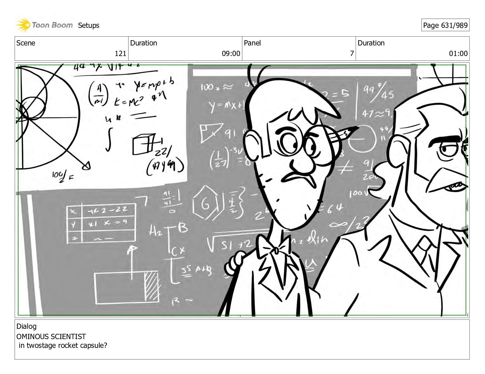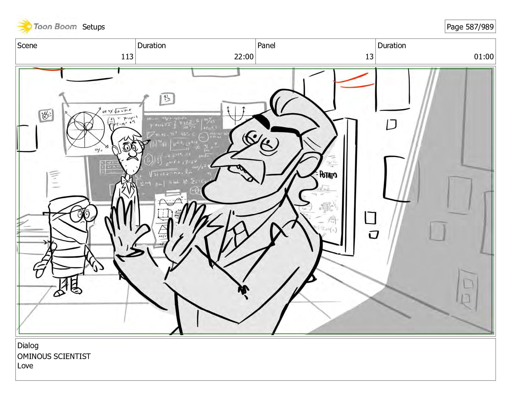 Scene 189 Duration 03:00 Panel 1 Duration 01:00 Setups Page
