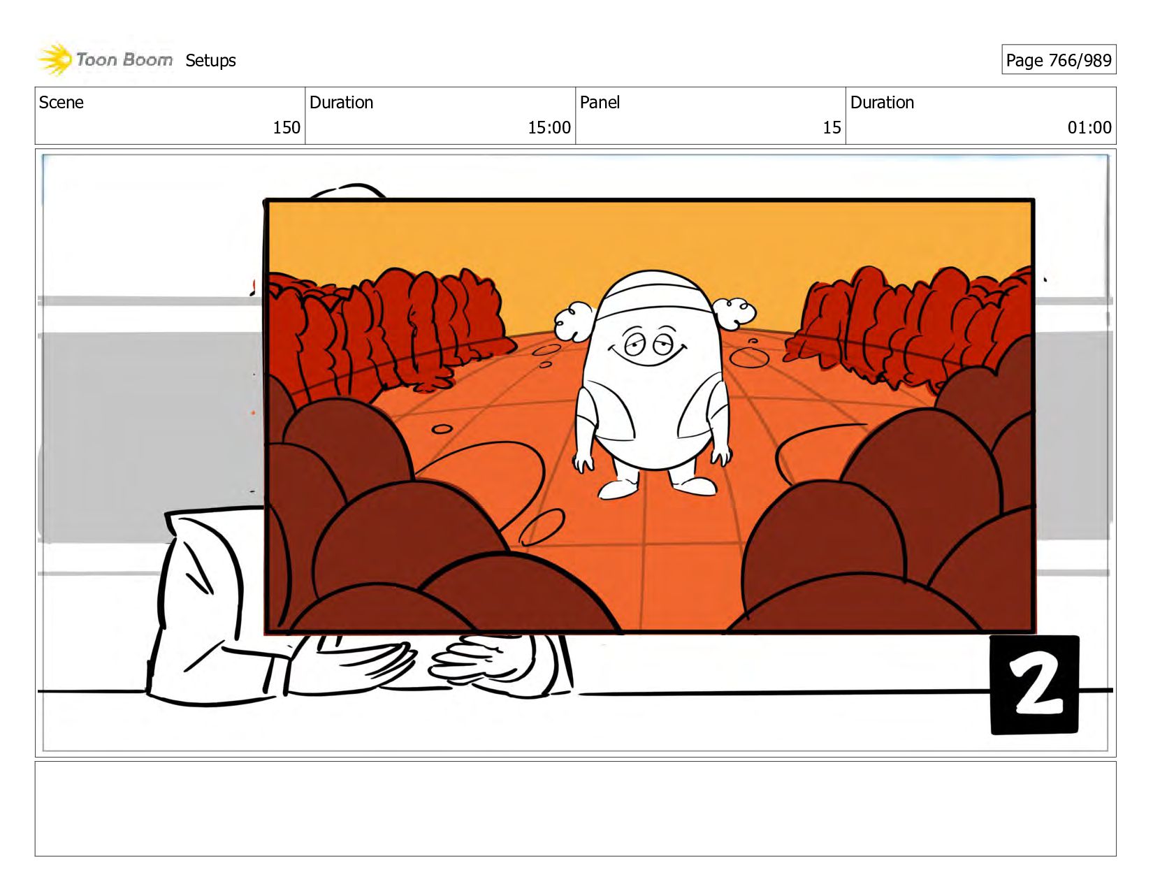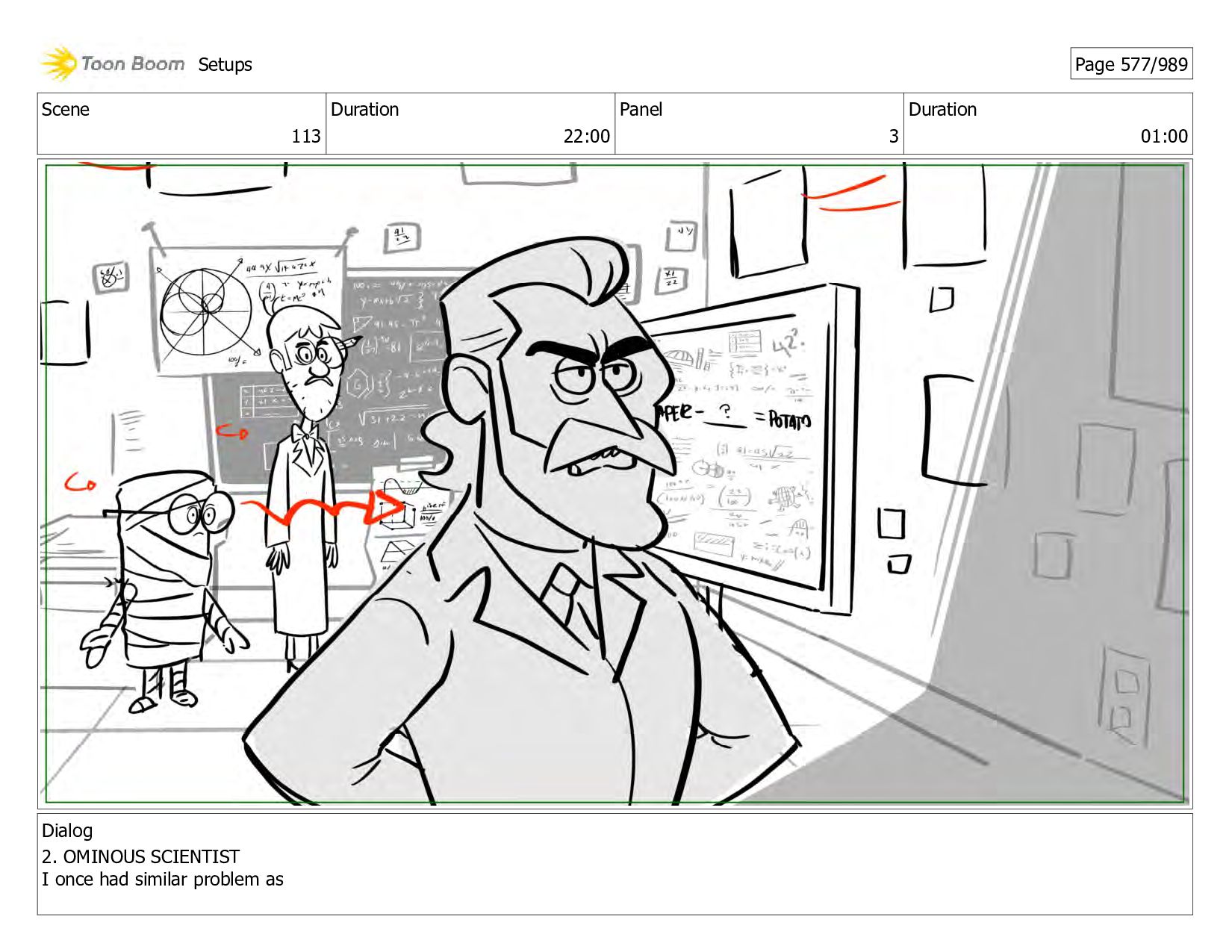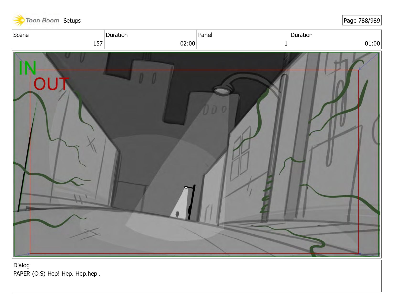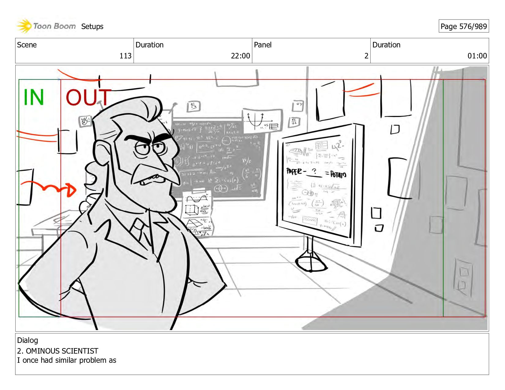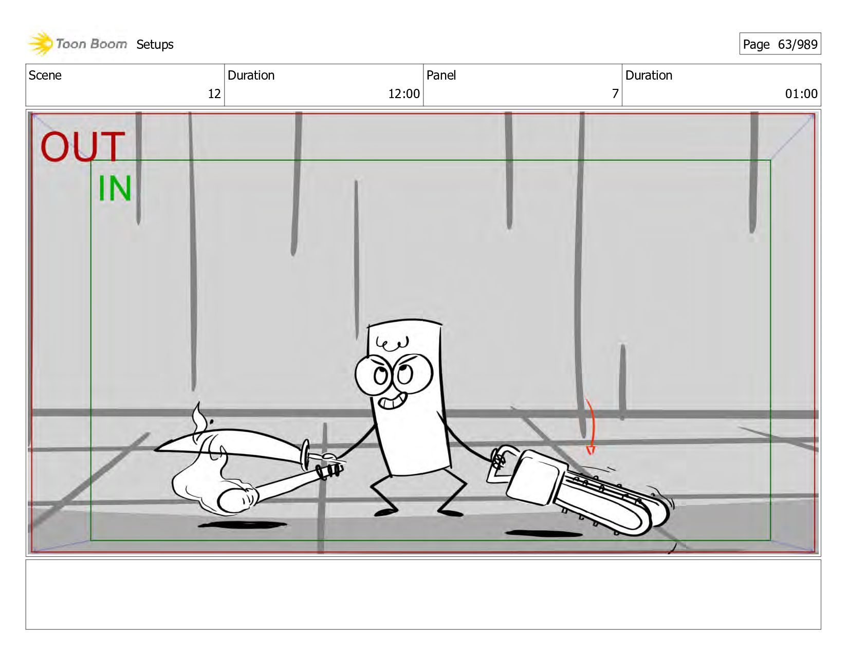 Scene 189 Duration 03:00 Panel 1 Duration 01:00 Setups Page